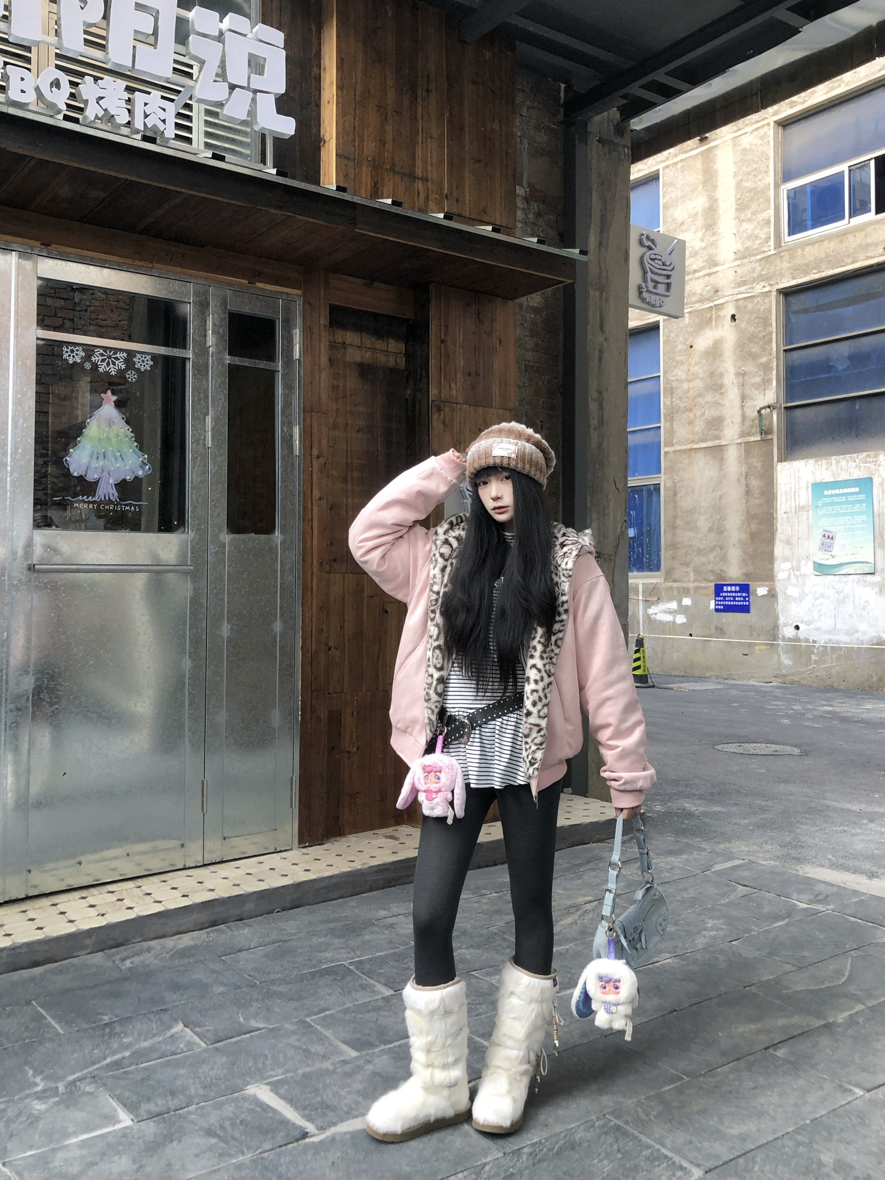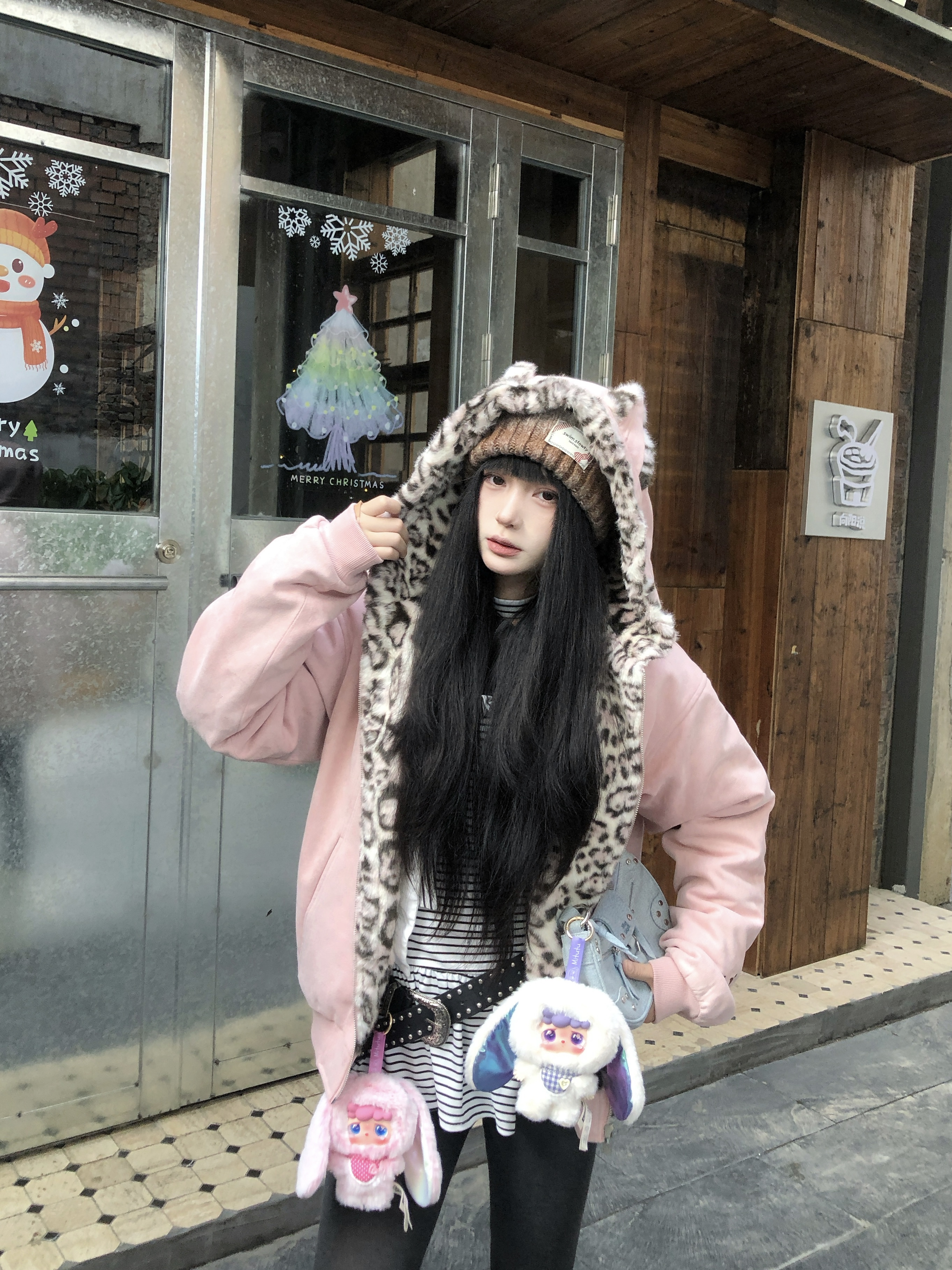 新年解锁甜妹的粉色系穿搭☺️ 软萌A chock兔耳座山雕夹克搭配百褶裙 棉服夹克上身很保暖 绒感很亲肤~ 粉色很适合新年穿出街 比我想象中百搭🤔 是2026开局的好东西 上身很棒 这样一套穿搭拍照好出片~