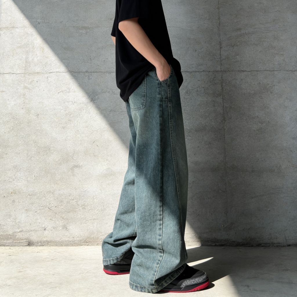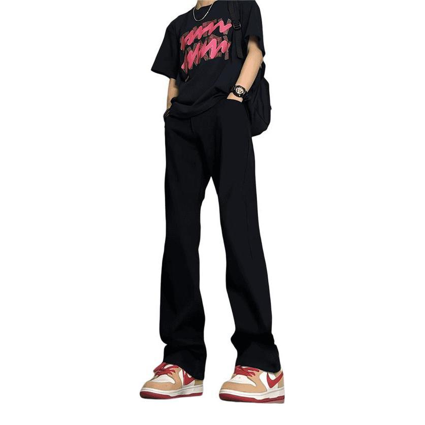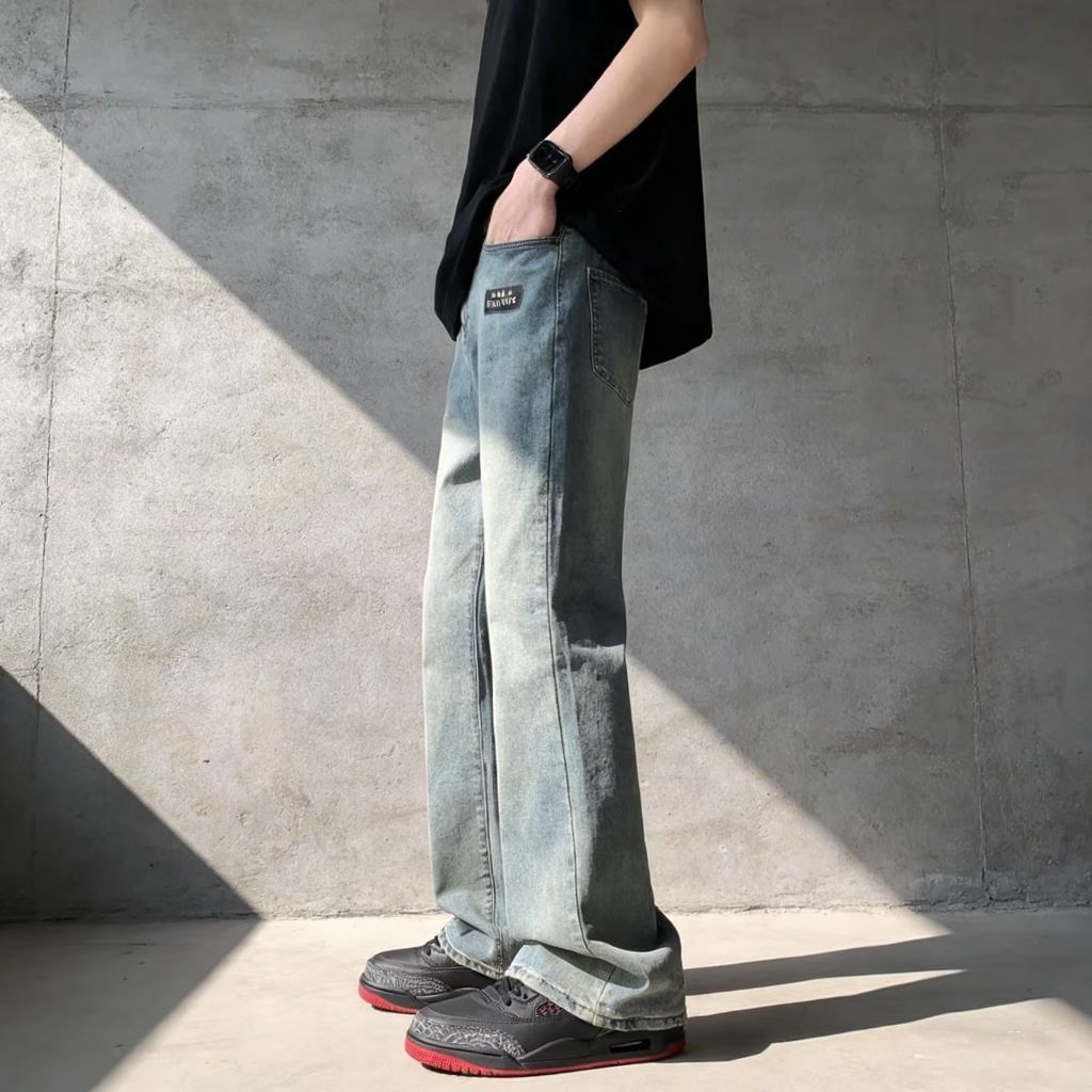 1. 浅蓝直筒微喇牛仔裤(图1) ✅ 裤子特点:浅蓝做旧水洗+直筒微喇版型,裤脚自然垂坠,自带美式复古做旧感。 ✅ 搭配效果:和黑红AJ的复古气质完美呼应,裤脚微喇刚好露出鞋身的爆裂纹和红色外底,视觉上拉长腿部线条,少年感拉满。 ✅ 推荐理由:不挑身材,春夏穿清爽又有质感,是打造美式校园风的刚需单品。 2. 纯黑微喇牛仔裤(图2) ✅ 裤子特点:高弹面料+微喇剪裁,全黑极简设计...
