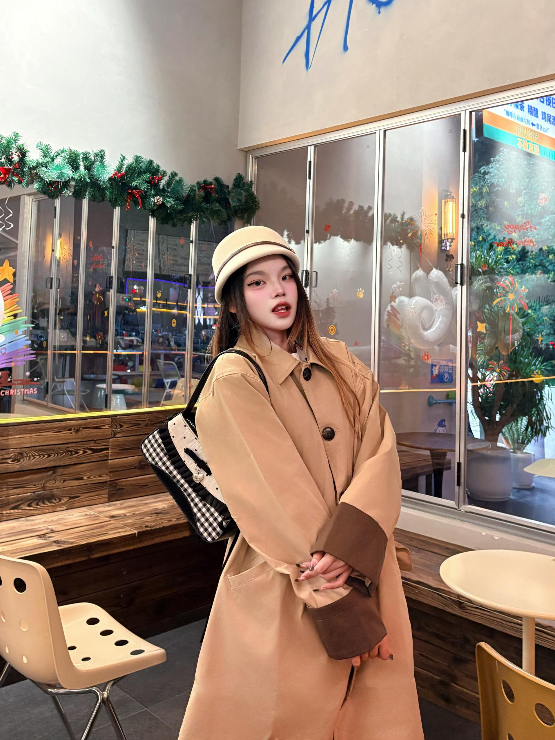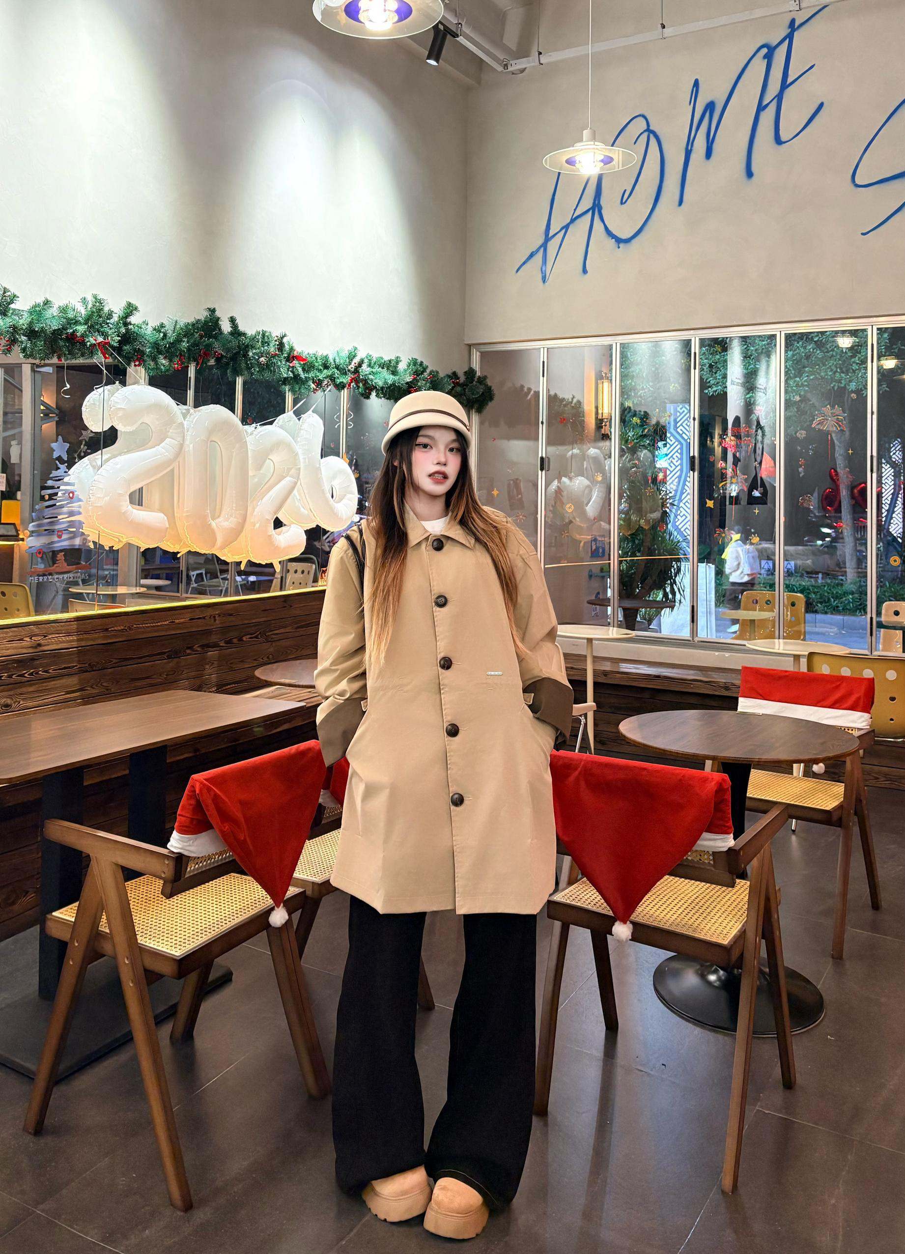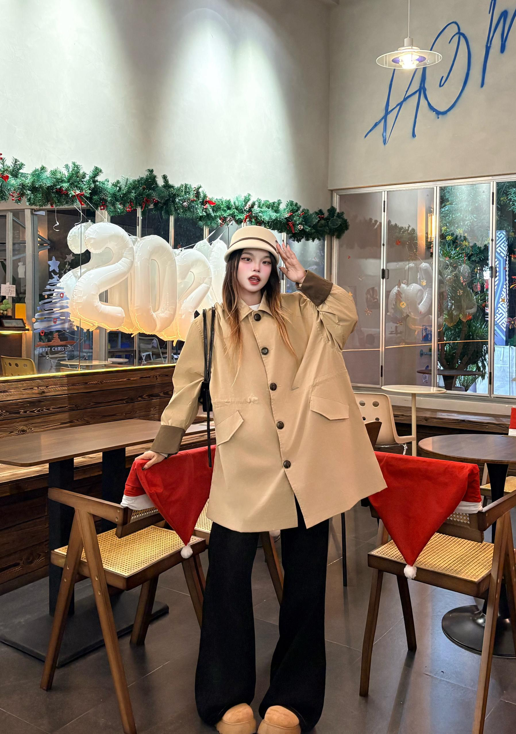 我的这件卡其风衣穿了好几天了,越穿越喜欢。✨ 宽松的版型穿起来没束缚感,配黑阔腿裤刚好搭出韩系休闲的调调🍁 面料软软的还能挡点风,在咖啡店随手拍了几张☕️ 朋友都说看着挺有氛围感的,日常穿确实很合适。 我165/96穿的m 蛮宽松的