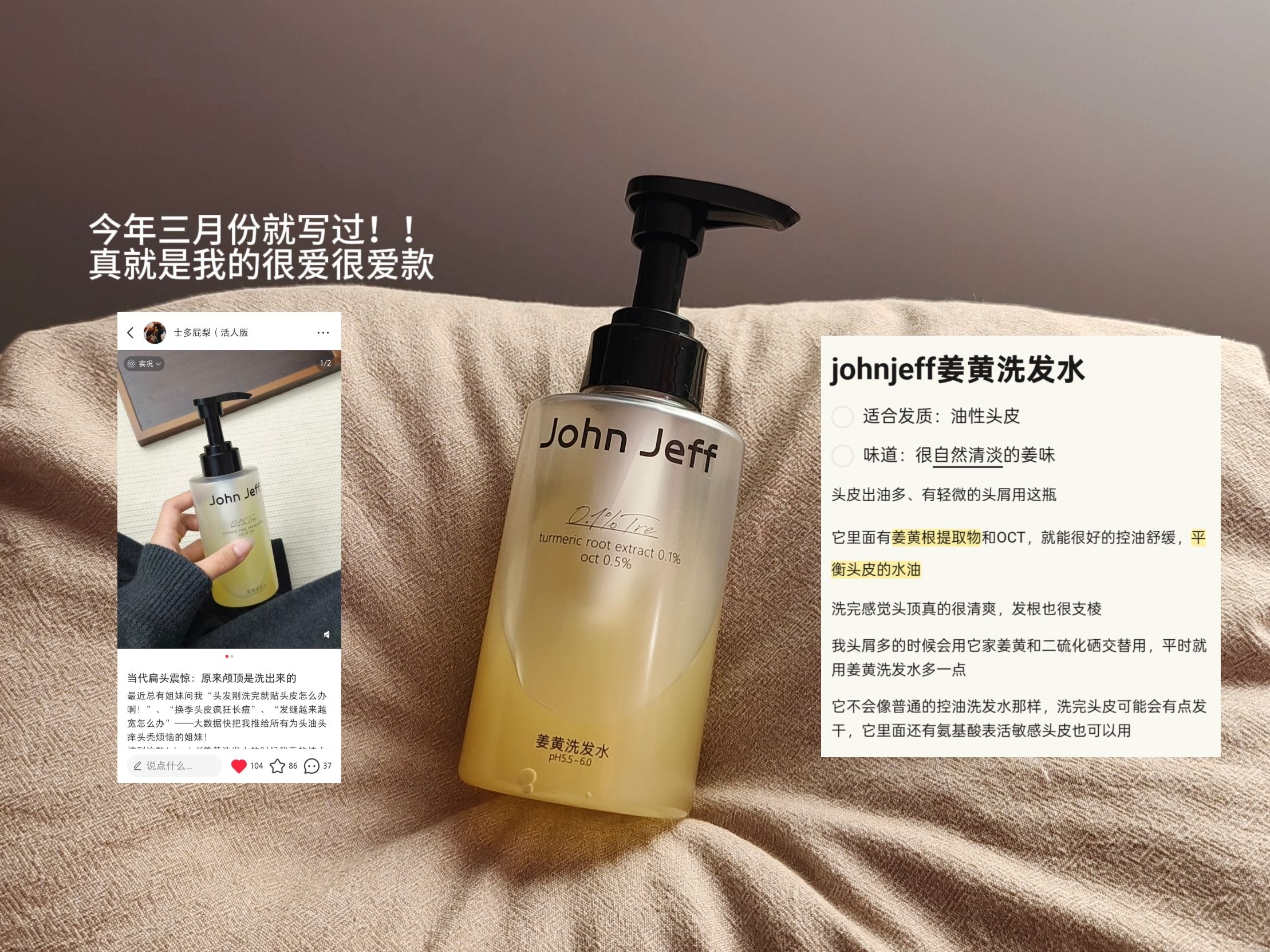我的头上情况: 夏天的时候头发出油比较多,秋冬的时候出油就稍微慢一点但是发尾发干。平时还喜欢烫染头发一年折腾个3-4次。 ✍️mark一下今年用的很满意的几瓶,仅供参考! ①johnjeff洗发水 ②植村秀柚泉洗发水 ③小室角蛋白洗发水 ④笙肌紫瓶修护洗发水 简单总结一下就是: 油性发质:①② 干性发质:③④ 发尾受损发质:③④ 头顶油发尾干:①②③④ 细软发质:①③④
