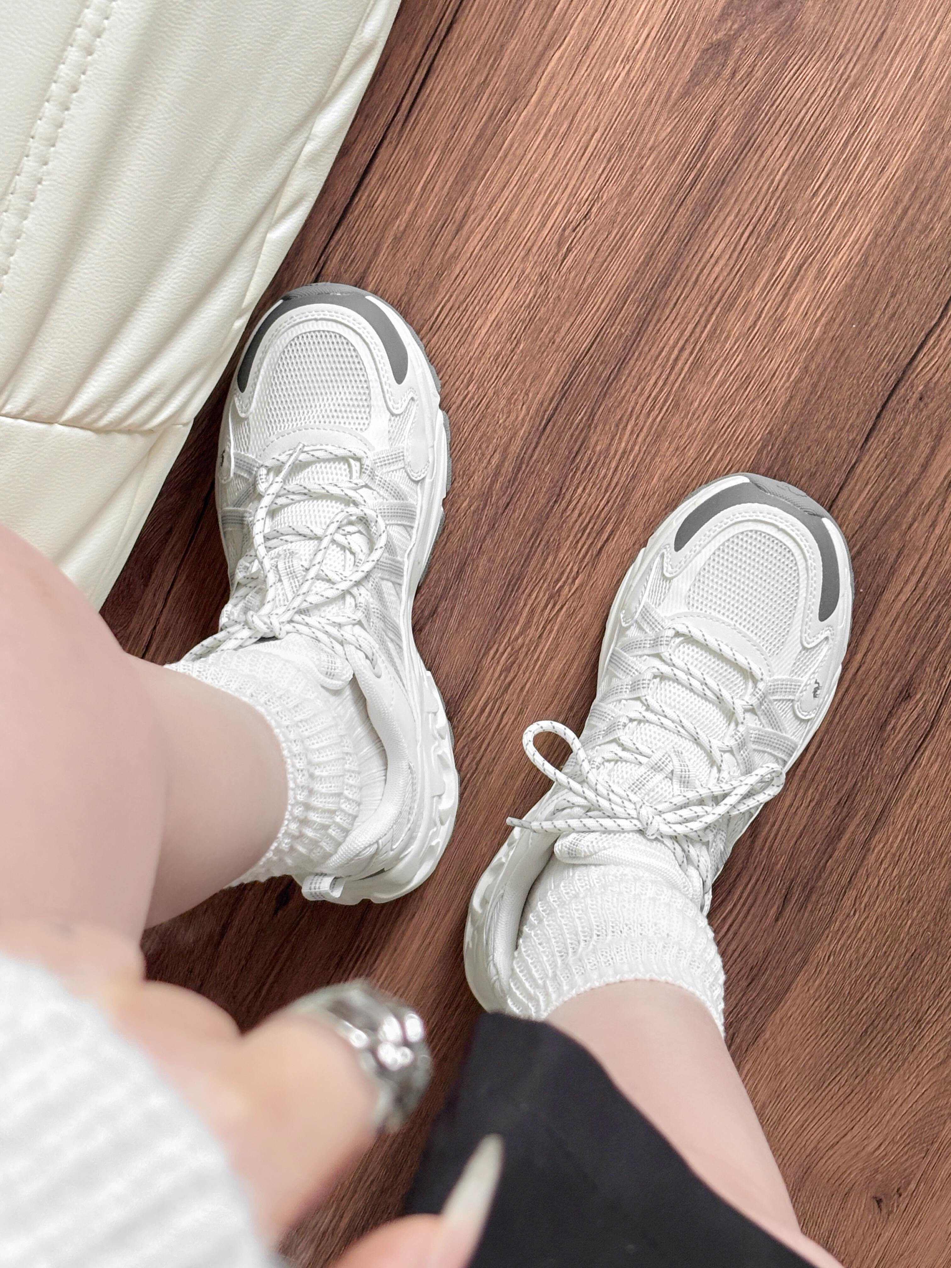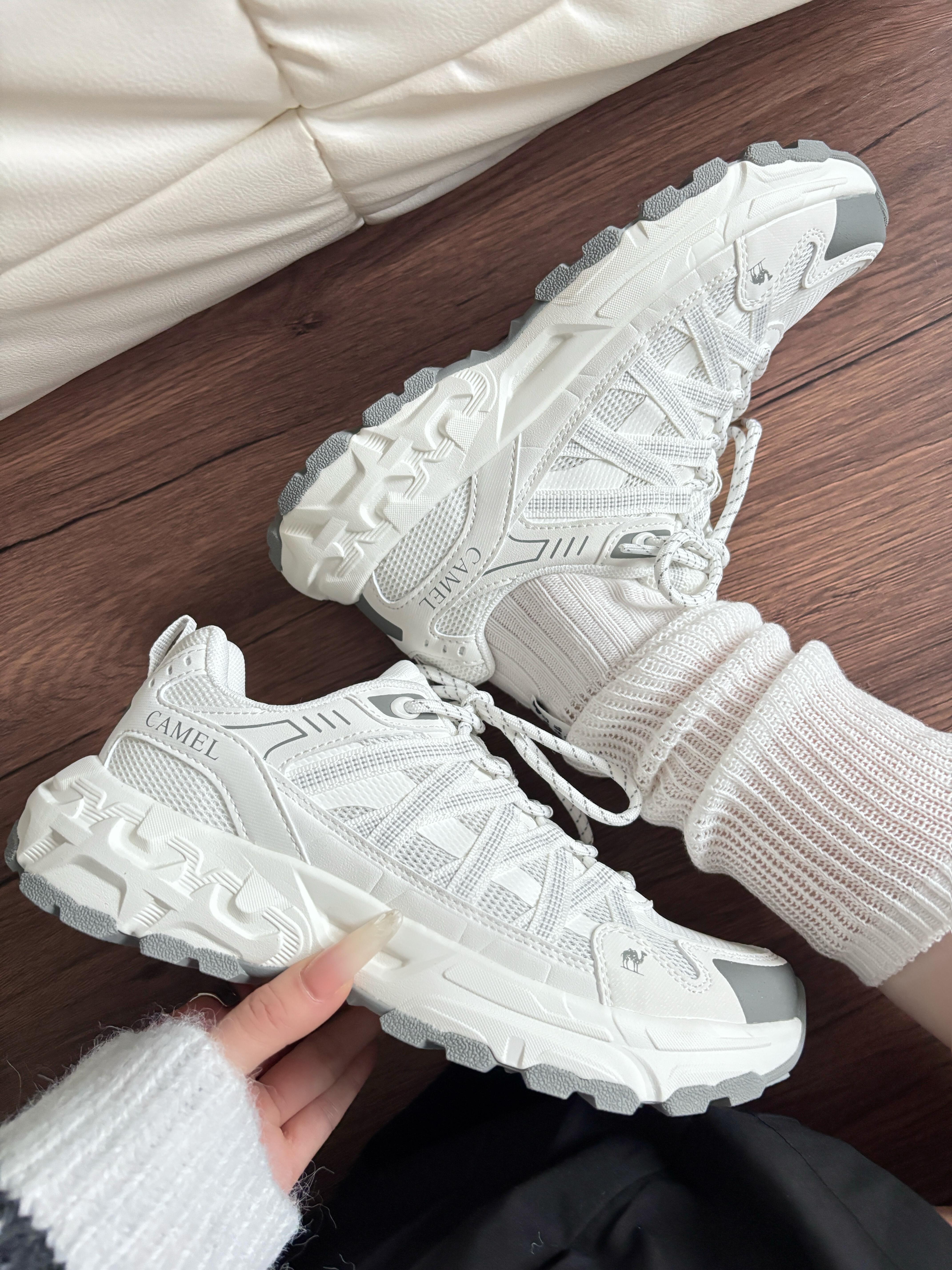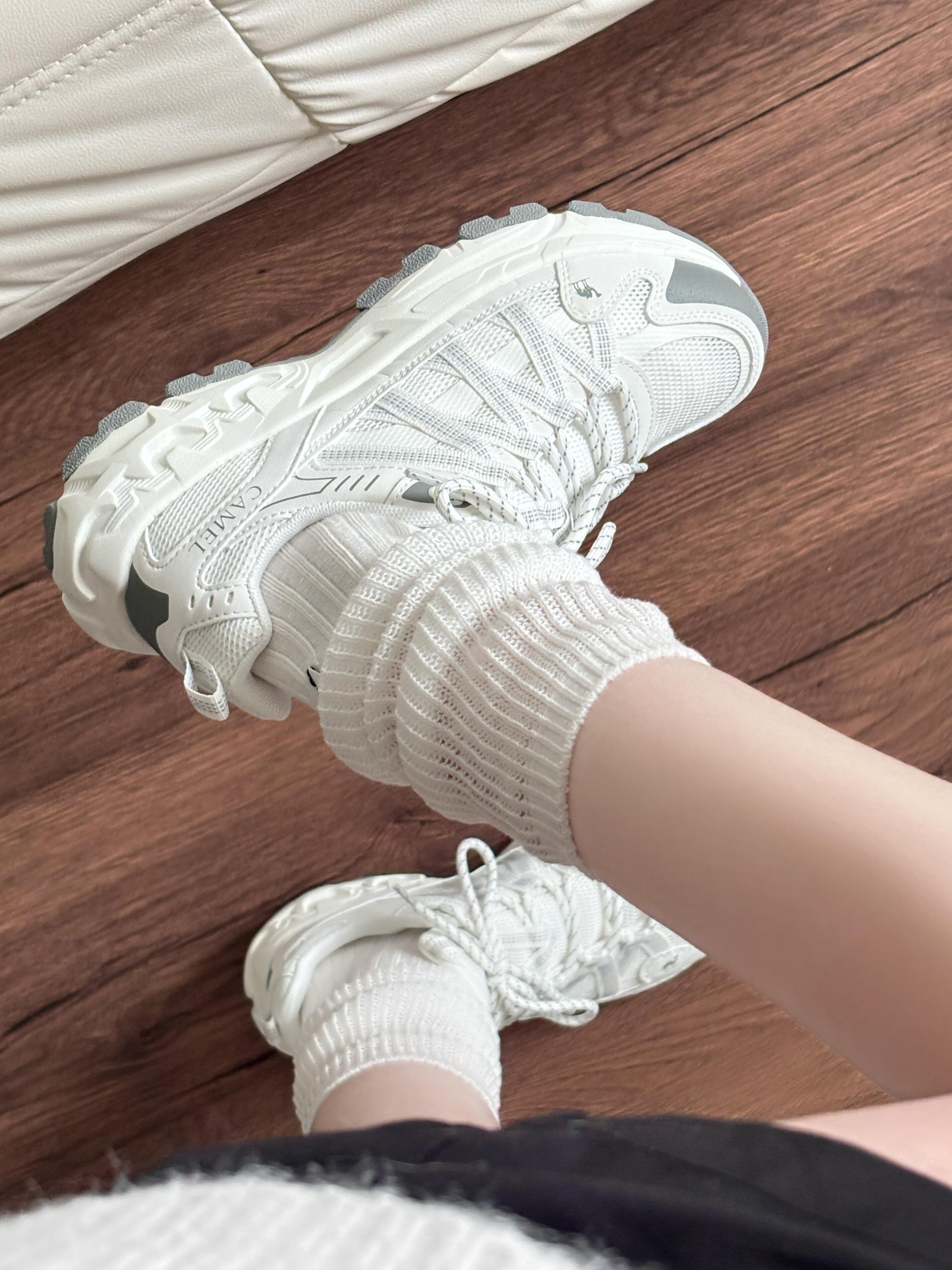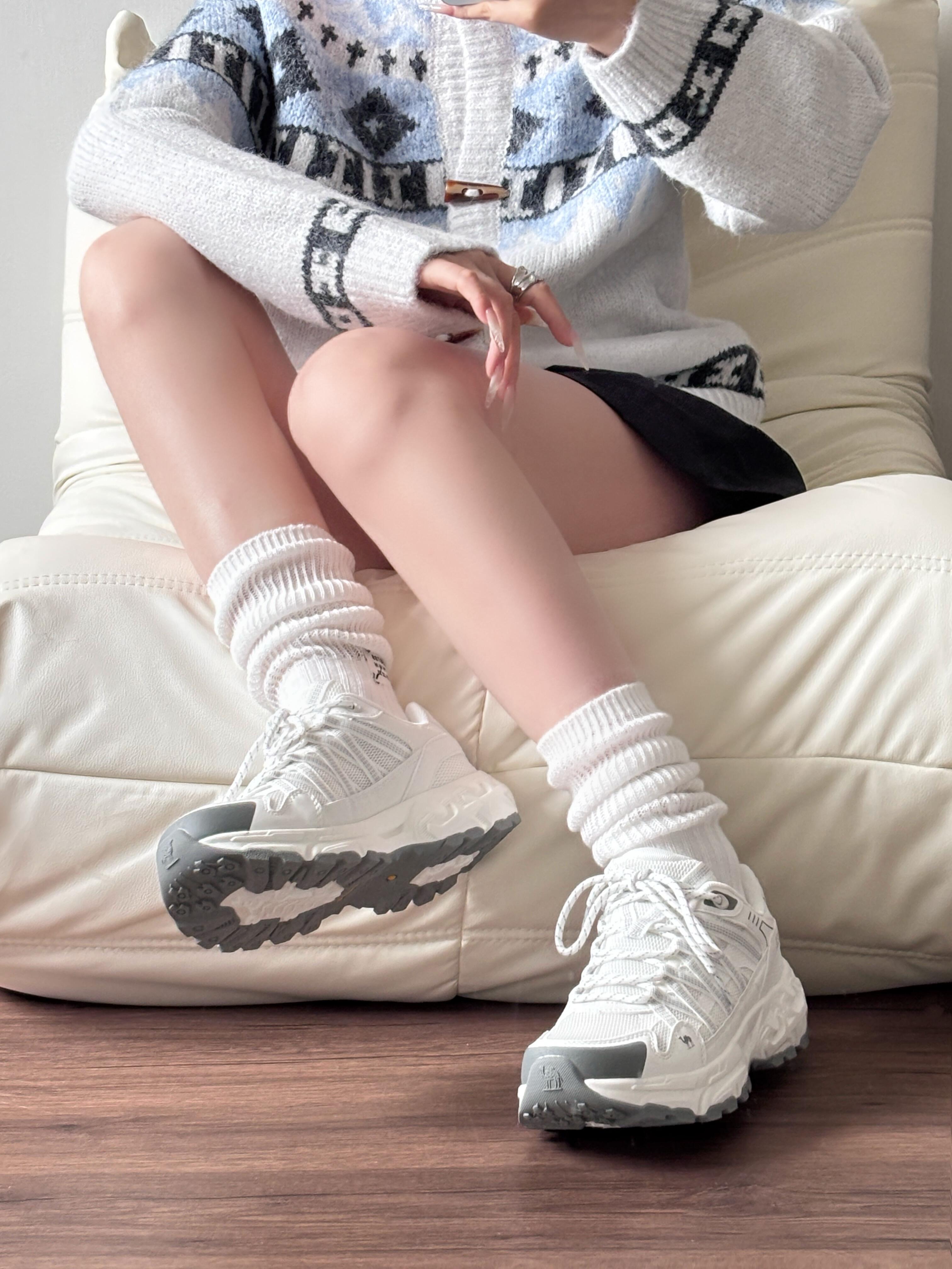 这双鞋 轻便又防滑 网孔面料透气不闷脚 白灰色调高级简约不撞款 随便搭个毛衣短裤都百搭 clean fit风轻松拿捏 高性能抓地大底防滑耐磨 “用科学定义防滑 ,每一步都足够稳” 秋冬穿它颜值舒适度双在线!
