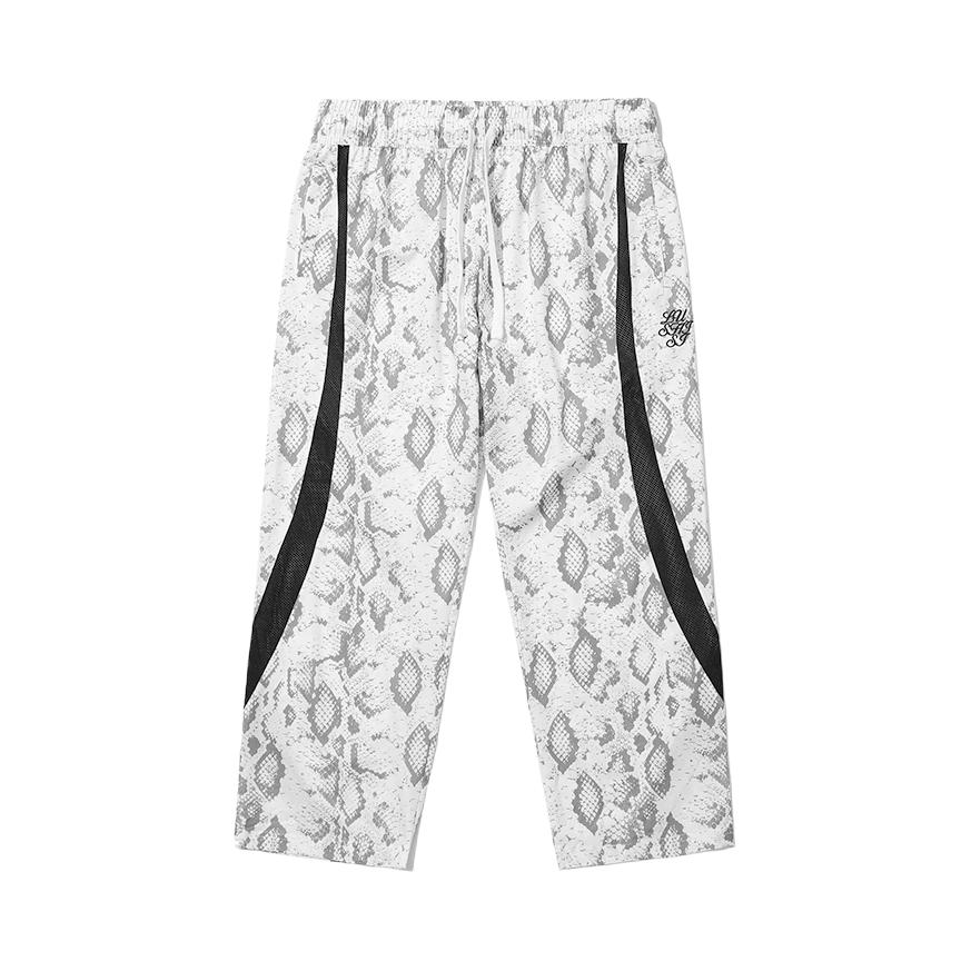豹纹才是顶级时髦 黑白豹纹穿起来就很帅 美式运动男孩就是这么穿搭 这条裤子黑白蛇纹的质感摸起来就很光滑 搭配白色袜子就很街头 冰蓝色飚速bb2球场上就是top