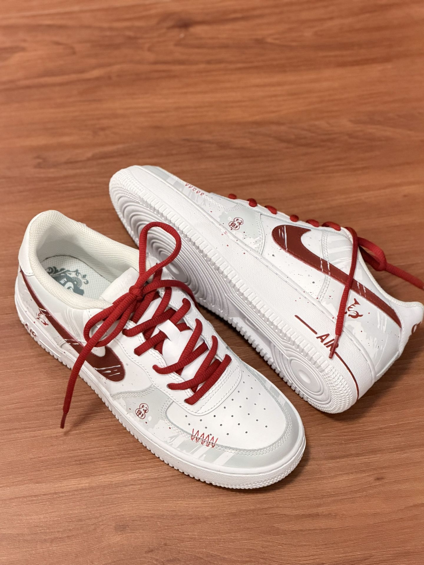 马年就要穿点红🧨Nike 空军 马上来财👟|||新的一年,大家有准备好新年战靴吗? 给大家分享一张我最近入手的Nike的空军1号: 马上来财 定制配色 整体以白色为主 红色的鞋带加上红色描绘点缀😎 上脚百搭时尚 空军的鞋型也带点增高 也是我平时搭配休闲裤子的不二之选❤️ 鞋子尺码建议正常码 #马年就要穿点红 #马年限定定制鞋 #时髦蜈蚣精 #时髦蜈蚣精必备 #马年限定好鞋