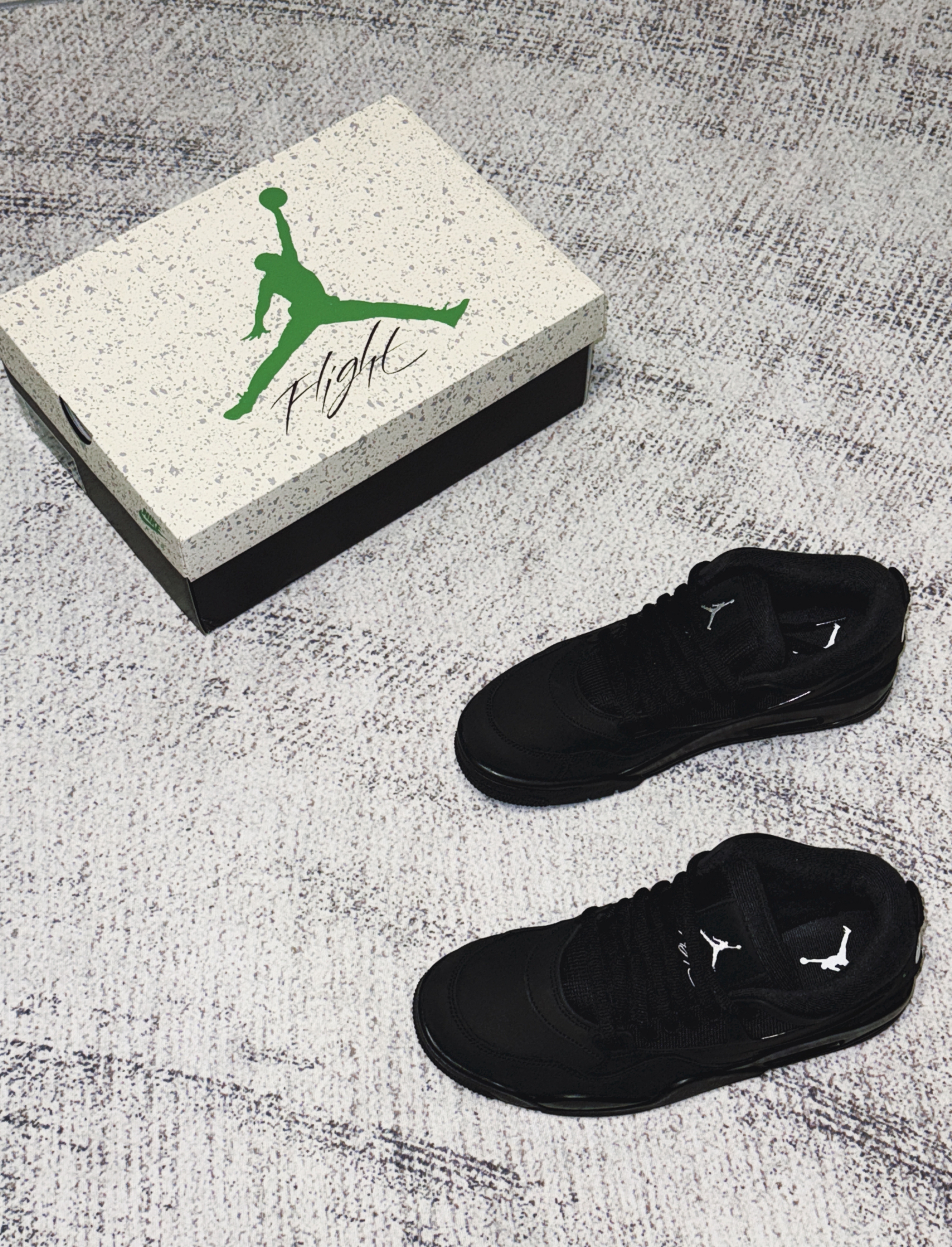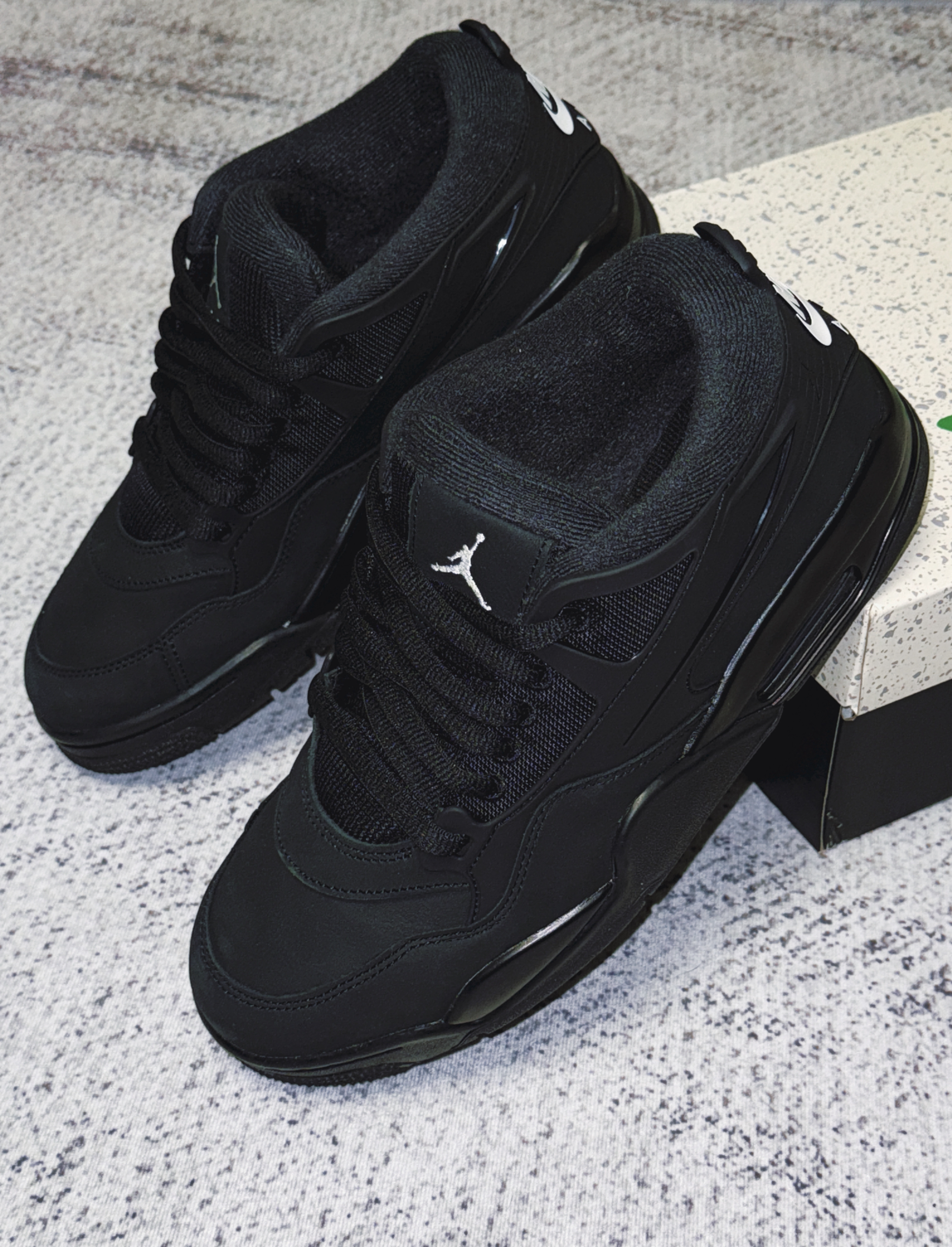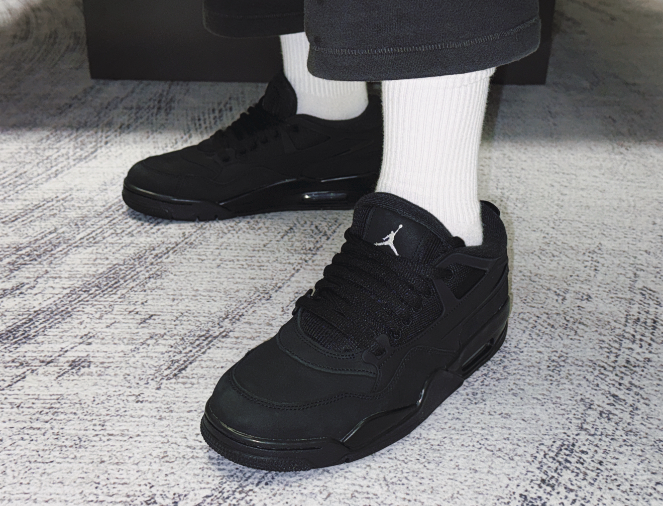 这双AJ4 RM真的长在我的审美上!全黑配色高级不挑人,麂皮+皮革+网面拼接,质感比纯合成革细腻,鞋舌飞人刺绣和后跟白标让鞋子看起来没那么单调。低帮鞋型更符合当下审美。 脚感比老款AJ4舒服不少,全掌气垫踩起来有明显回弹,日常通勤、轻度运动都不累,橡胶大底抓地力在线,雨天走路也不滑。搭配更是闭眼冲,基本什么风格都可以驾驭。 目前市价大概六百多,比起前段时间复刻的AJ4黑猫来说性价比拉满。