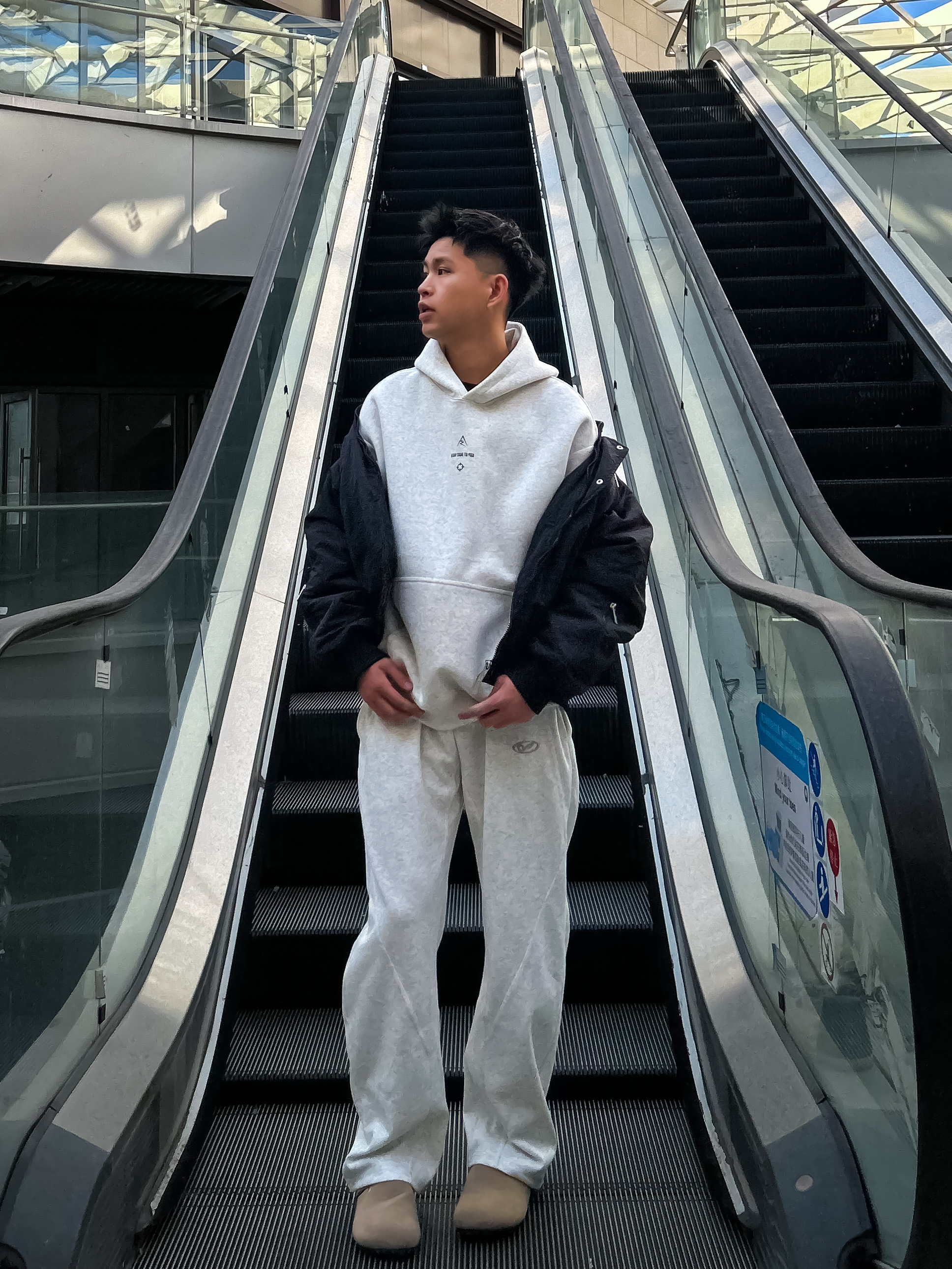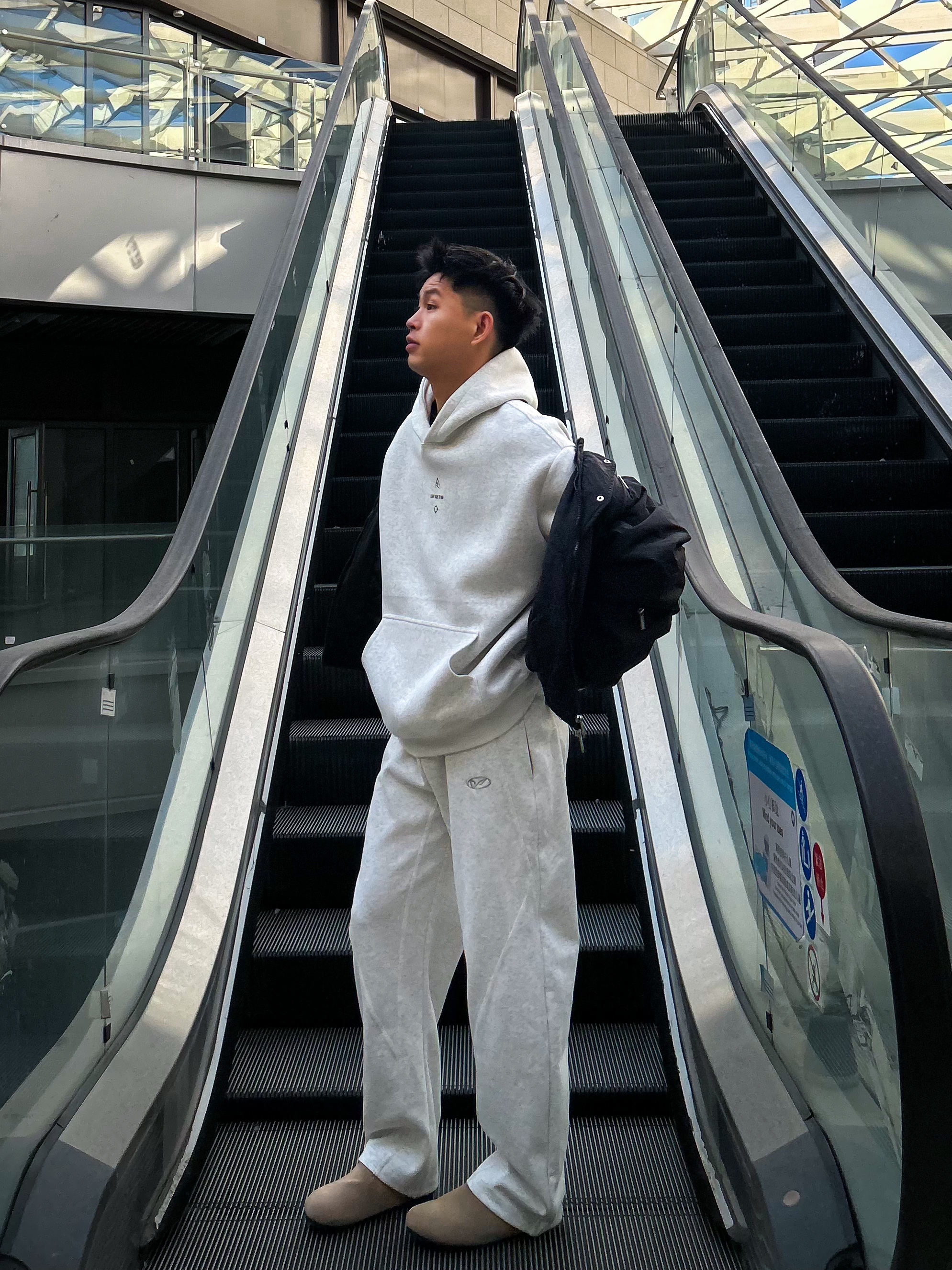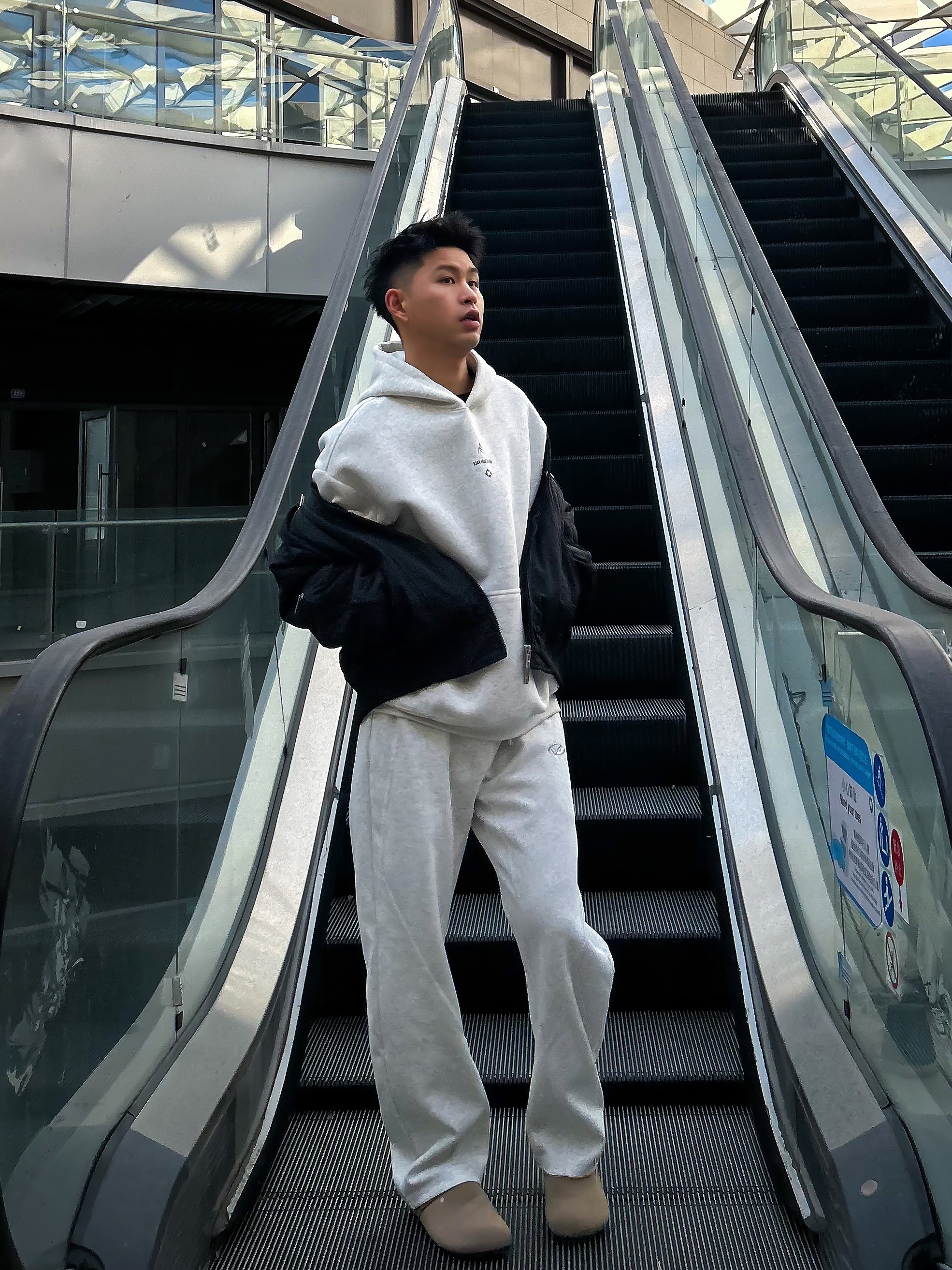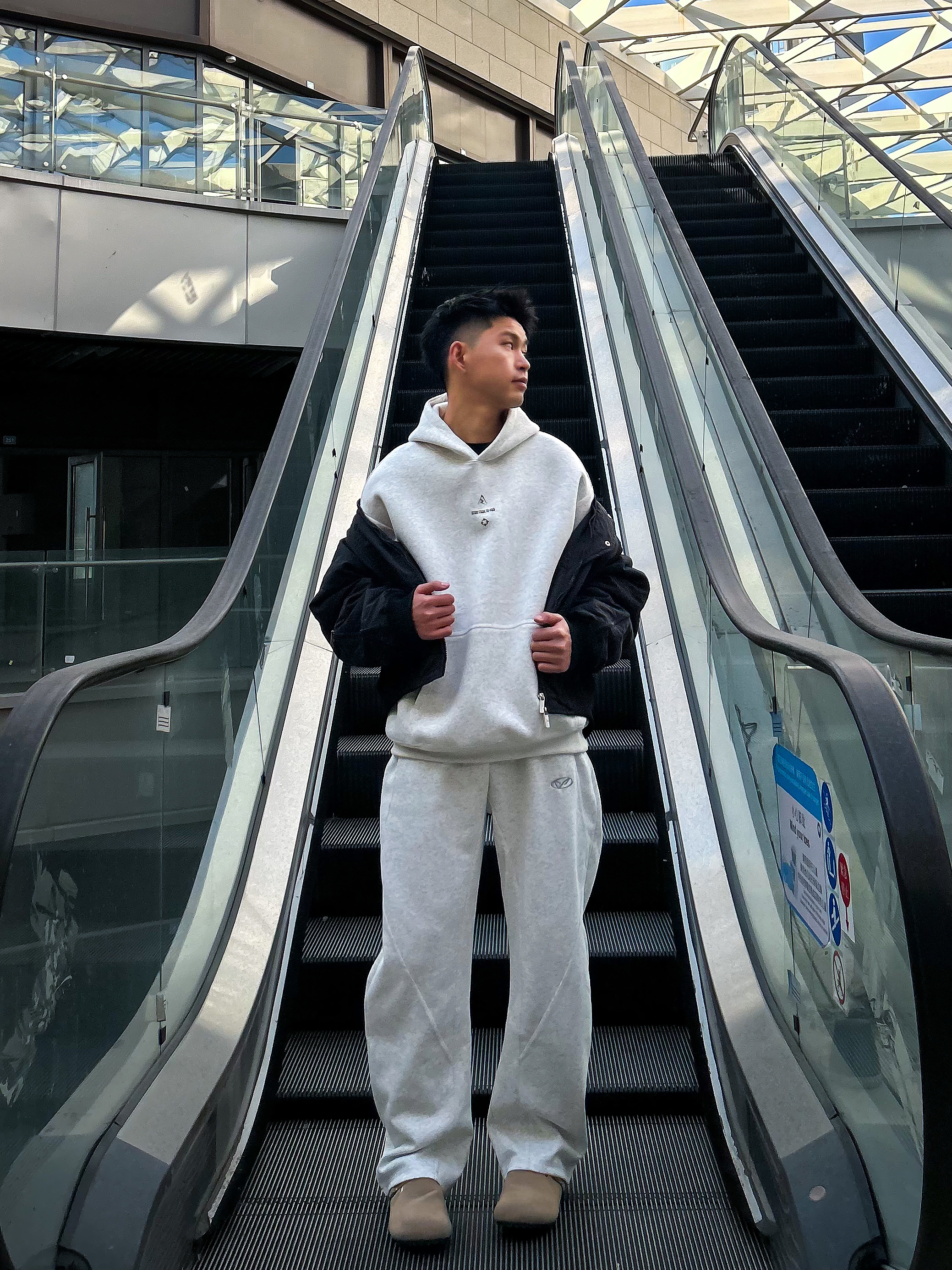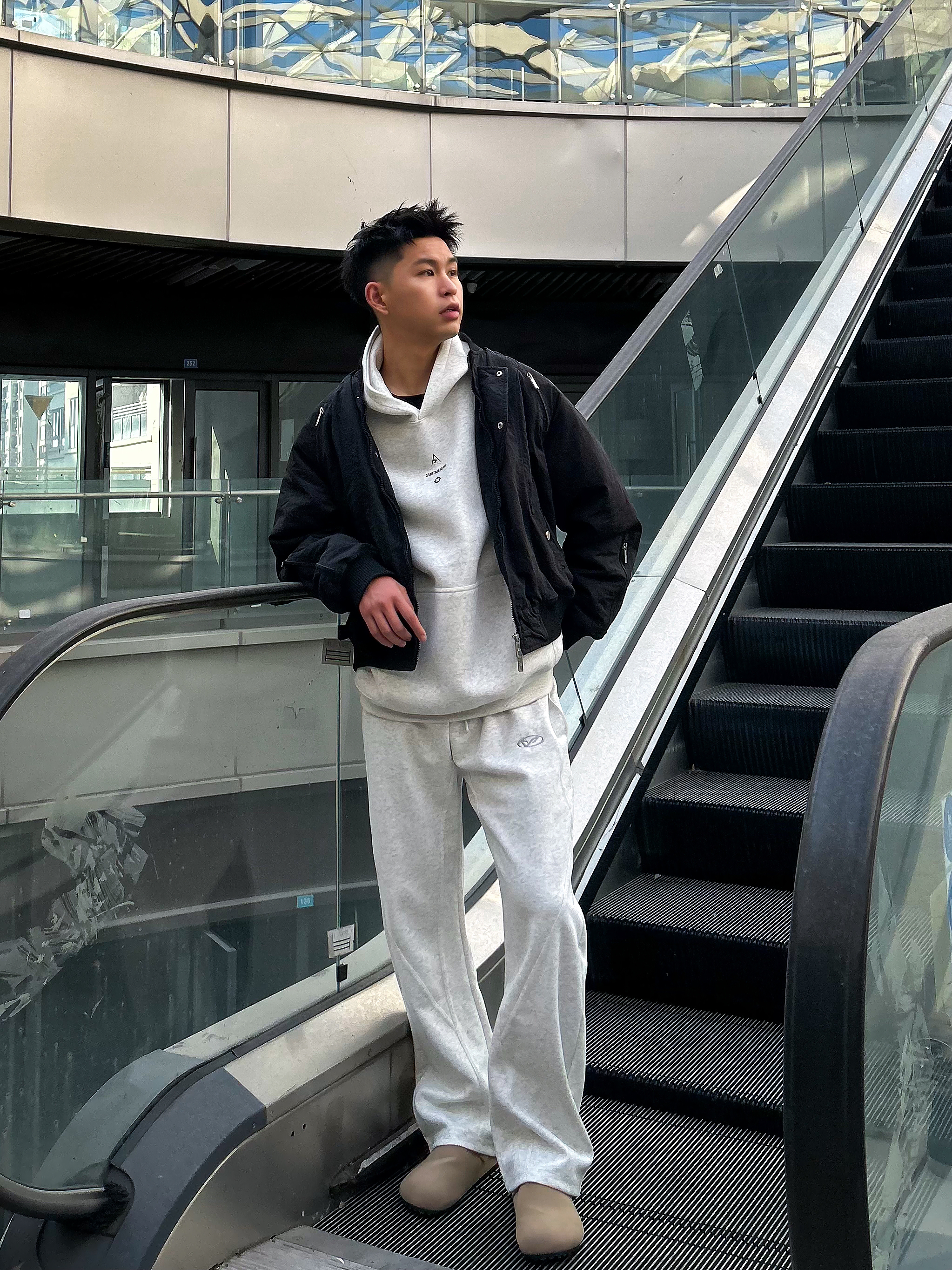哈咯,这里是卢_SG 秋冬松弛感慵懒风穿搭之勃肯鞋搭配篇! 上身选了件浅灰连帽卫衣卫裤 简约纯色设计自带干净少年感 外搭黑色短款夹克还能增加层次感 同色系卫裤是微阔腿的版型,垂坠感拉满 脚下搭了双 AAA SINCE 1955 浅棕勃肯半拖 麂皮材质+金属扣装饰,复古感直接拉满! 软木鞋底贴合脚型,踩上去软糯又舒服 搭配白袜露出袜边的穿法 瞬间让整体穿搭更有细节感 勃肯鞋的休闲调性和运动风套...