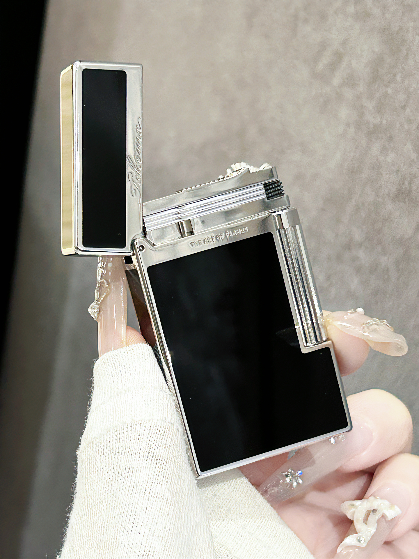 不枉我选了这么久~ 介个tshomx打火机 实物到手确实有质感 黑色机身尊嘟显贵气 开盖琴音清脆 开盖点火都很丝滑 npy平时出门都要带上 送礼也蛮合适 礼盒包装hin有仪式感