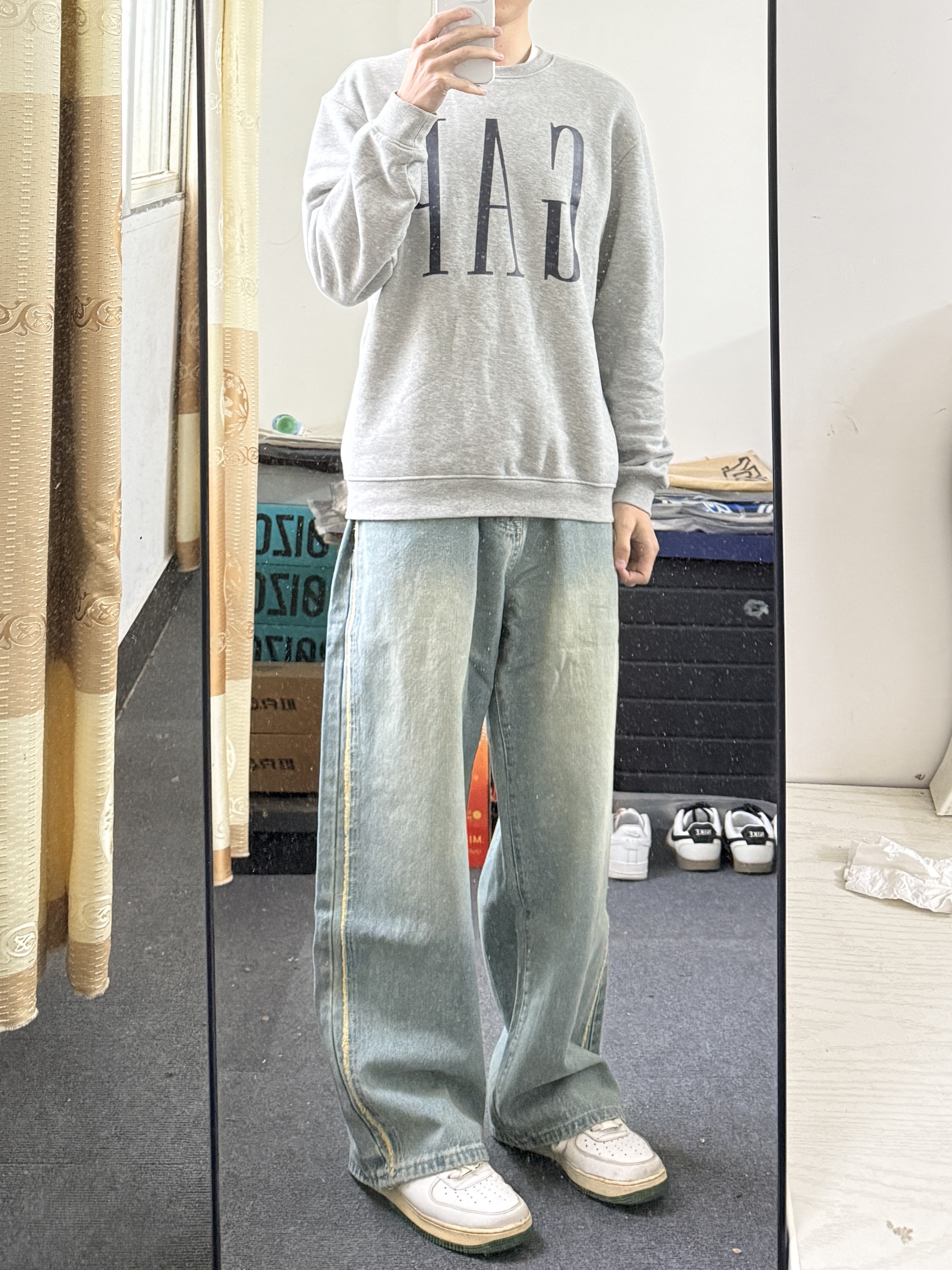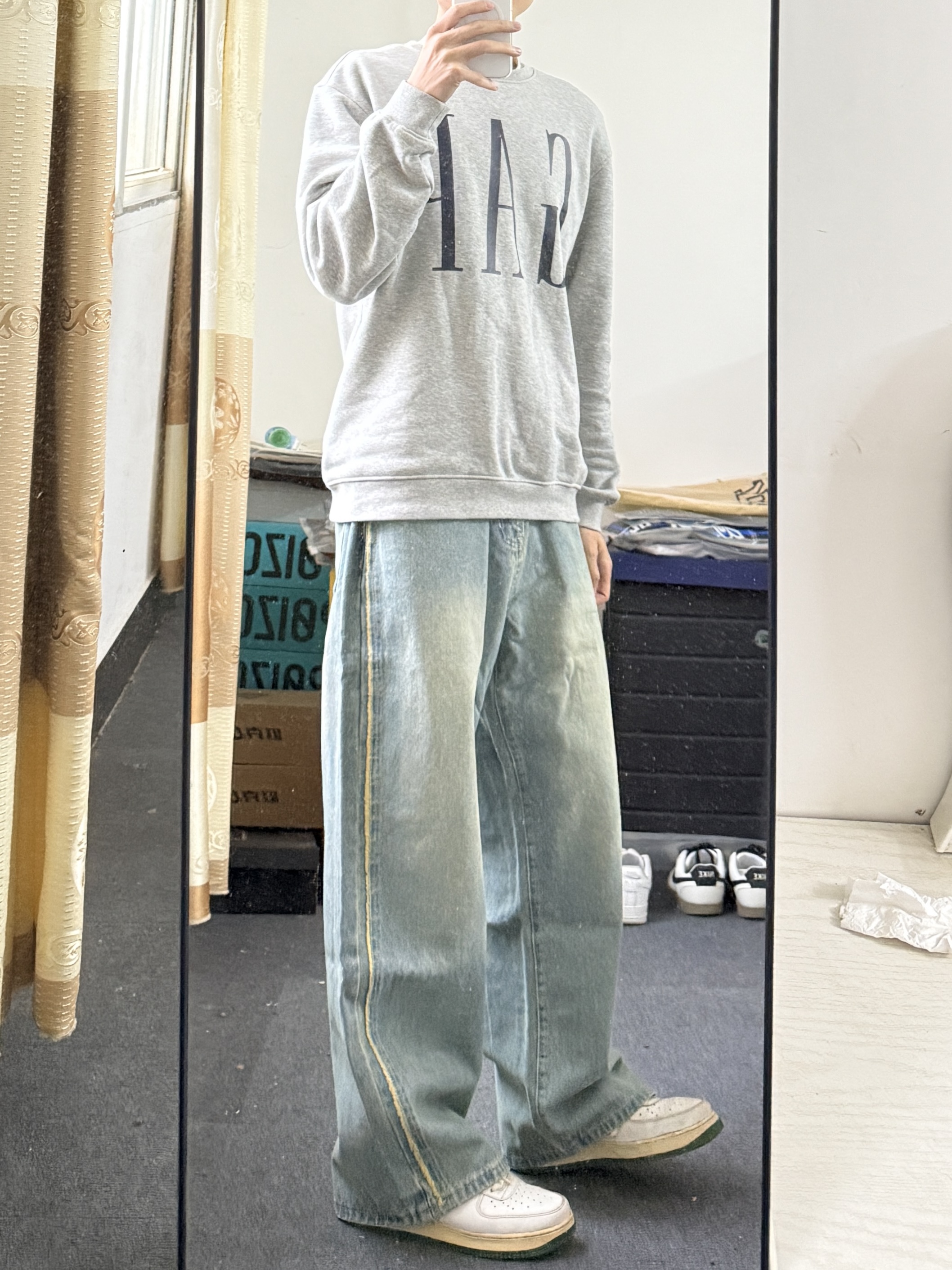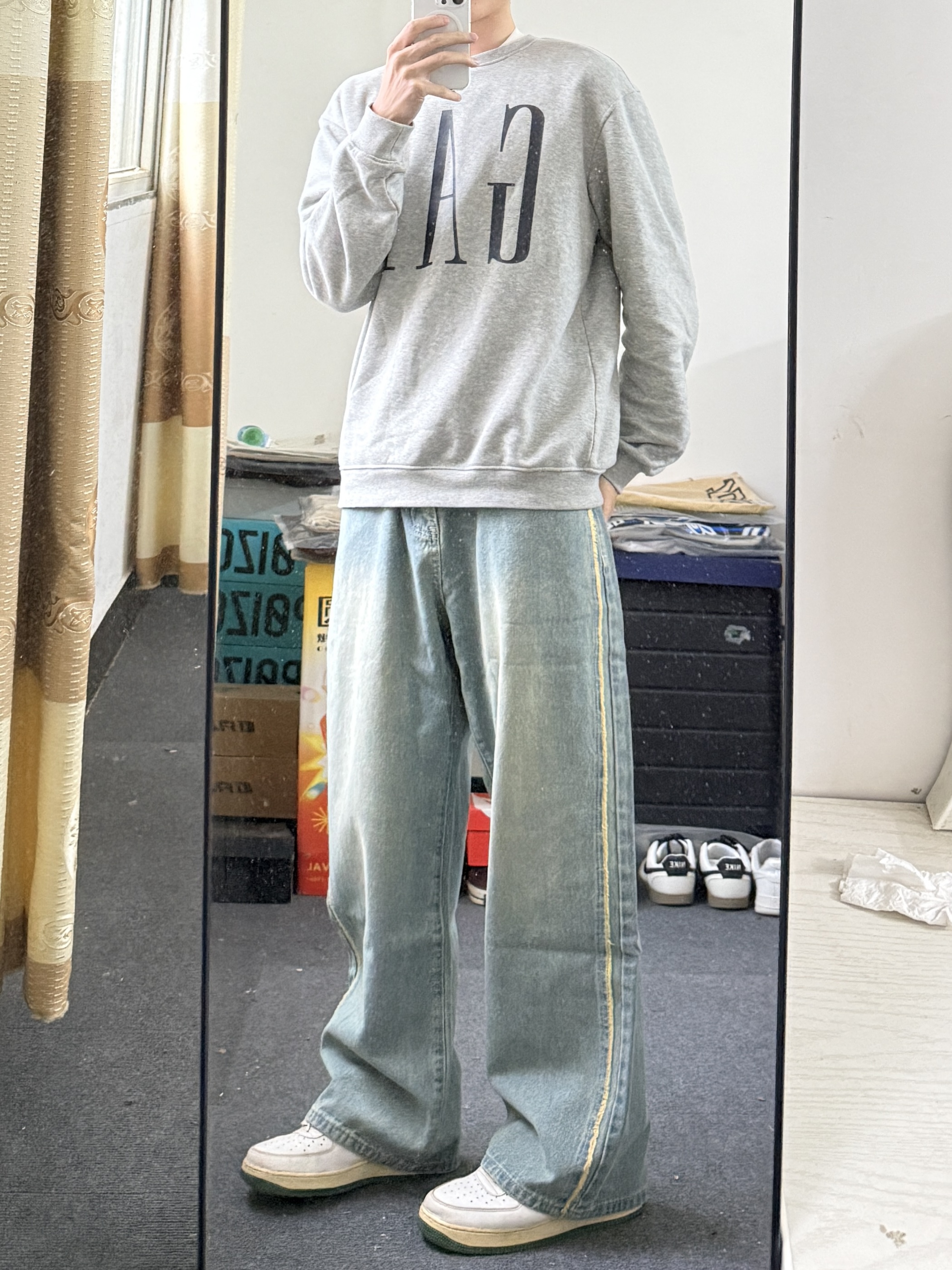 新年第一条牛仔裤👖就是这件 宽松风格的直筒牛仔裤,侧边毛边设计 上身百搭又好看🤩真的很适合日常出街穿 效果包好的👌