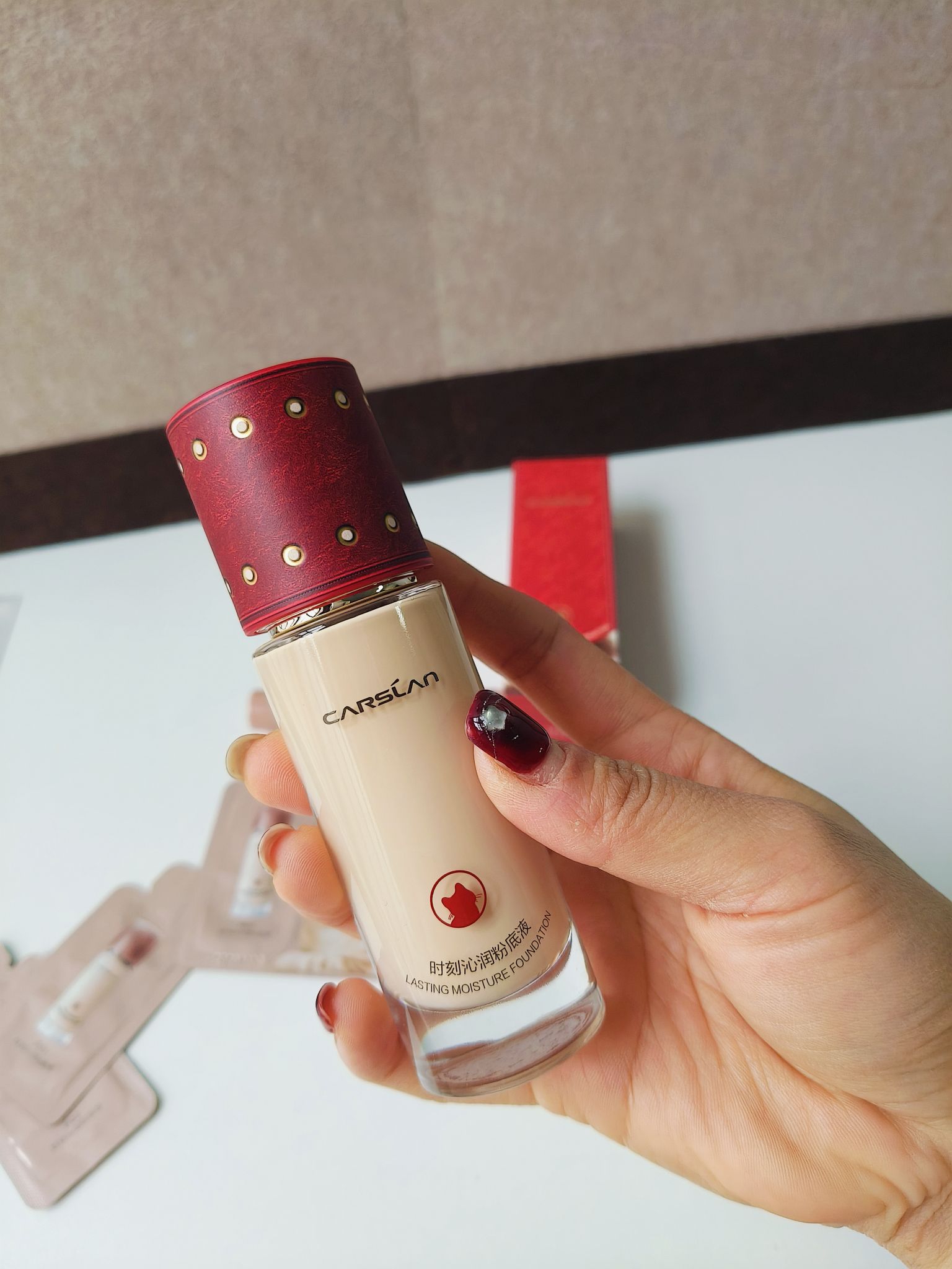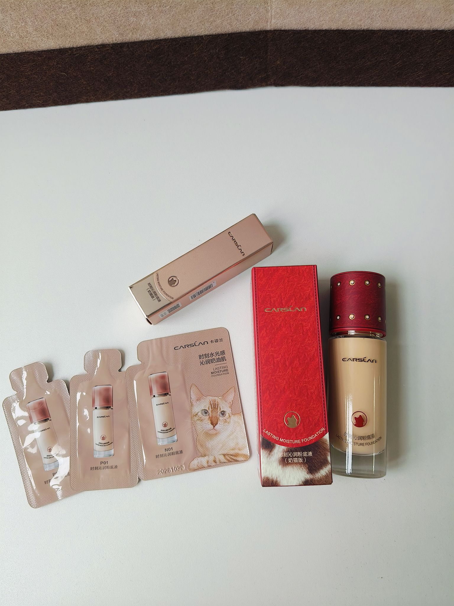 习惯用气垫上底妆的我想换种底妆, 没想到盲买的卡姿兰干皮小奶猫粉底液这么好用, 上脸完全不卡粉,而且越夜越美丽,稍稍出点油来更自然。 而且豹红限定也太新年了吧,非常适合新年送礼。 怎么不让我早点发现嘿嘿。