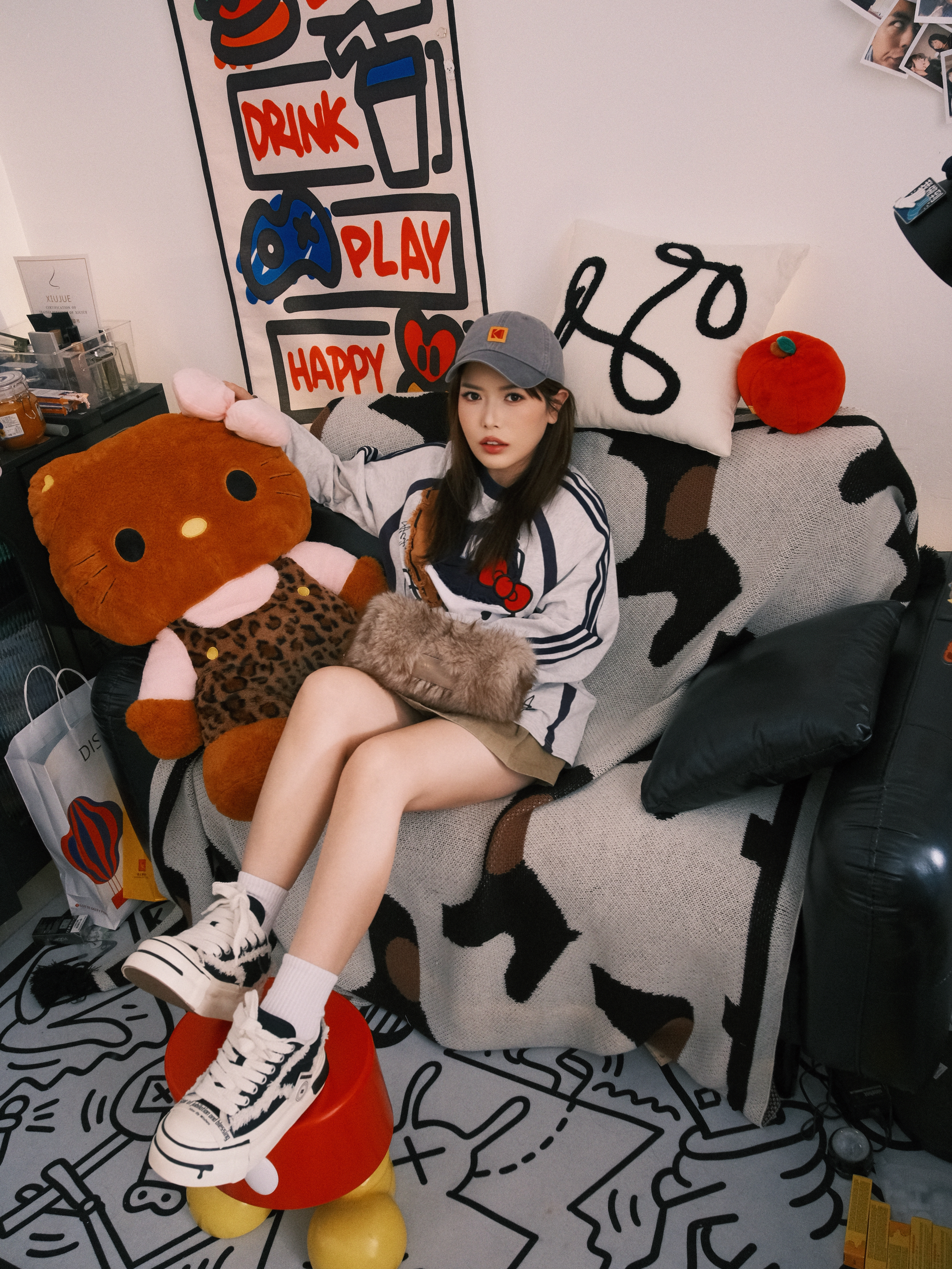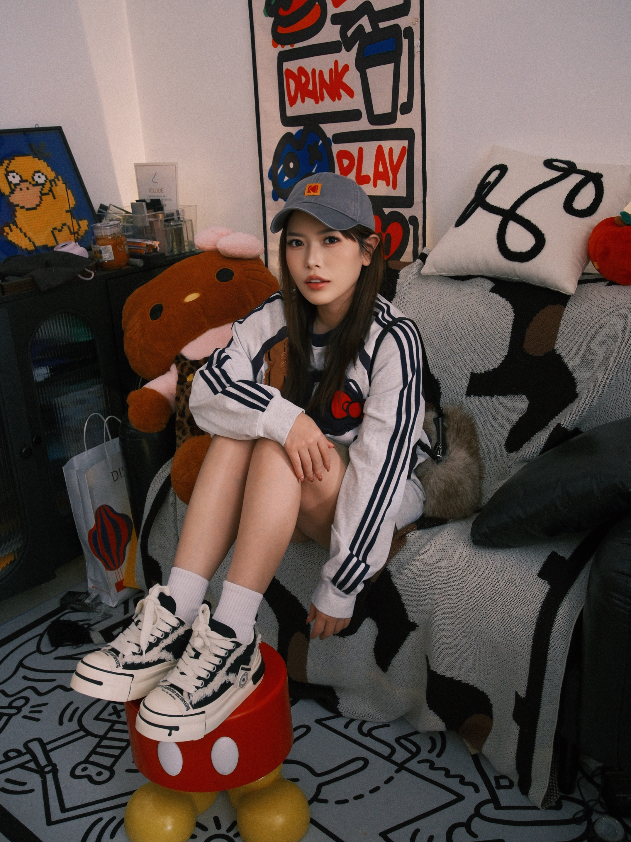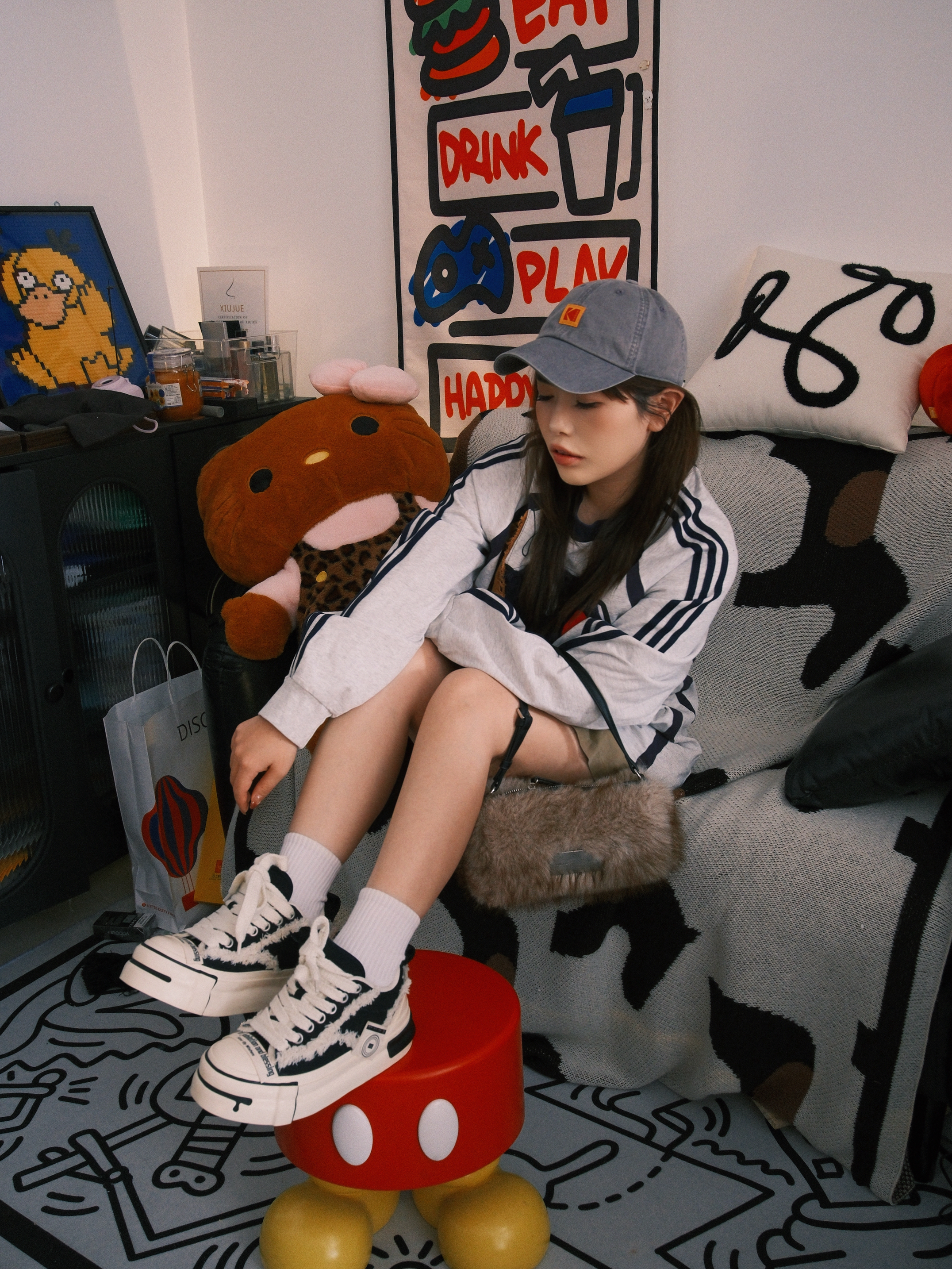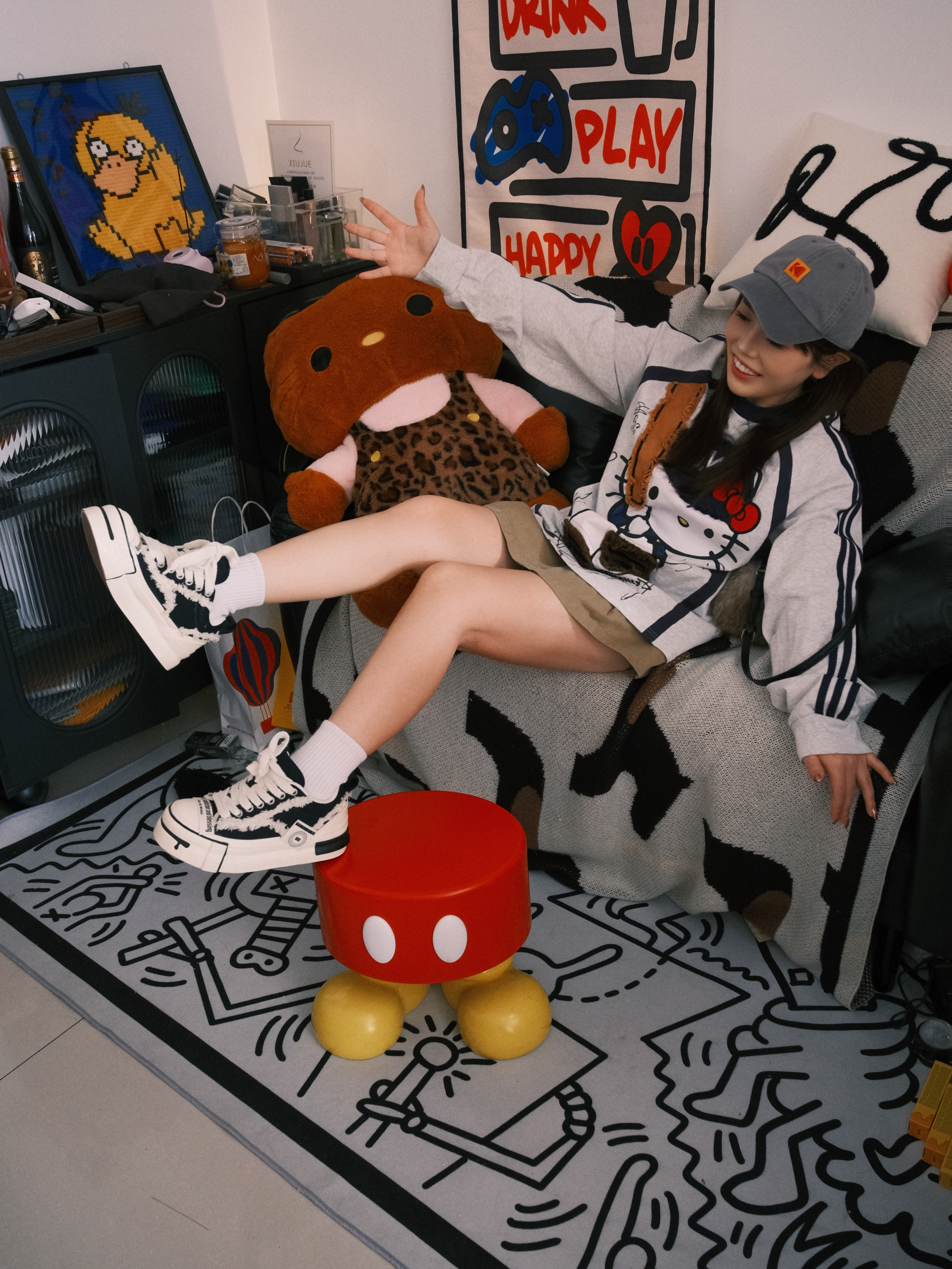 最近新入手这双黑白厚底鞋真的爱惨了!🤍🖤 上脚超级轻,走一天路都不累,厚底悄悄增高还不笨重,对小个子太友好了。 搭配我今天这套休闲卫衣+短裙,瞬间把松弛感拉满,毛边设计又带点小叛逆,和我家这个潮酷的小角落意外搭。 黑白配色真的万能,牛仔裤、运动裤随便配都好看,已经成了我出门的首选鞋款❤️