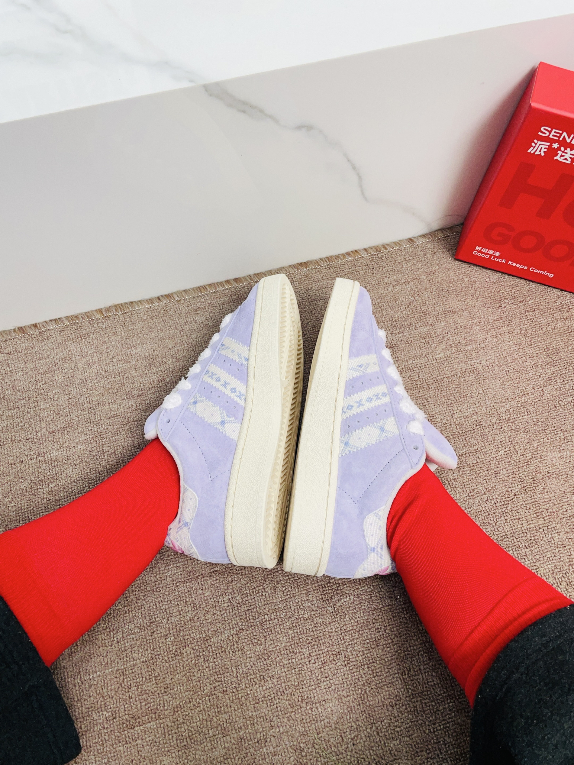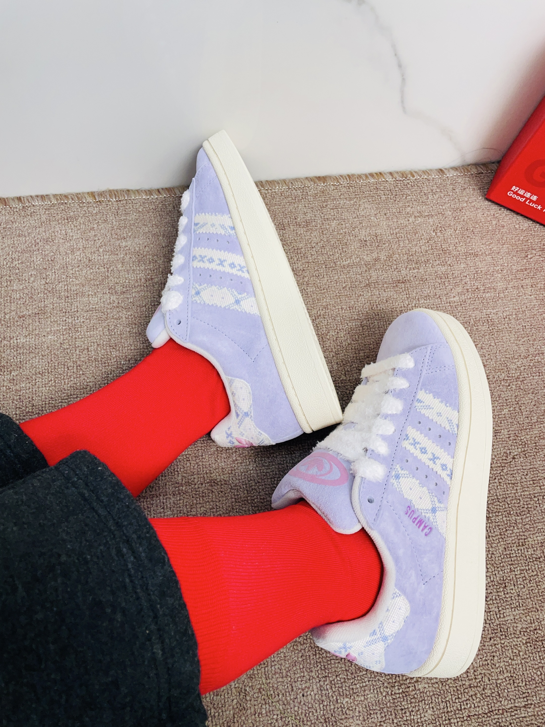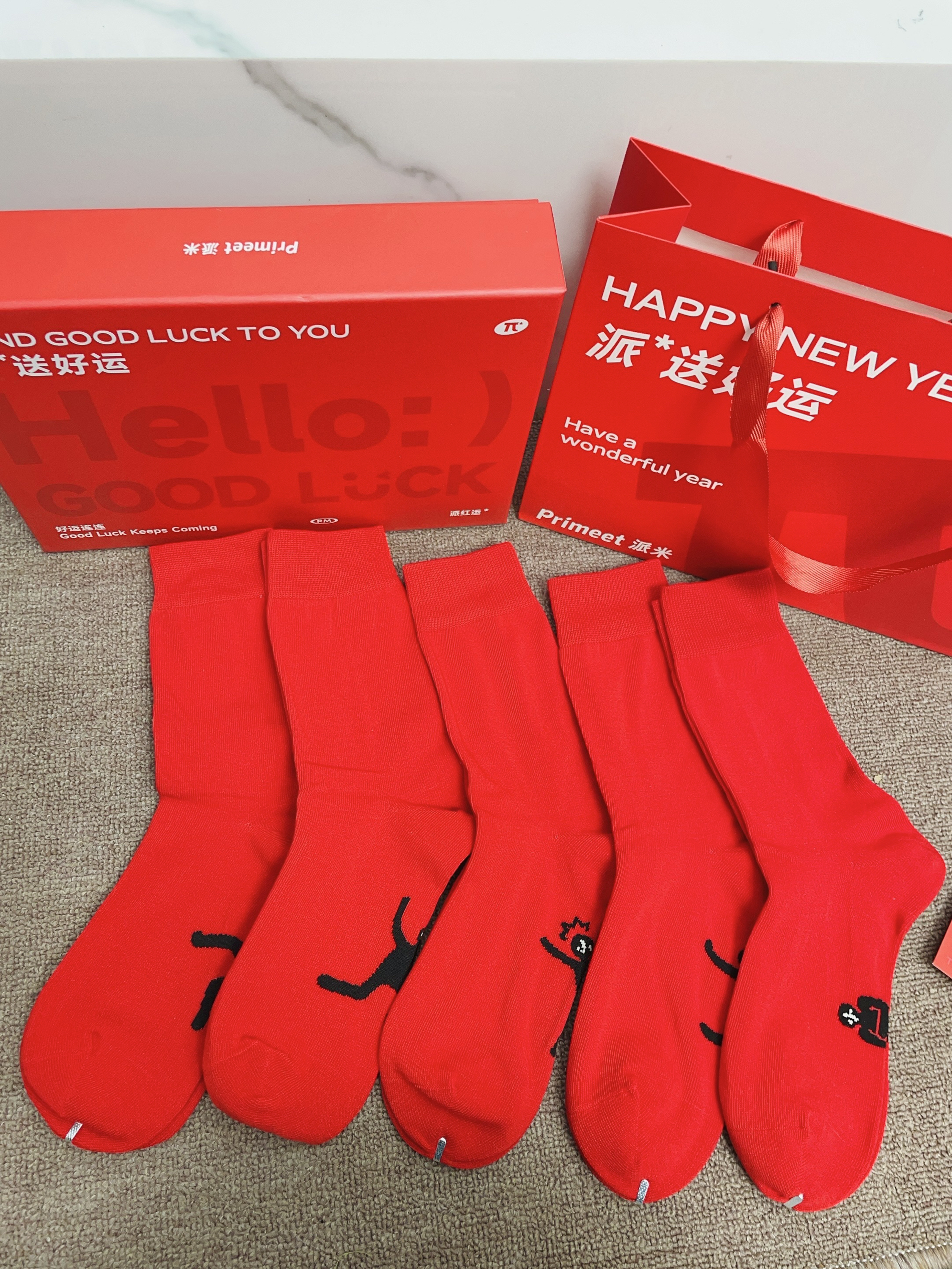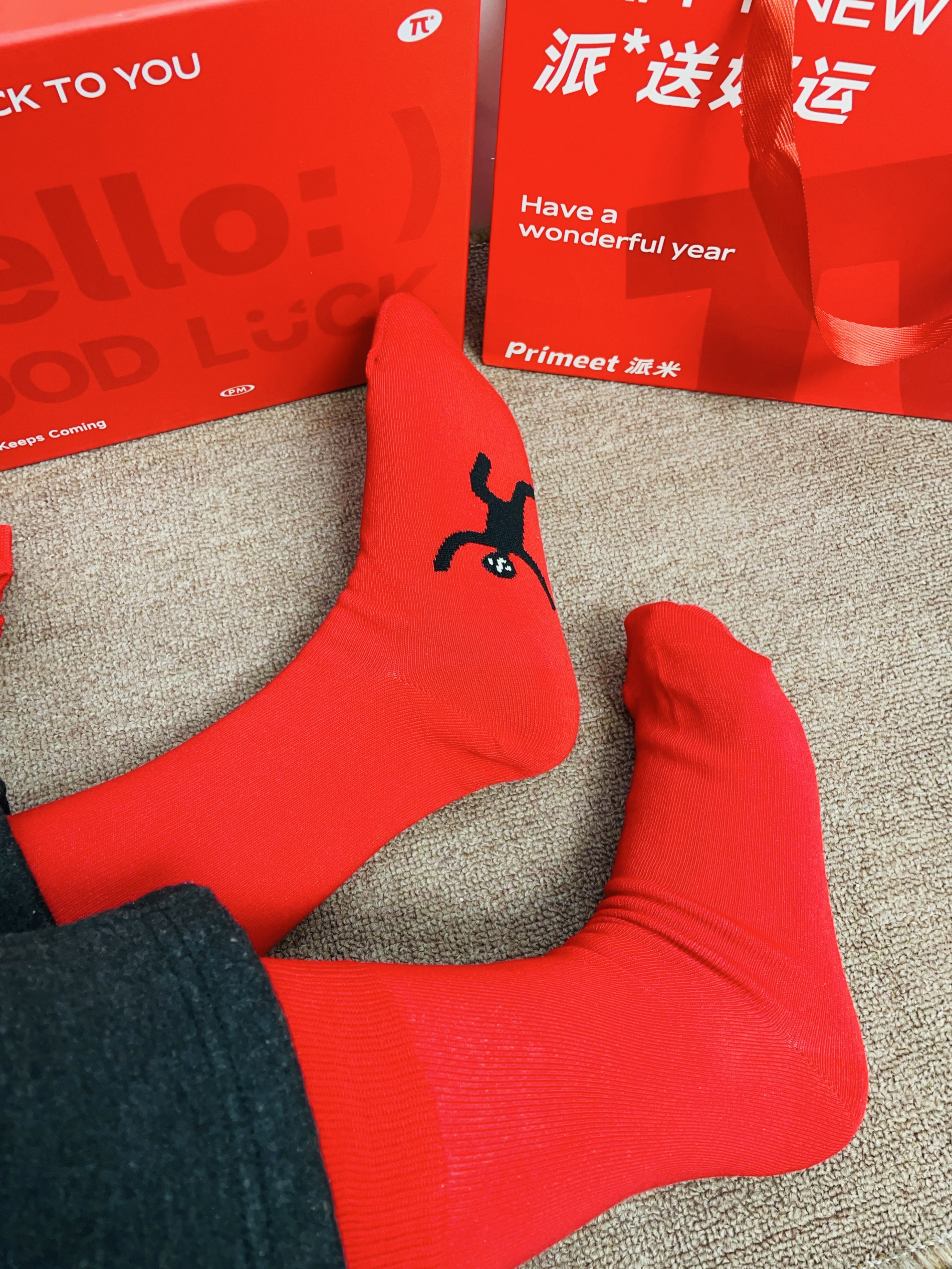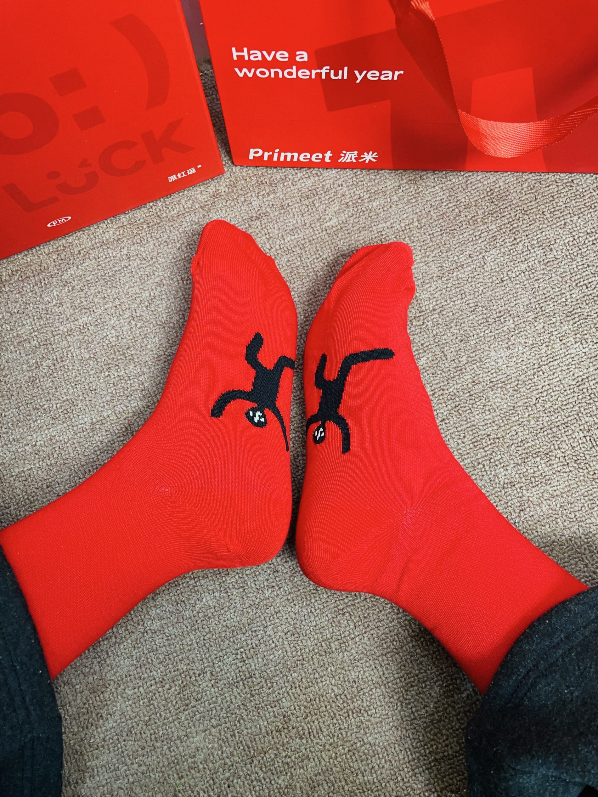 还有一个月就是旧历的春节啦 准备要回老家过新年咯 本命年我给自己安排了红袜子 派米这款红袜子配色好好看啊 还是可以踩着小人图案的 我摸着面料柔软舒适 细节做的可以没有多余线头 我上脚穿了感觉蛮舒服的 穿着它随便搭鞋子都可不挑 礼盒包装精致 送礼自用都可