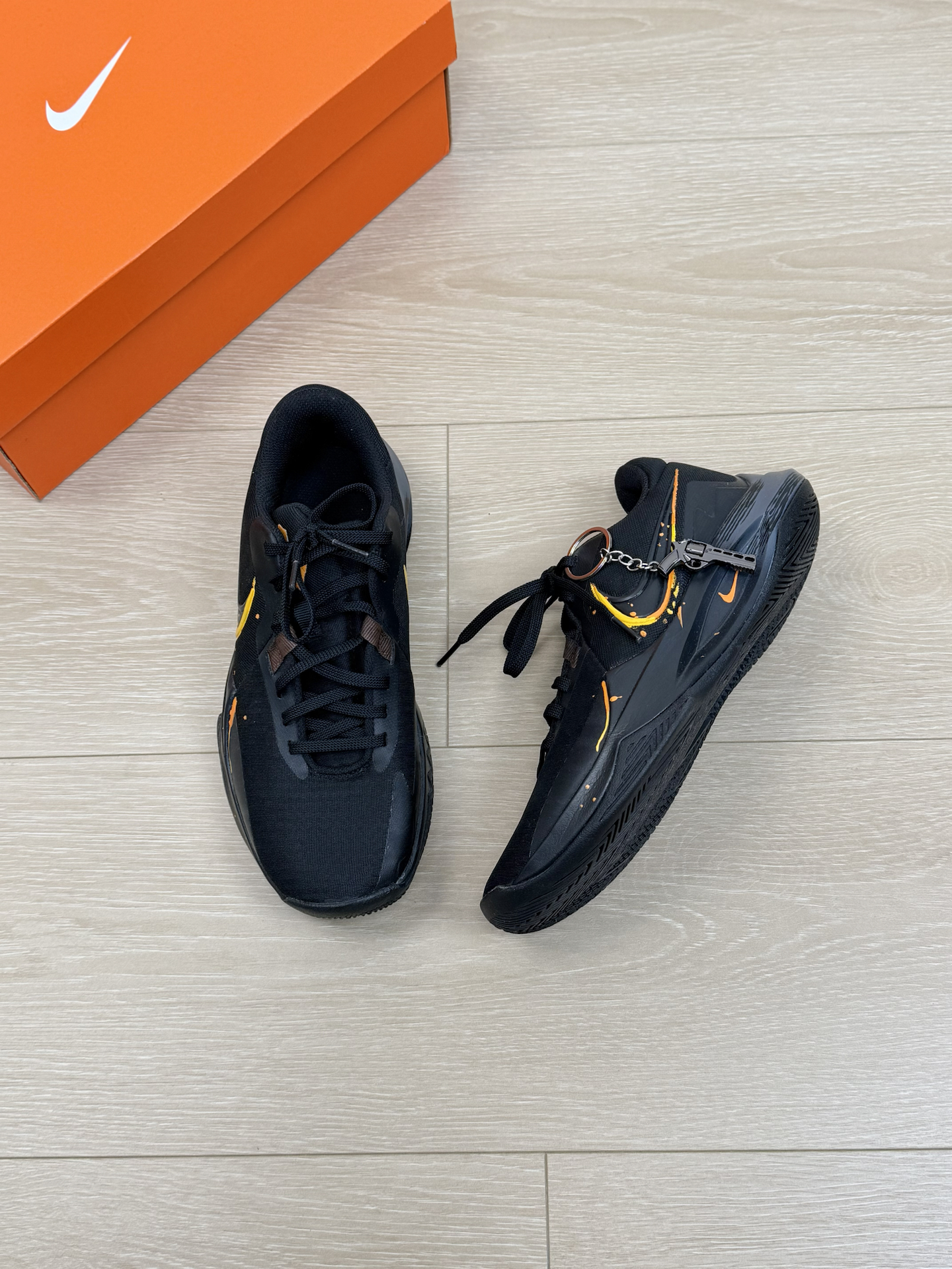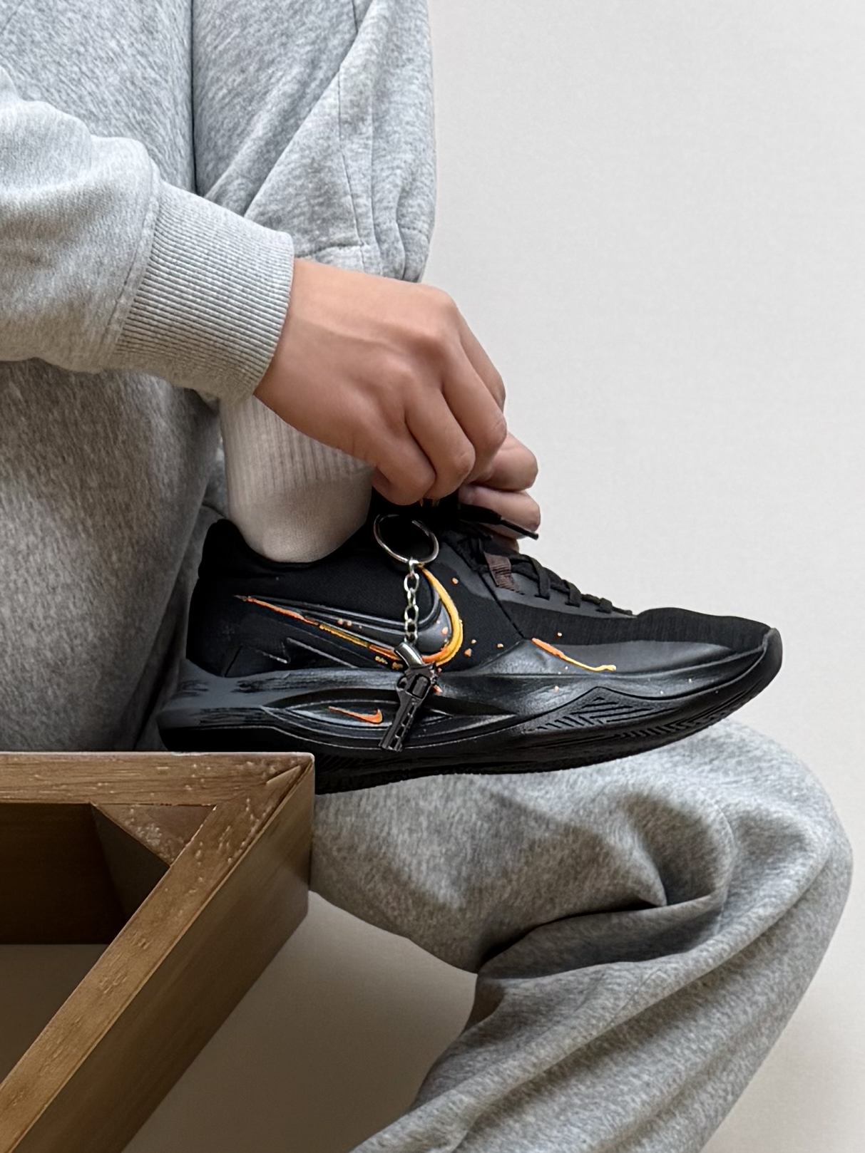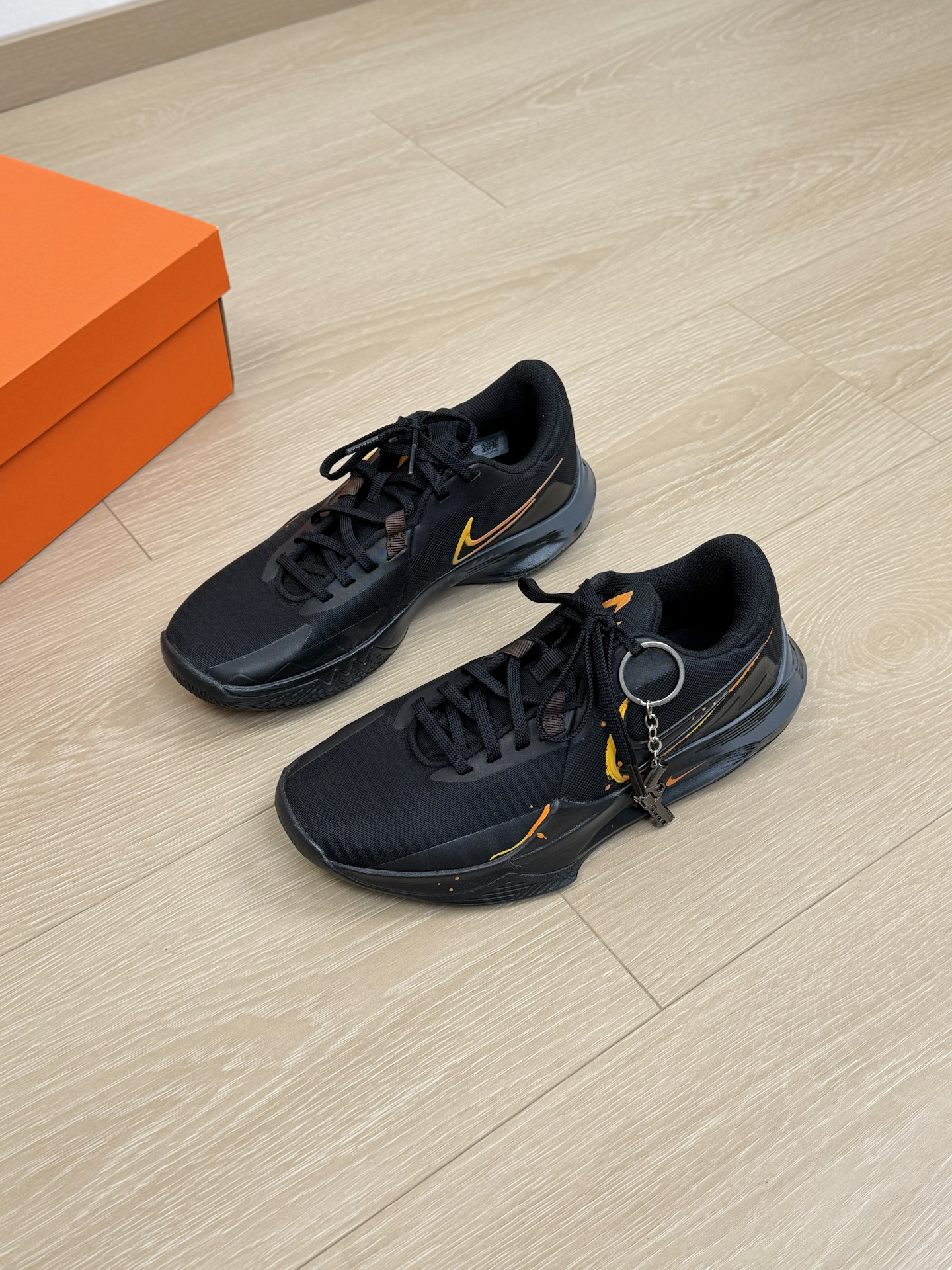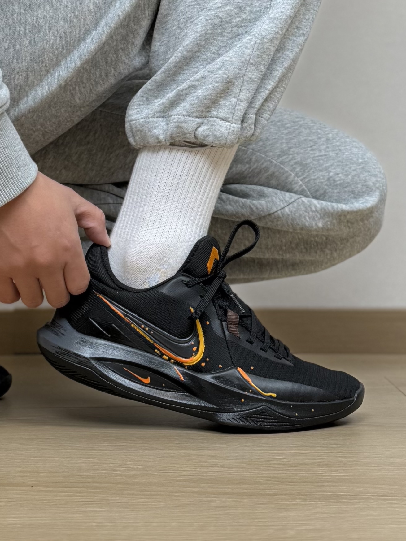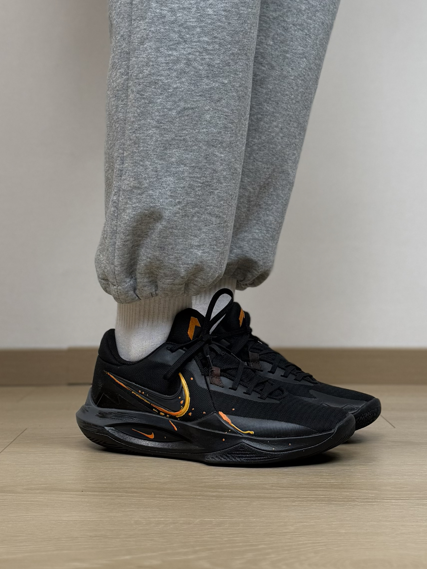 没有zoom、没有碳板 甚至鞋面都是基础的工程网布 偏偏这双nike precision 6 最近火出了圈 不过颜值确实很帅 黑色系的配色 加上小细节的挂坠 上脚真的特别好看 简单的卫裤搭配就能出街或者打球 就是实战性能没有很上颜值 但耐磨、舒适优点也挺突出 小体重突破流 偶尔上上强度没问题 更多我觉得还是通勤穿搭和低强度比较合适 #新年战靴已更新 #交出你的实战球鞋报告 #开年王炸战靴 #新...