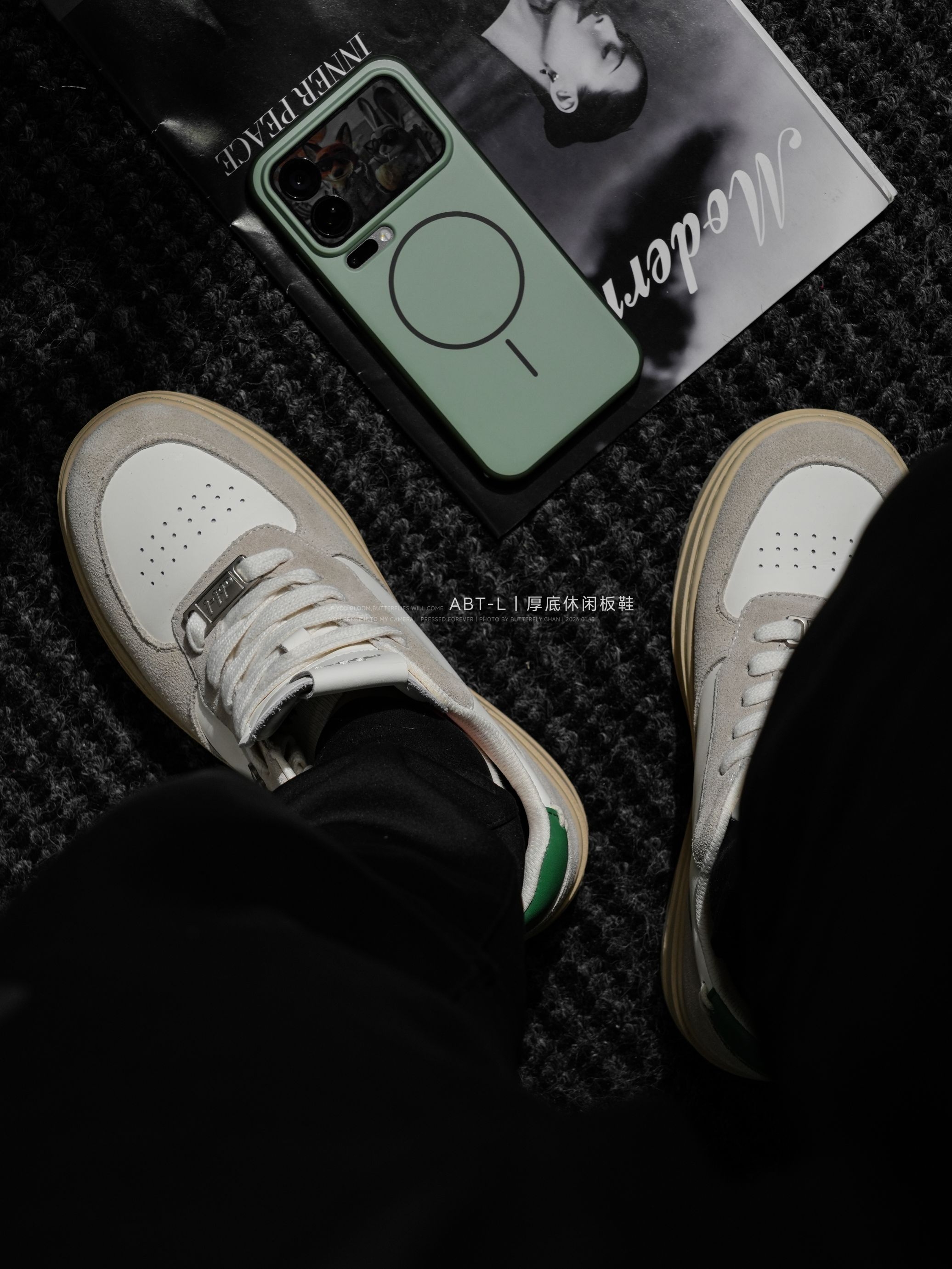 最近入手了ABT-L的一款板鞋 首先我们来说说🦶感 厚底不是那种硬邦邦的 但也不是踩上去狠软的那种 但是走起路来,还真不累🦶 不过稍微有点重 - 然后颜值方面,就不用多说了 因为白绿配色真的太戳我了 不是那种死白,带点做旧的质感 搭配麂皮的拼接,看着就很有档次 而且厚底是那种自然的增高 不会显得🦶大 配牛仔裤👖、运动裤都贼百搭 随便穿都好看… 👟码方面,个人觉得正码正拍就👌🏻了 - 👉🏻互动话题:...