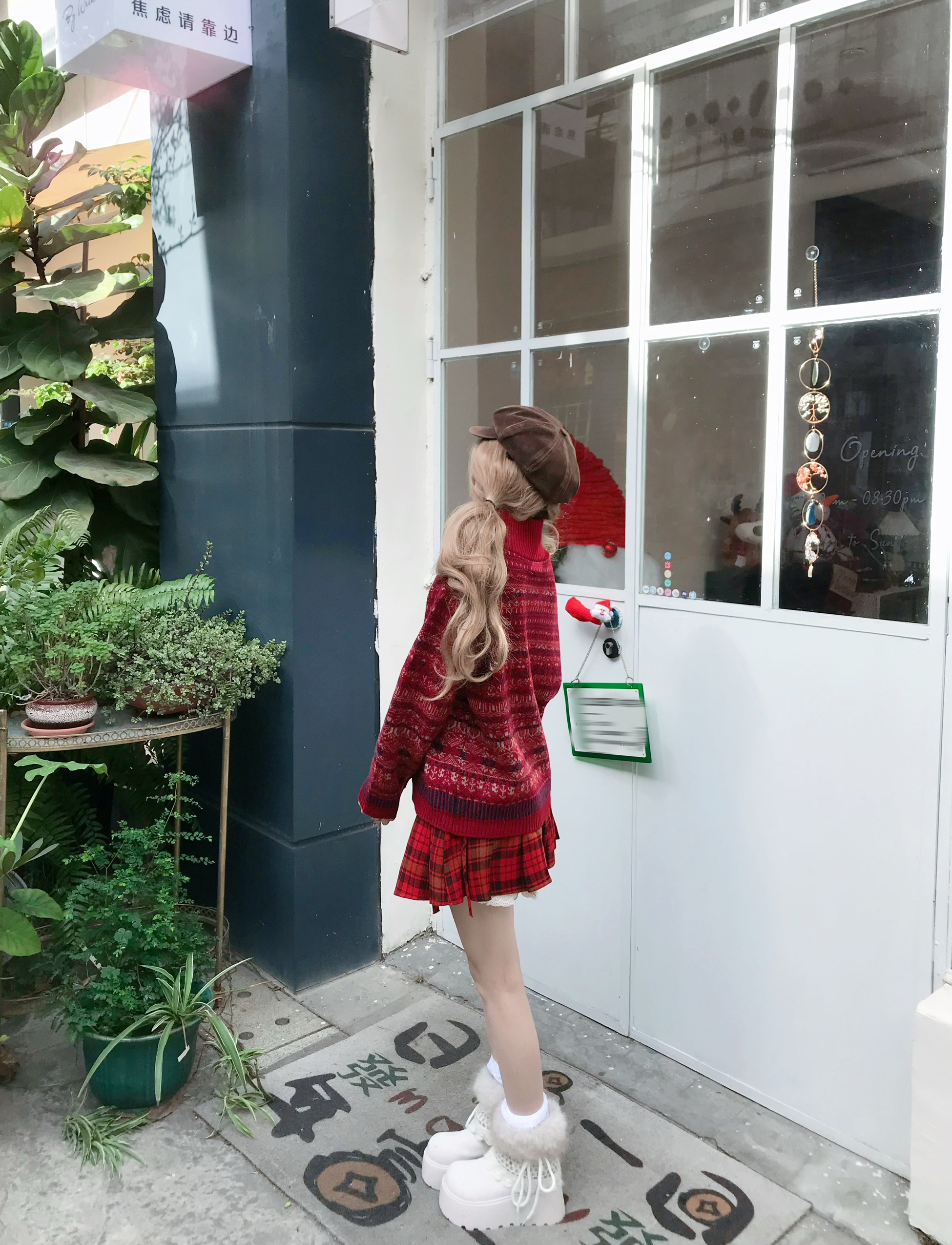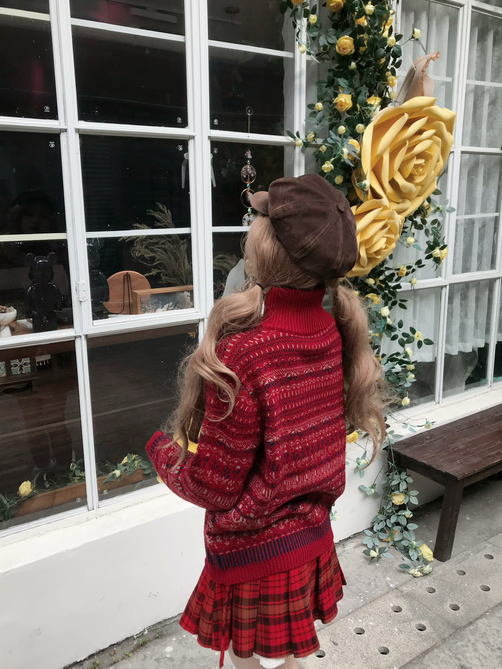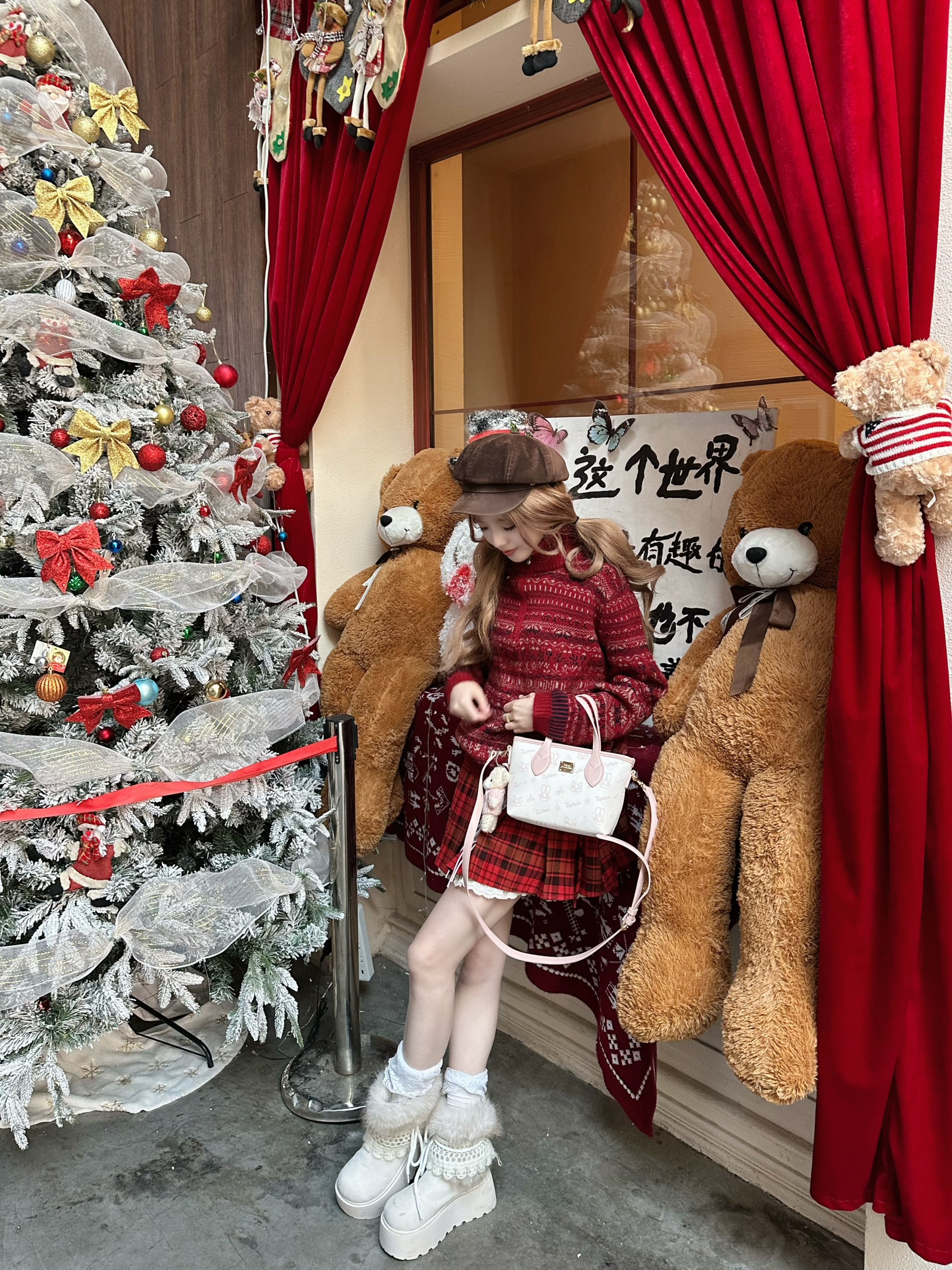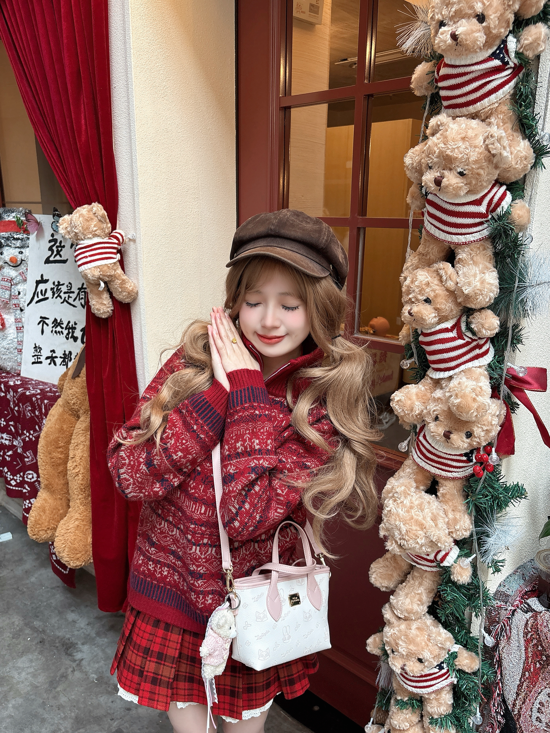 红色系在显白这块没有对手! 🍷好适合年末聚会之类的~ 这件毛衣自带复古滤镜📼 嘿嘿我还搭配了红色格子裙 过年穿搭请抄作业🙈 穿红色心情果然尊嘟会变美丽👐🏻