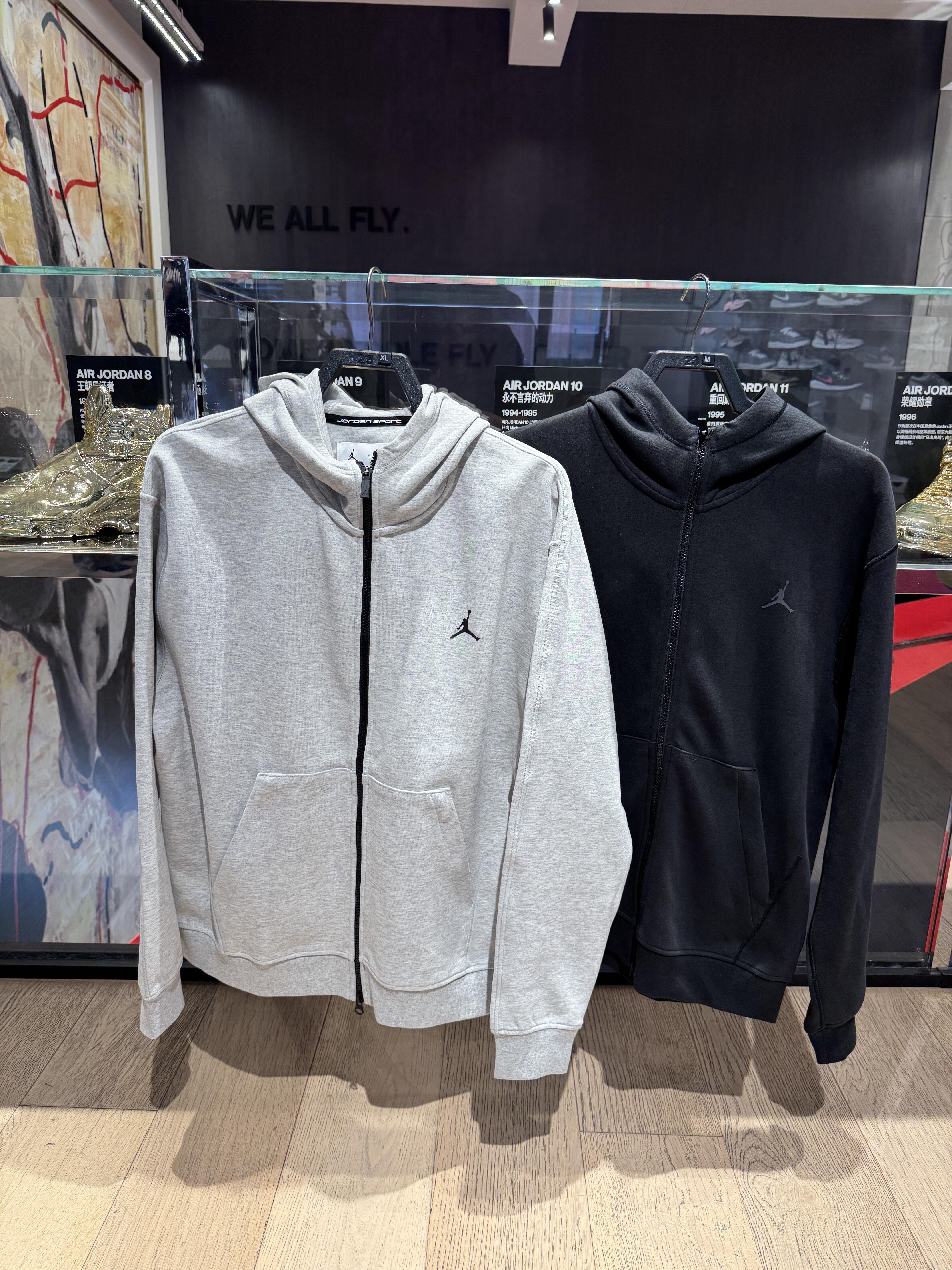 谁能拒绝一件简约又带点酷的AJ连帽衫啊! 浅灰色温柔又百搭,黑款低调显质感,都是全拉链设计+经典飞人小标,日常穿低调不张扬,但细节里全是质感~ 面料是那种软乎乎的棉质,贴身穿舒服到不想脱,连帽+大口袋的设计,通勤/出街/运动都能搭,随便配条牛仔裤或运动裤都好看! 灰黑双色我都想all in了,你们更pick哪个颜色?