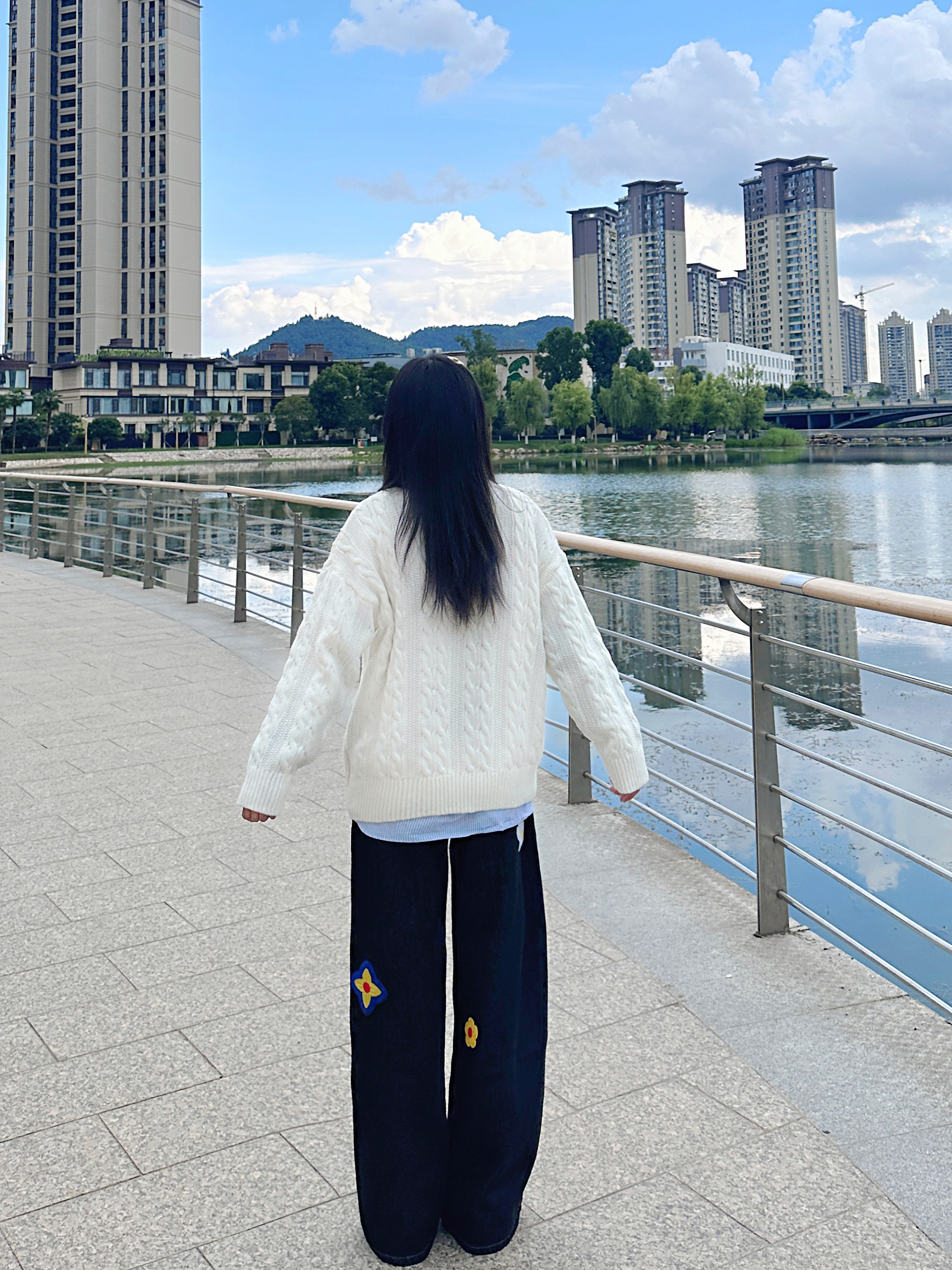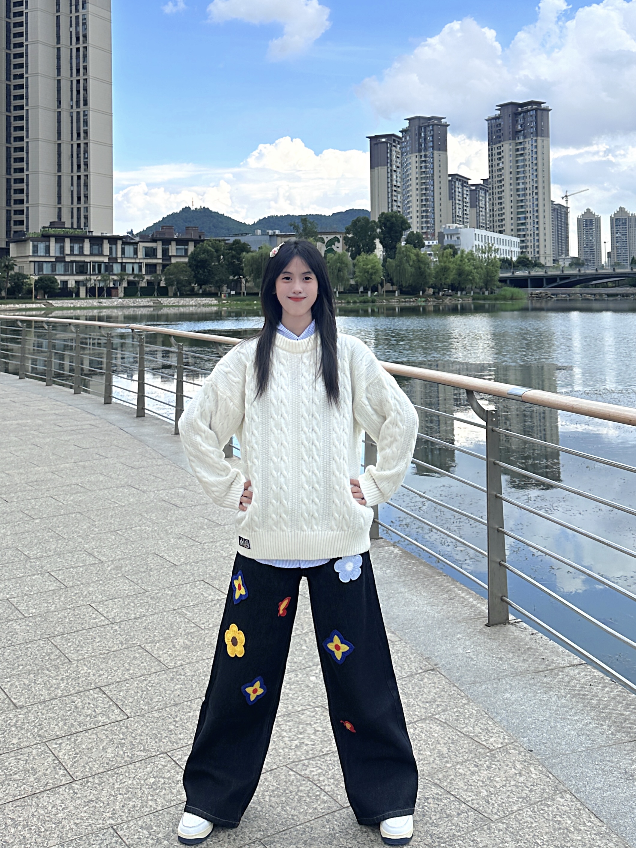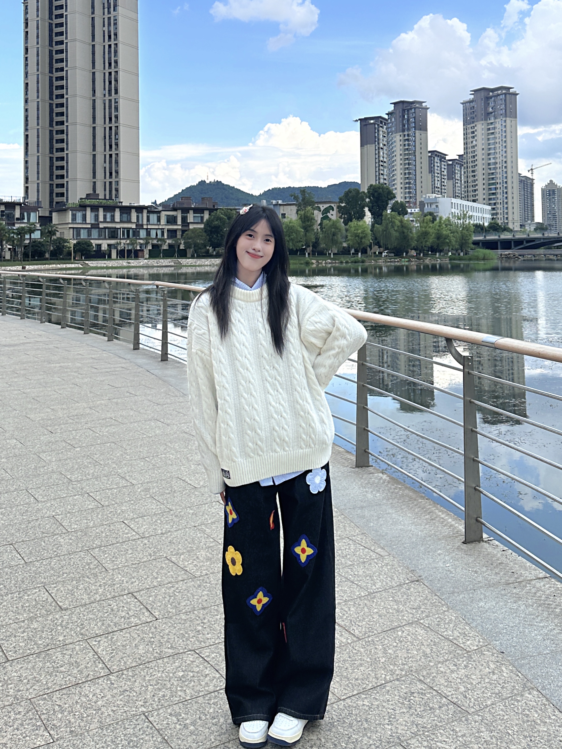 👔 :星际者米白色毛衣 搭配上衬衫软软糯糯的 👖 :新因素小花牛仔裤 👟 :空军一号