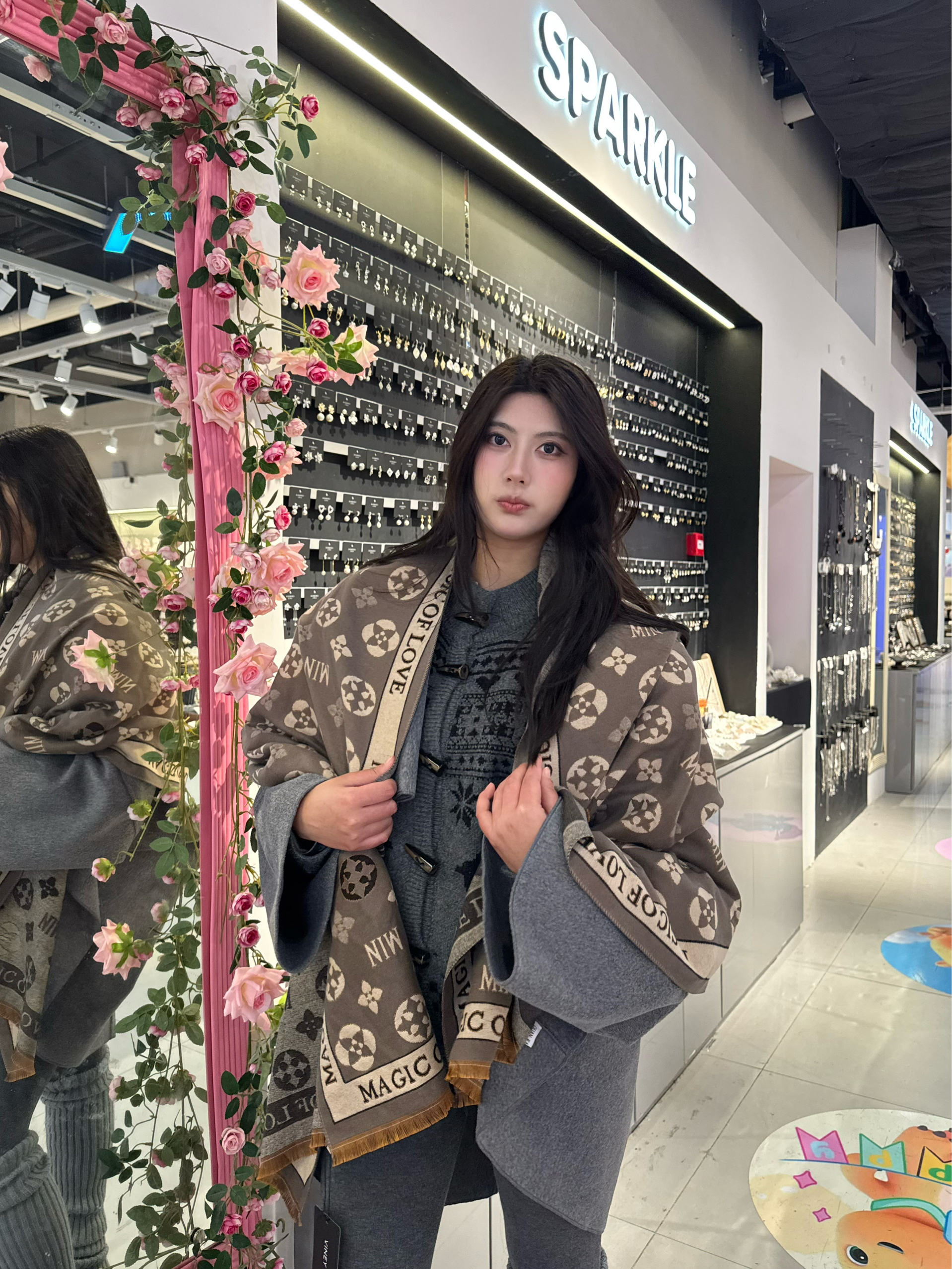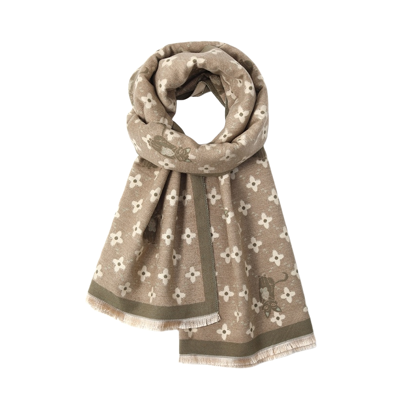 软糯的面料贴颈超舒服 完全不扎皮肤 印花图案是复古的老花调调 摸起来的质感完全不像百元价位的围巾! 尺寸够大 既能当围巾保暖 还能披在肩上当披肩 韩系女主的慵懒氛围感直接拉满