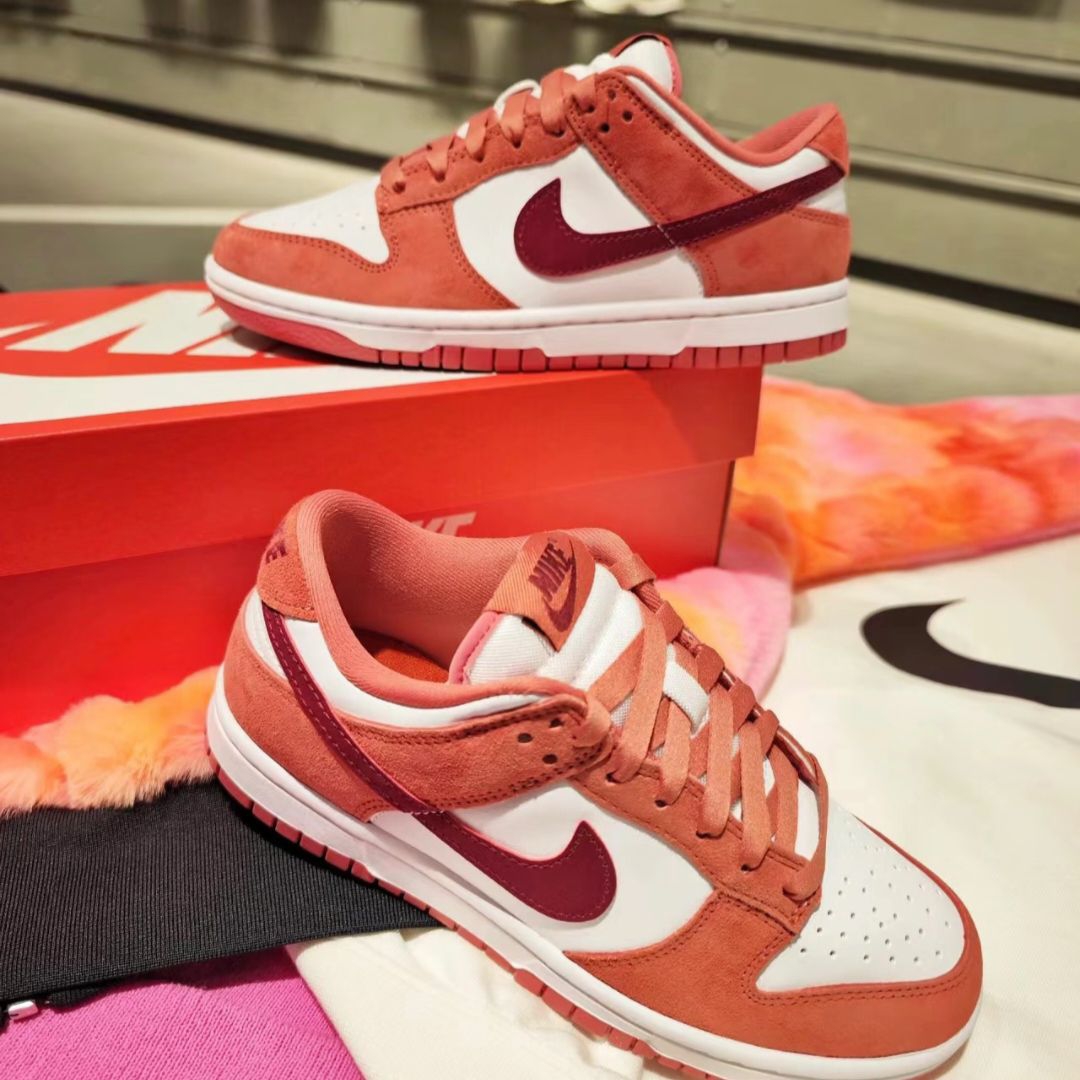 Nike Dunk Low“草莓熊”配色,白粉拼接+深红Swoosh,少女感满满!麂皮+皮革拼接,质感柔软又透气,低帮设计日常穿搭超百搭,无论牛仔裤还是裙装都能轻松驾驭✨。粉色外底呼应整体配色,细节精致,尺码覆盖36-45码,情人节限定,甜美又实用,女生必入!