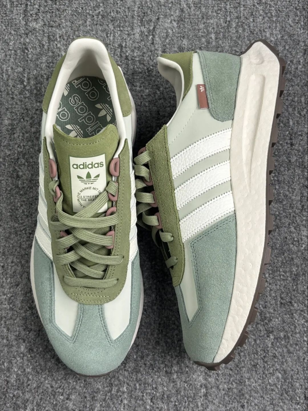 本篇笔记关联了adidas Originals RETROPY E5 跑鞋 缓震透气复古 灰棕/浅豆绿/白色、adidas Originals RETROPY E5 跑鞋 缓震透气复古 白色/亚麻绿/森林绿等商品,为用户提供真实的使用体验和购买参考。