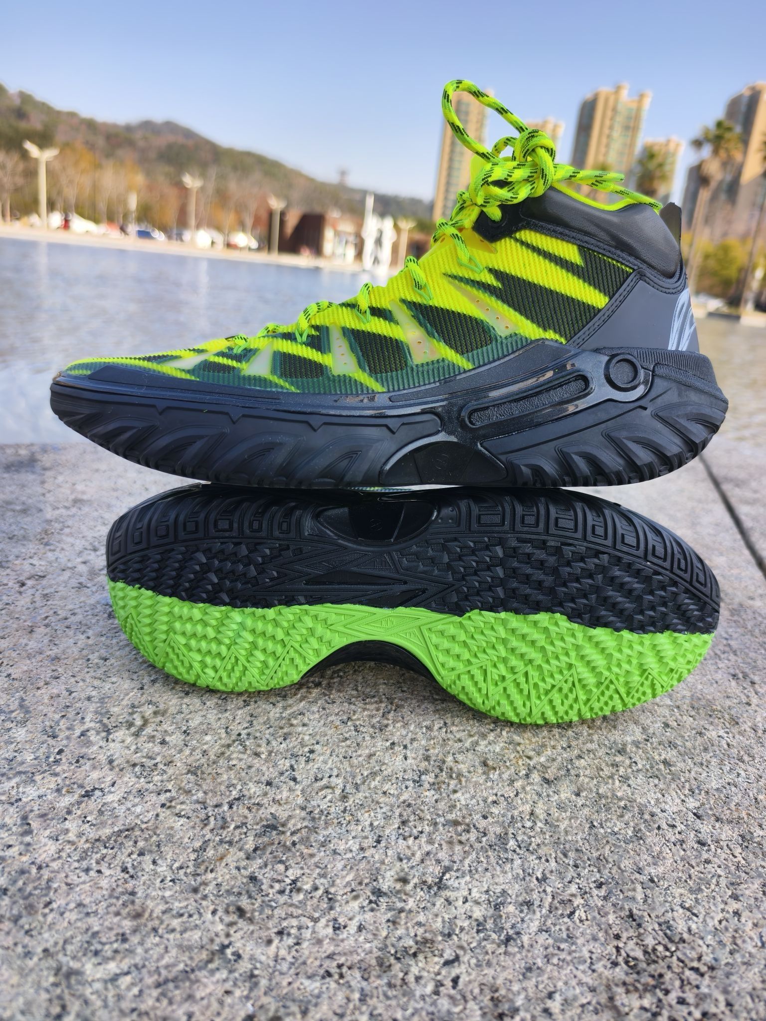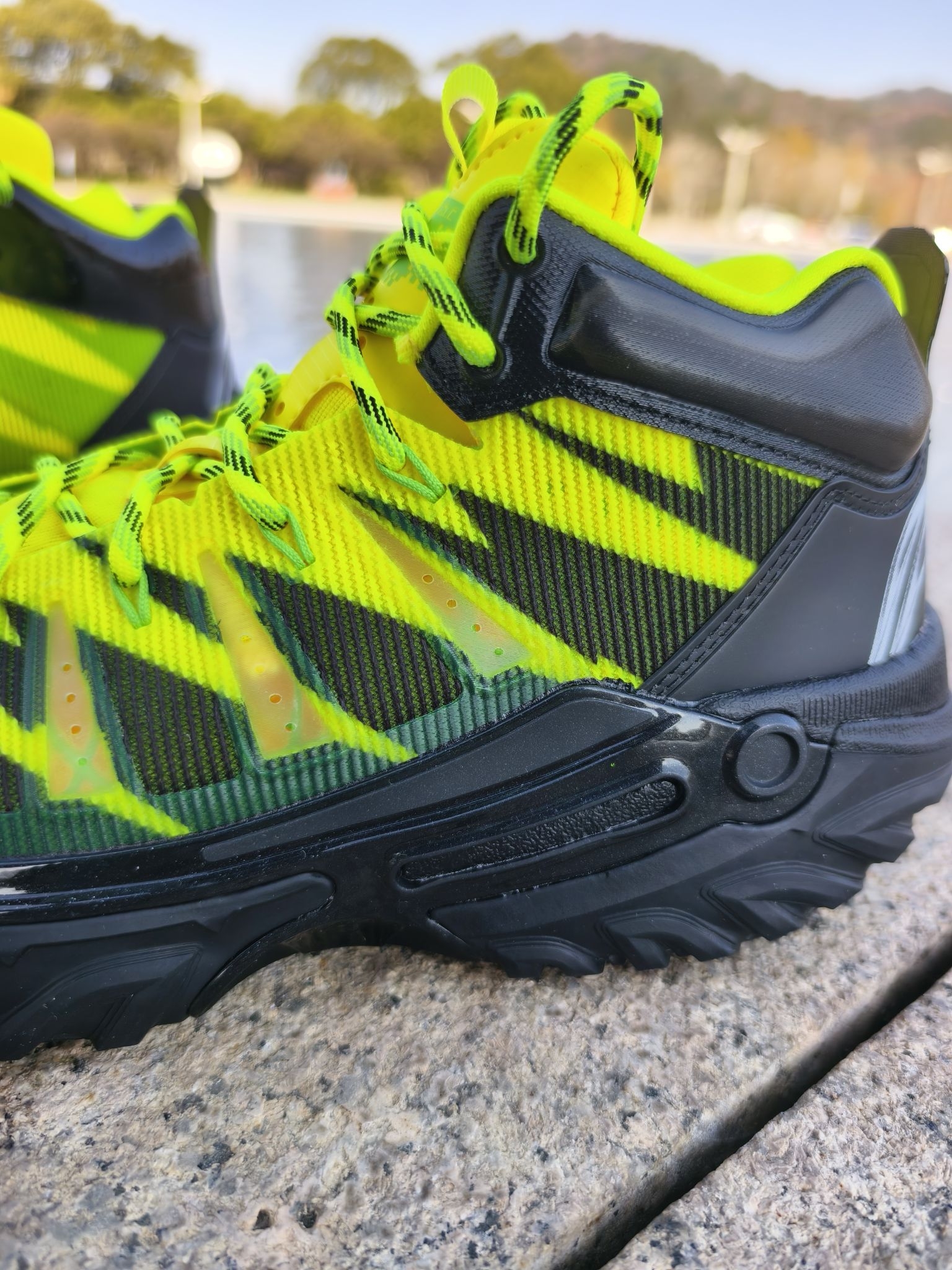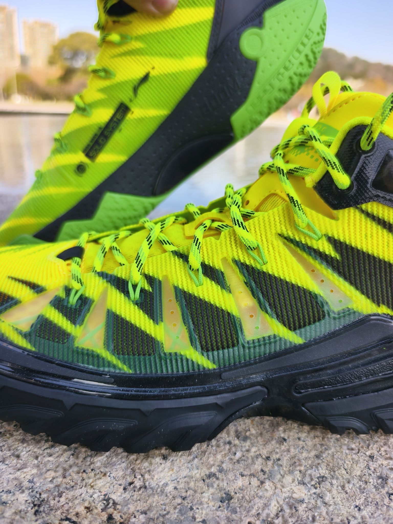 🏀桀骜不驯就是打篮球应该有的态度,也是我一直信奉的! 🌺「食人花」配色绝对是桀骜2 High系列里的 吸睛王炸。鞋身以荧光绿渐变为主色调,搭配暗红色细节,模拟食人花妖异又危险的美感。 👀麂皮+网眼+TPU透明织带的材质拼接层次感拉满,上脚即带高街机能风,而且我也特别喜欢这个名字,食人花,就是要吃掉对位的对手,侵略性满满! 👟上脚第一感觉就是稳!高帮设计+内置海绵填充对脚踝锁定很友好,安全感...