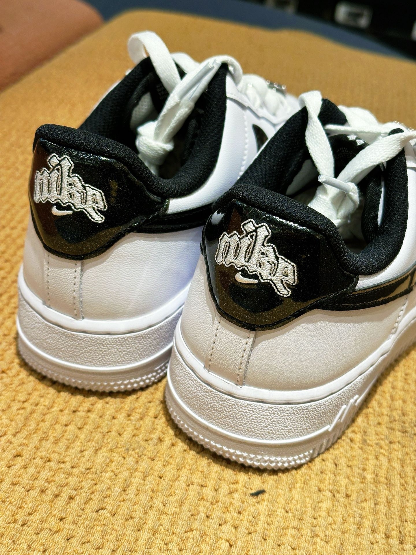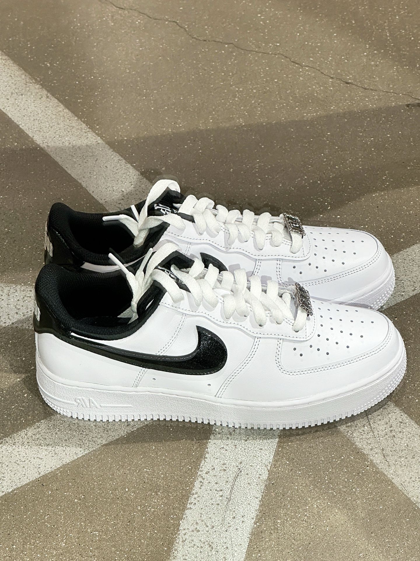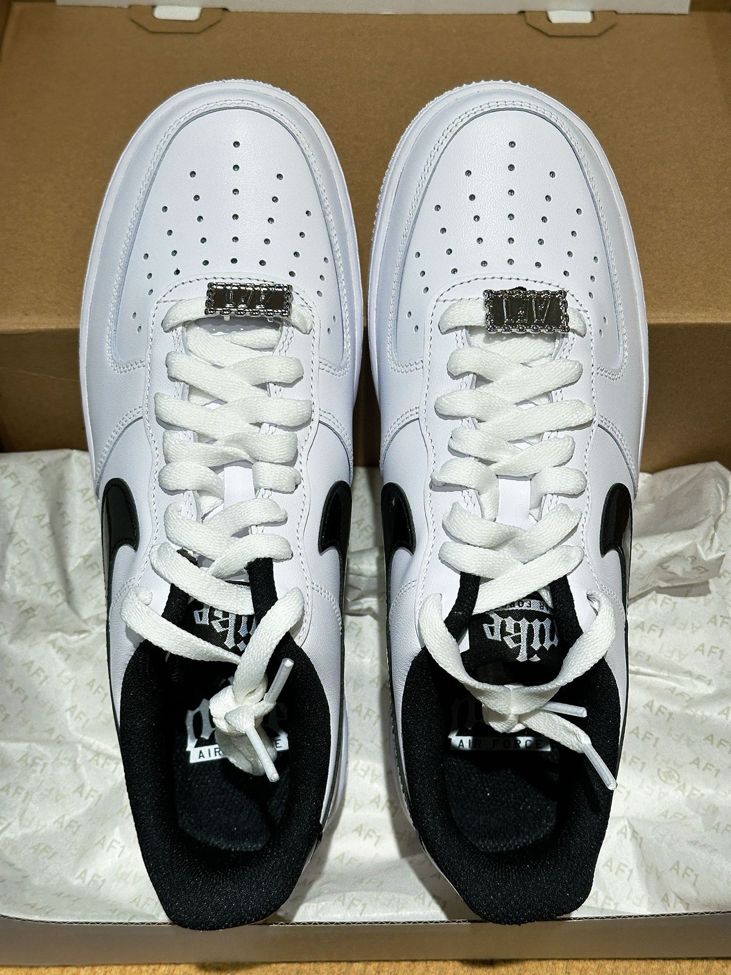 AF1白黑钩!这双把高级感焊在鞋上了|||宝子们!新入的这双 AF1直接戳中我精致心巴! 奶白鞋身干干净净,黑大钩软乎乎的超有质感,还有金属扣装饰的鞋带,细节里全是小心机,拿到手就忍不住狂摸~ 皮质软到像云朵,鞋型经典又显脚小,上脚包裹感巨舒服,暴走一天都不磨脚!搭配小裙子、牛仔裤或者西装都很绝,日常出街、约会都能slay,感觉四季穿都不违和~ 黑银鞋盒+“NIKE AIR”标仪式感拉满,鞋舌的黑...
