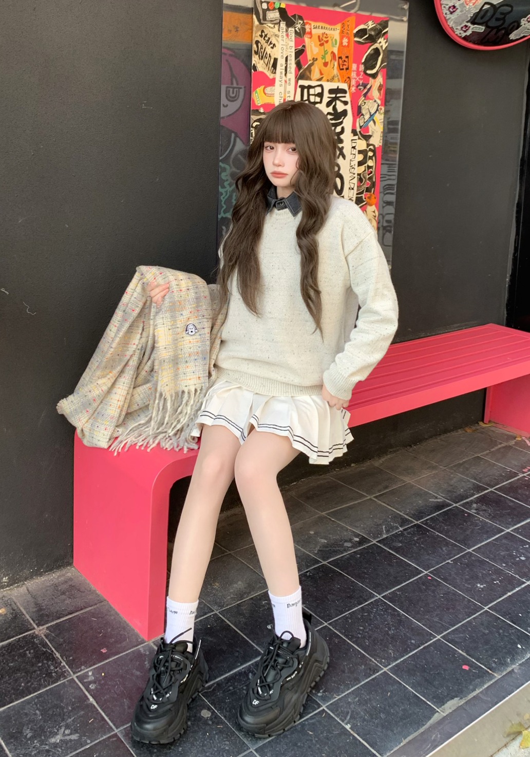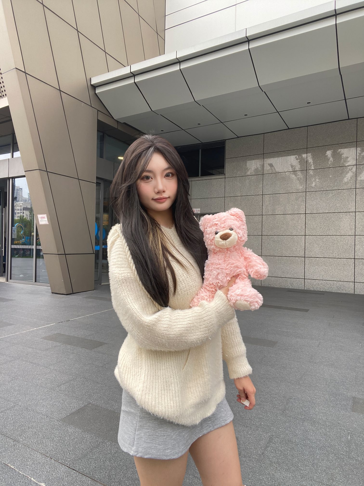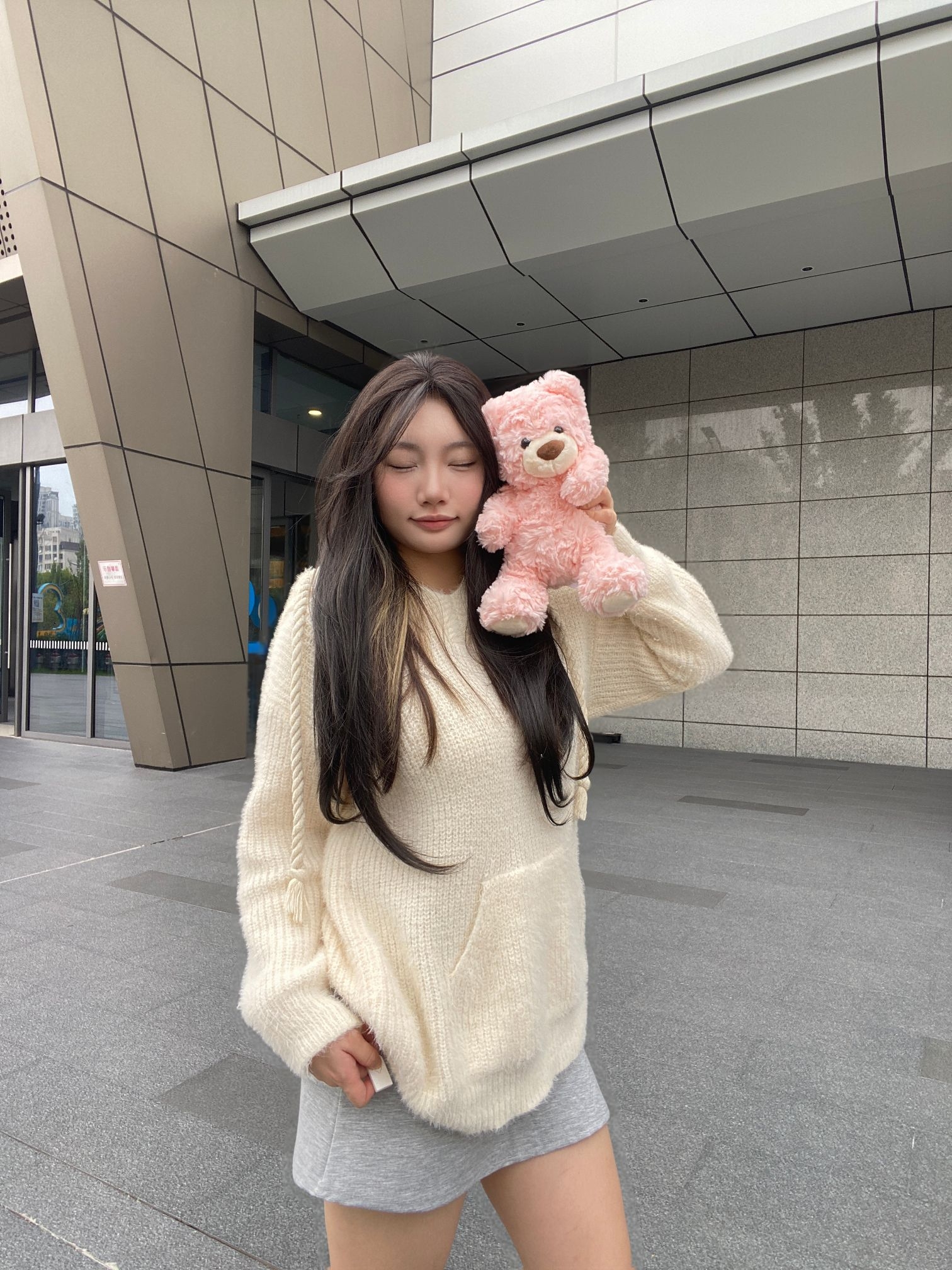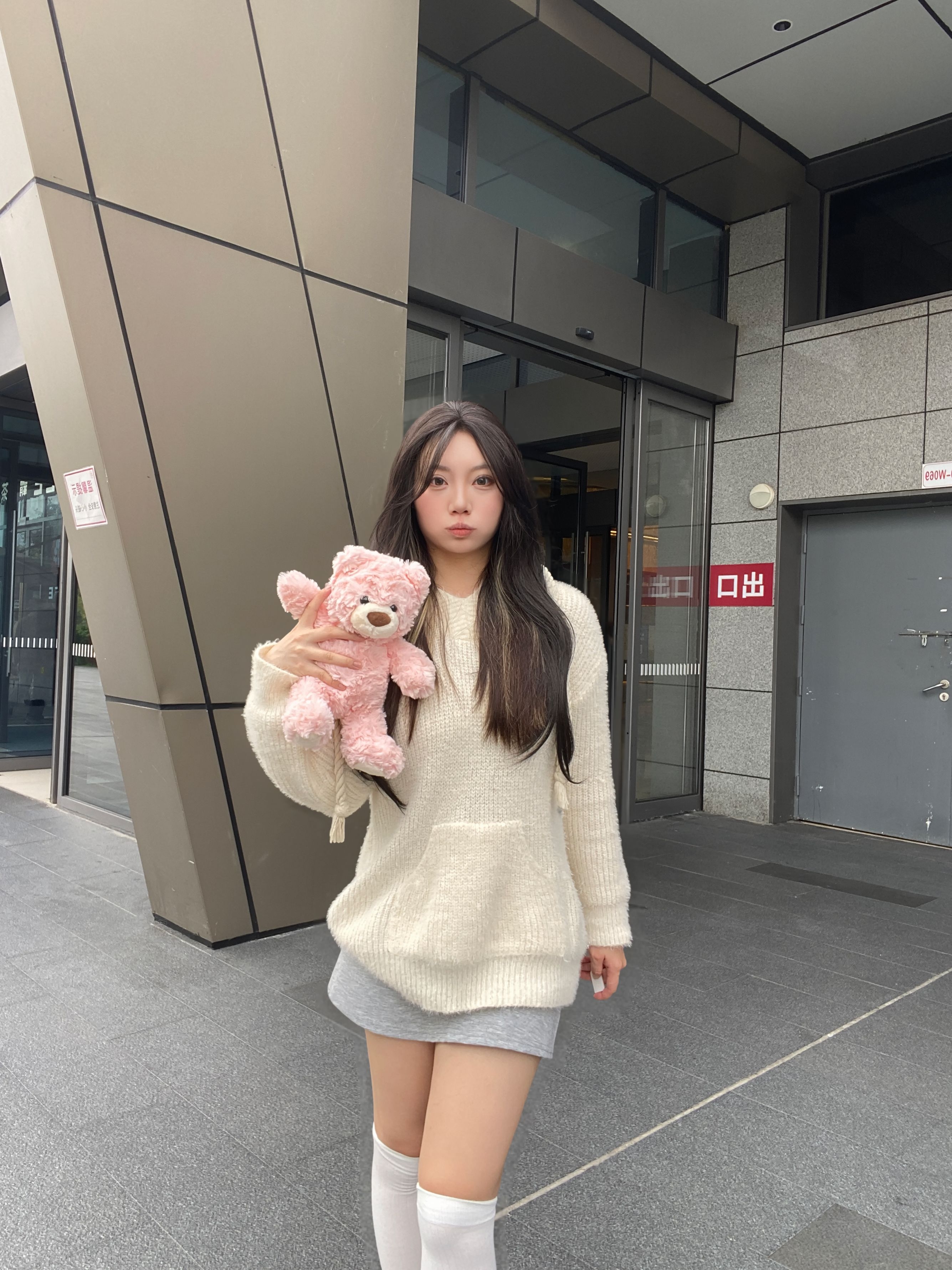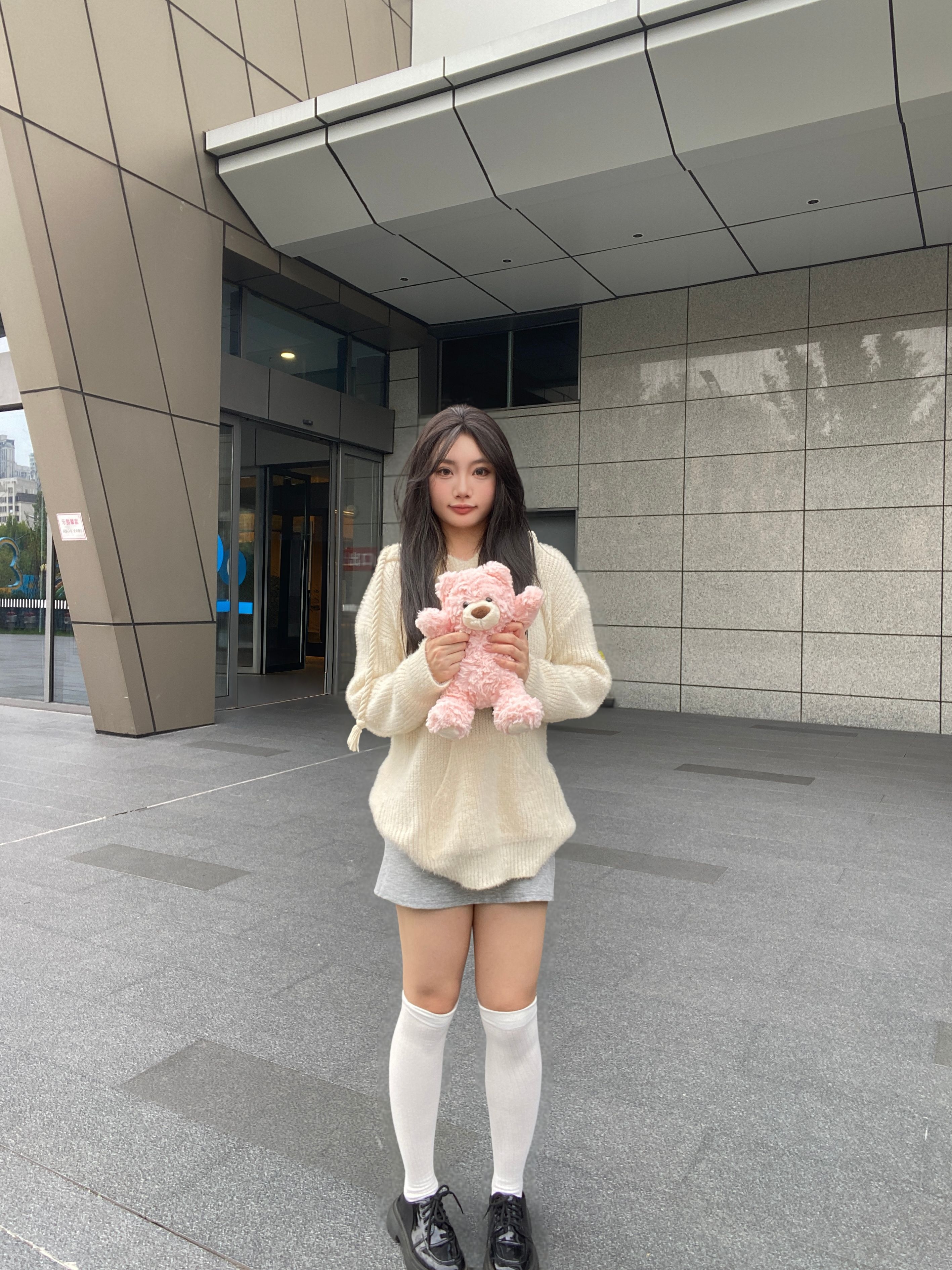 这件奶fufu的毛衣真的太会了!宽松版型对身材包容性超强,软fufu的质感贴身穿也舒服,搭配灰色短裙和过膝白袜,直接把甜妹氛围感拉满。而且卫衣很保暖,又百搭~脚上的厚底小皮鞋还悄悄拉长了比例,再配上这只粉粉的小熊玩偶,走在街上回头率直接拉满~这套穿搭日常又减龄,不管是约会还是和朋友出门玩都很合适,怕冷的姐妹还能在外面搭一件大衣,冬天也能轻松做甜妹!