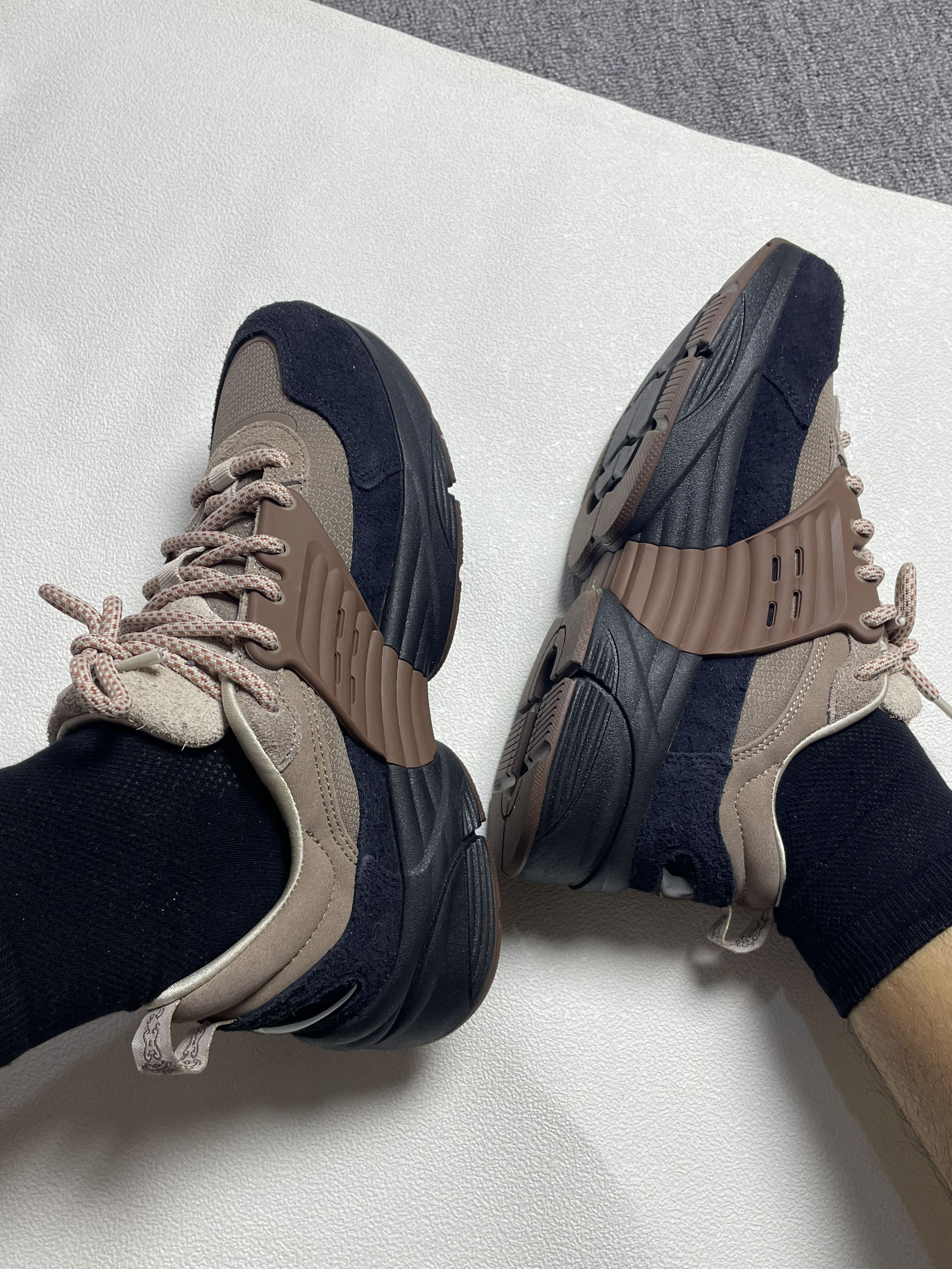 最近上脚了这双马年限定配色的训练鞋,第一眼被吸引是因为它那种沉稳的棕黑配色,实物的翻毛皮用料非常扎实,拿在手里就能感觉到那种复古的质感 👞。虽然定位偏向跑步训练,但它的设计感更像是一双质感高级的“老爹鞋”,属于越看越耐看的类型。翻毛皮的覆盖让鞋身层次感很强,即便不运动,日常用来搭配工装裤或者深色牛仔裤,视觉重心也非常稳。 最让我惊艳的是它的中底反馈 ☁️。说实话,这是我近期穿过脚感最绵软的一双鞋,...