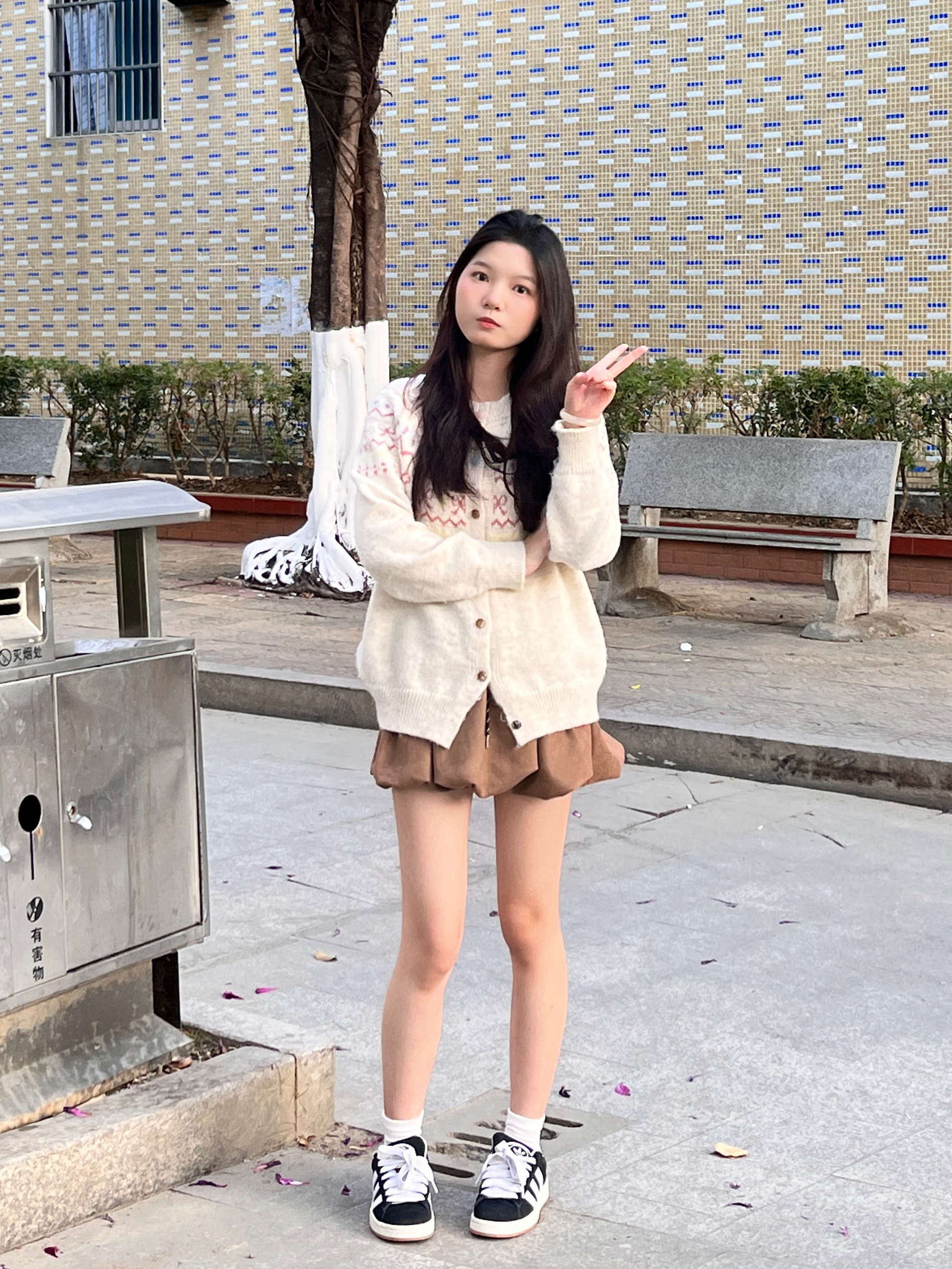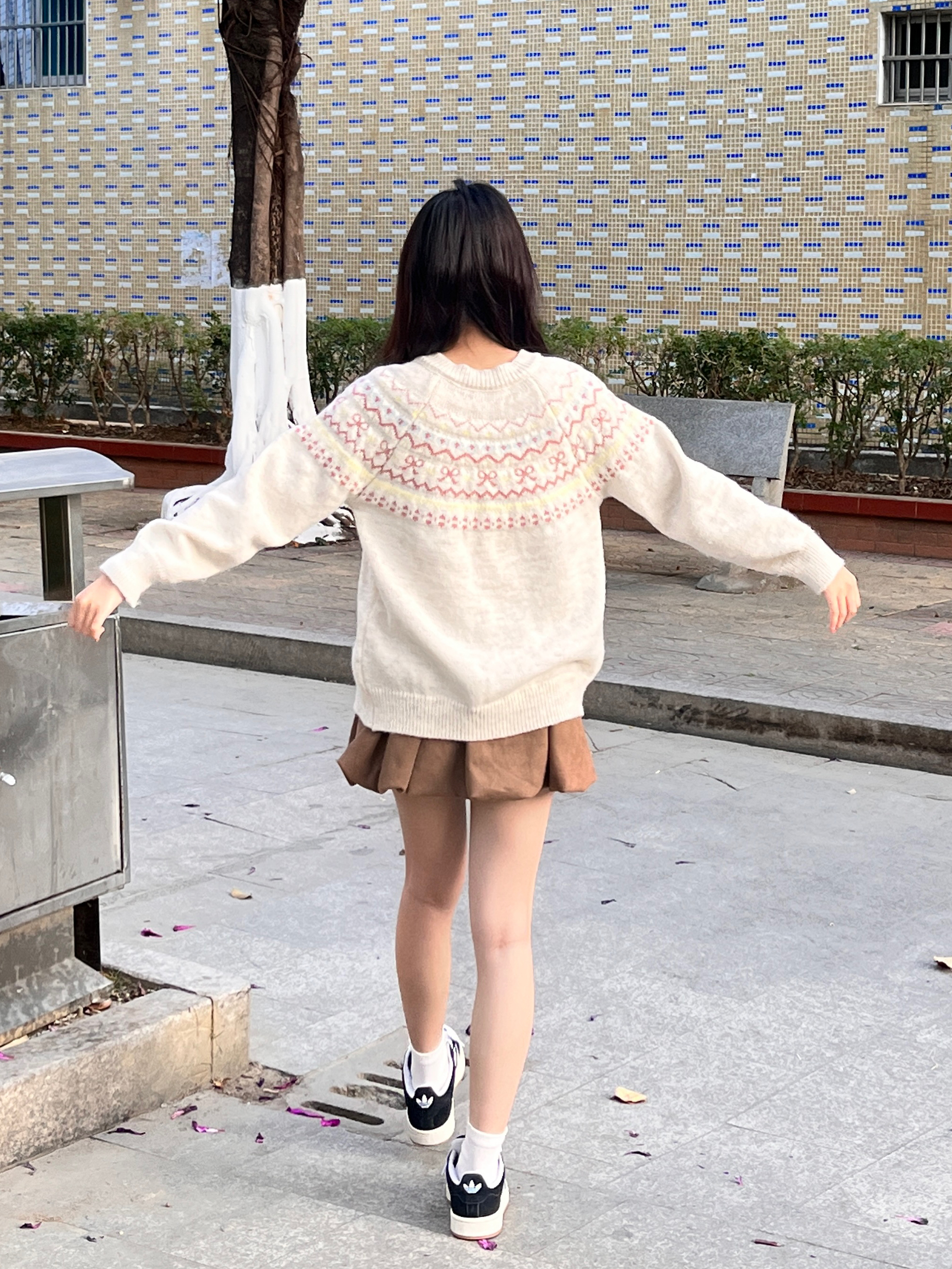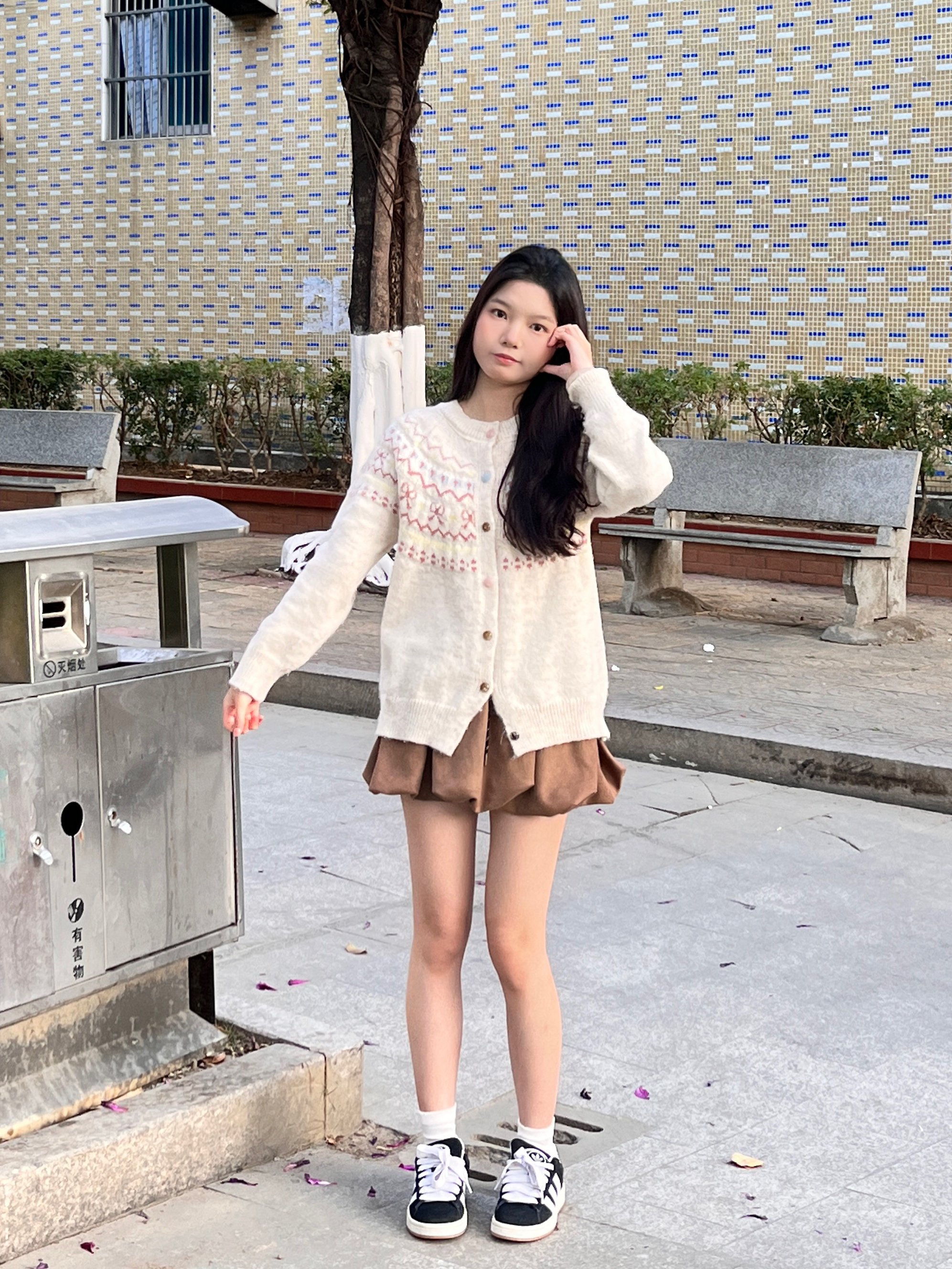 ✨ 费尔岛提花针织开衫+花苞裙,软乎乎的包裹感太舒服了~黑白板鞋一搭,韩系氛围感直接拉满🌞 小个子穿也能拥有大长腿!