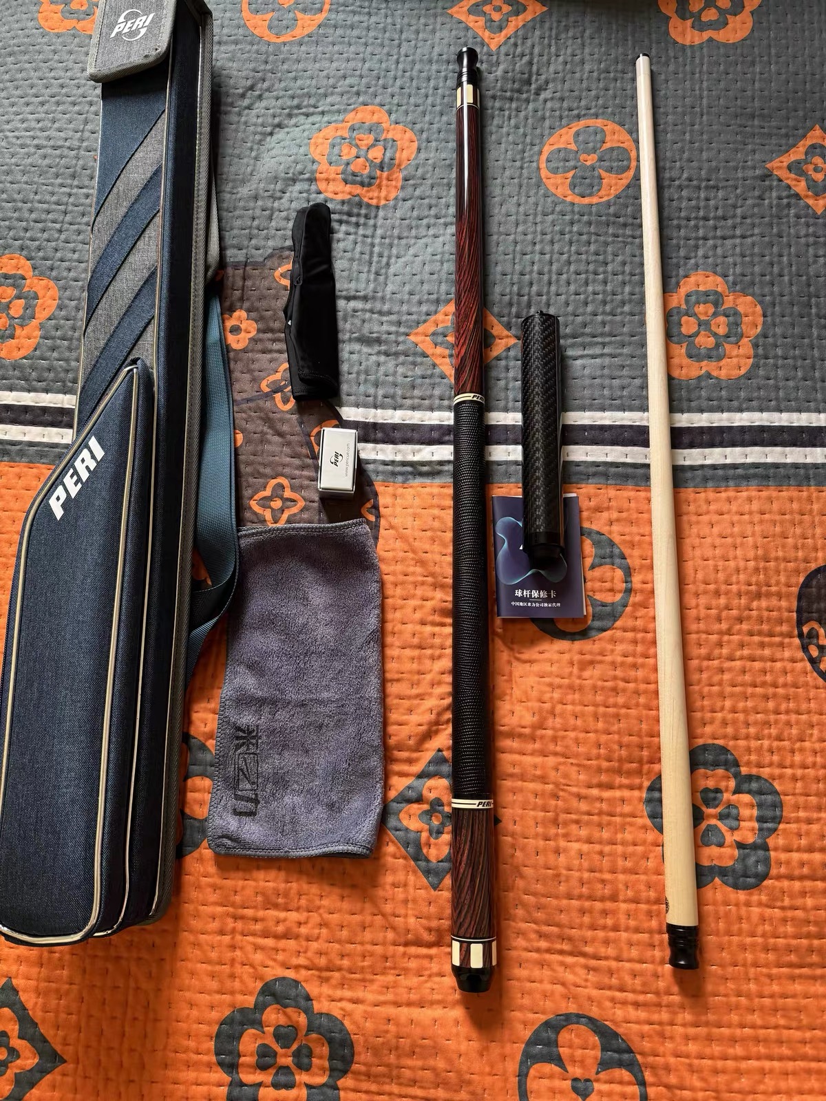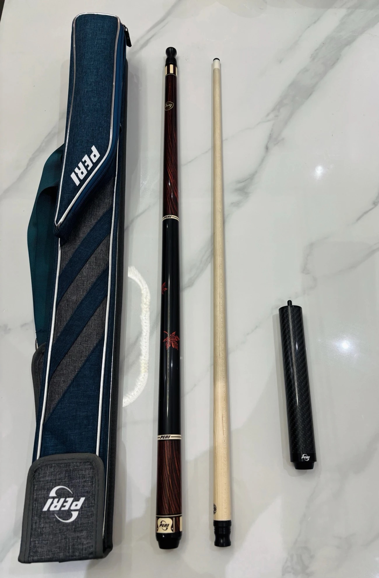 PERI台球杆,木纹如画,握感如诗。精准击球,尽在掌握。蓝袋藏锋,红杆显质,一杆在手,尽显台球魅力,成就你的桌球传奇。