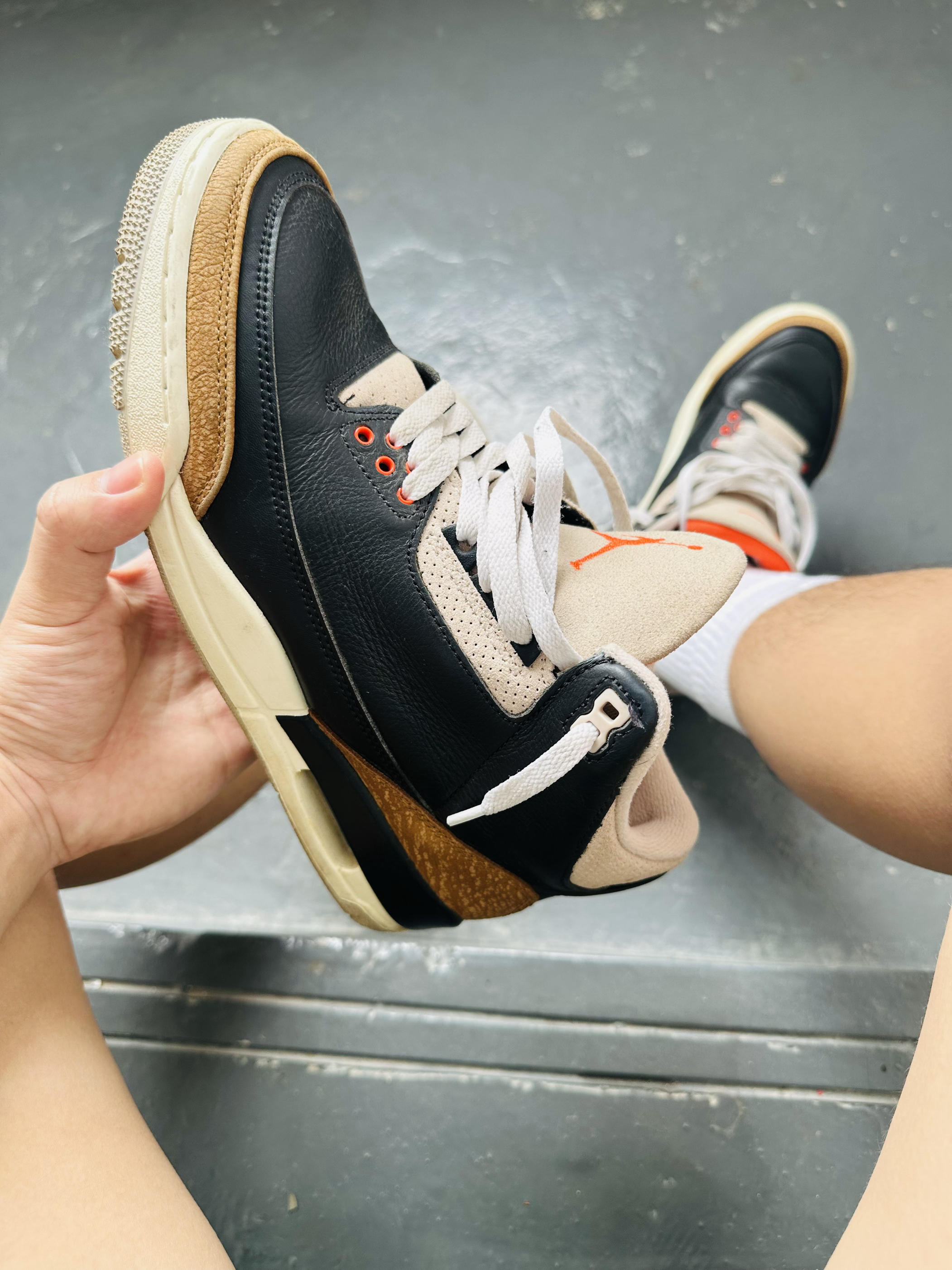 AJ3大象🐘一款千元以下的性价比高颜值正代鞋款,配色采用黑棕为主色,橙色LOGO点缀简直好看到爆,再换条白色鞋带颜值再提升一个档次。😍😍😍