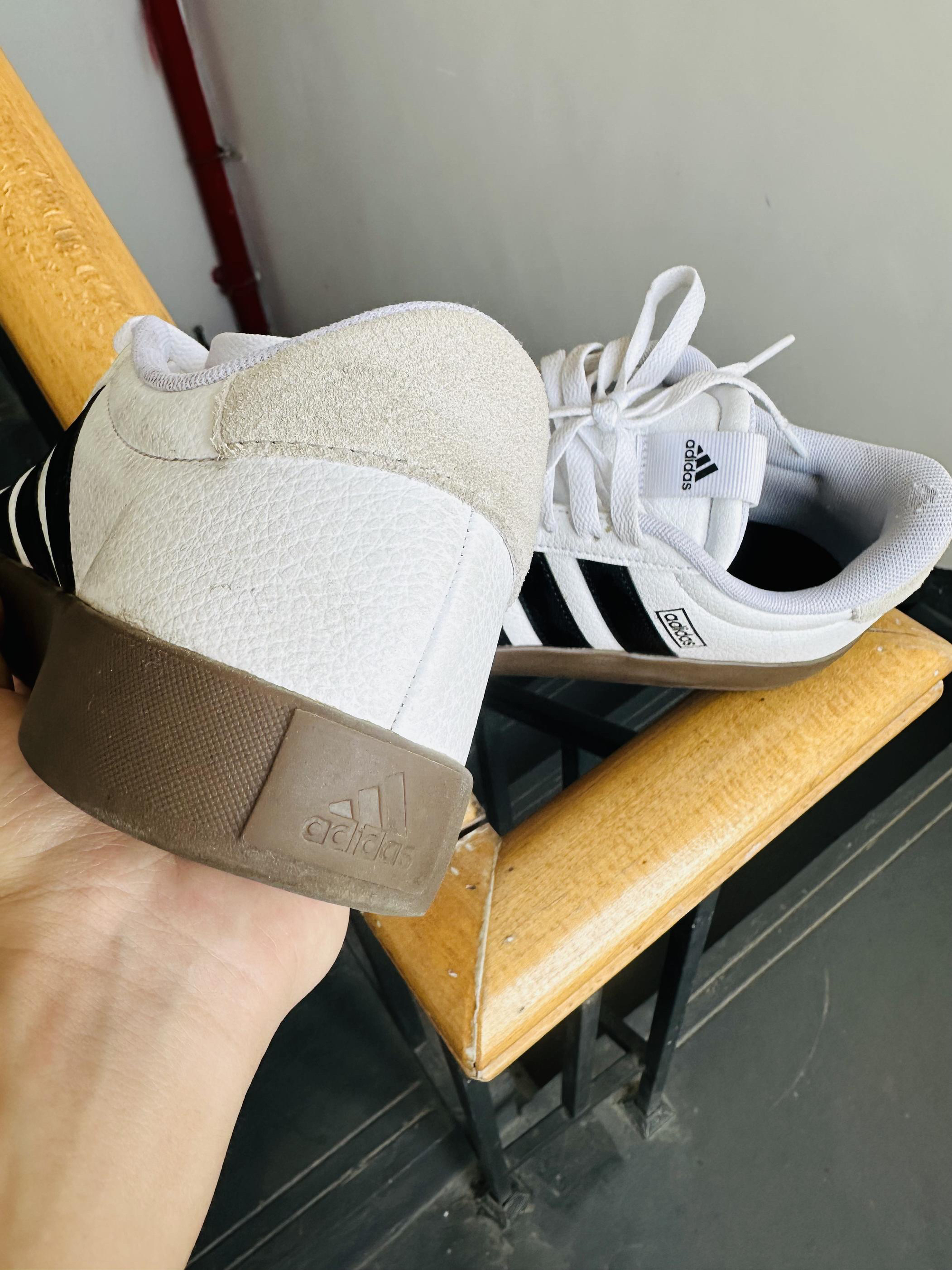 最近入手了这双 Adidas court 3.0 sneaker 颜值这方面直中我的心巴 看上第一眼就被深深吸引 鞋面使用牛皮革和麂皮材质拼接 舒适柔软上脚很舒服 缺点就是不好打理 日常穿搭也是很好搭配的