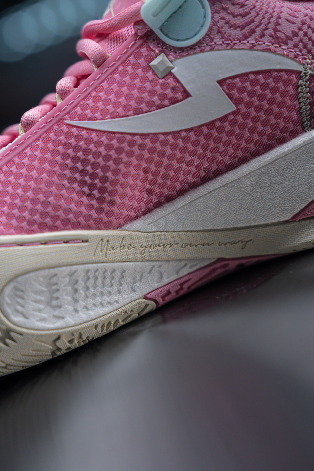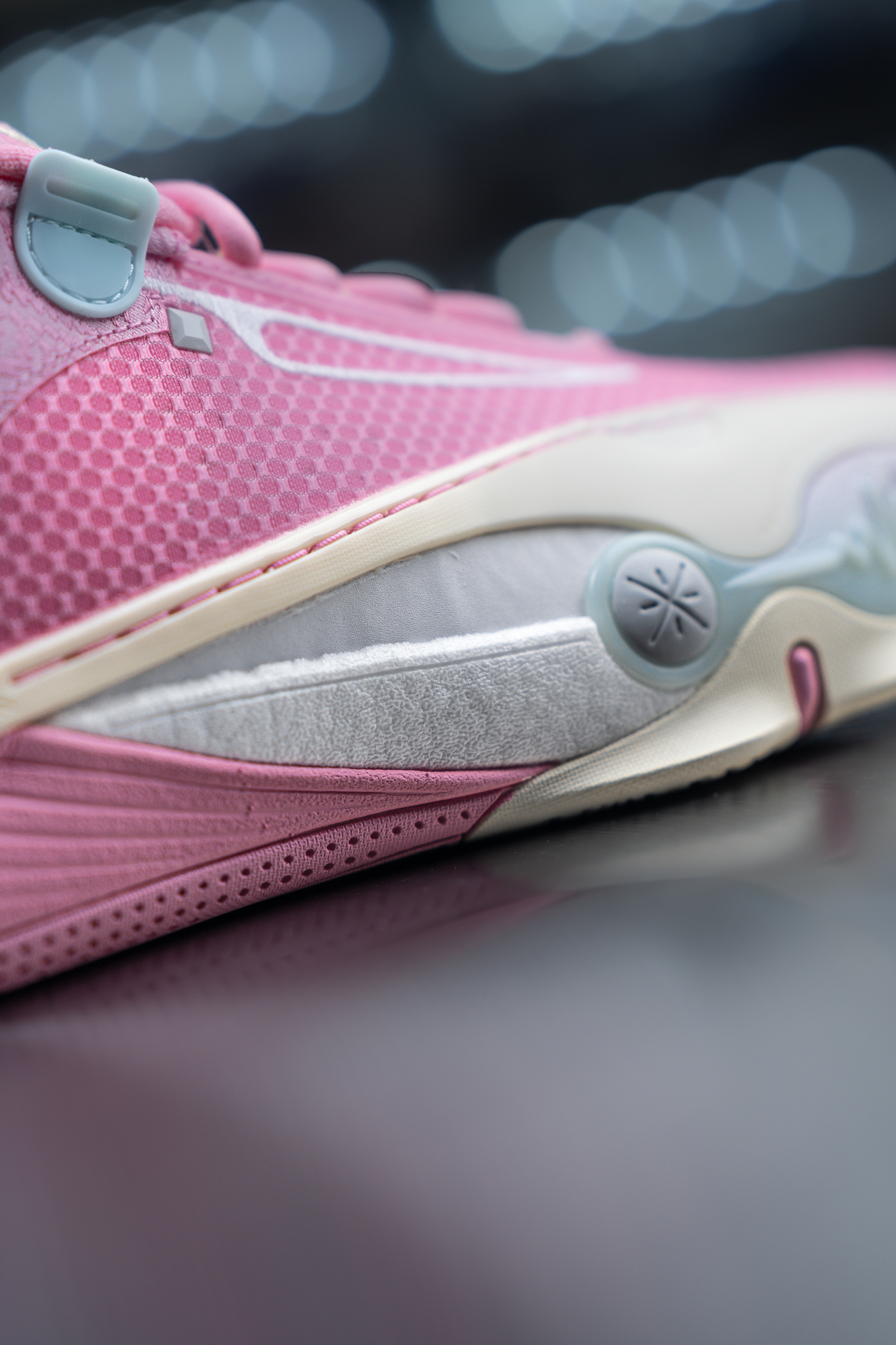 谁懂啊!这双「绽放」配色的全城14,直接把“猛男风”焊在篮球鞋上了!🎀 粉白渐变的鞋面像把春日樱花穿在脚上,实战的时候感觉自己在球场跳芭蕾,猛男看了都得夸一句“真香”!✨ • 脚感:全掌䨻+超䨻的组合,软弹恰到好处,启动不拖沓,落地稳得一批。 • 锁定:前掌内外侧的包裹设计太顶了,欧洲步、后撤步都能牢牢锁住,木地板抓地直接拉满。 • 小缺点:轻微内扣可以换个鞋垫解决,完全不影响它成为今...