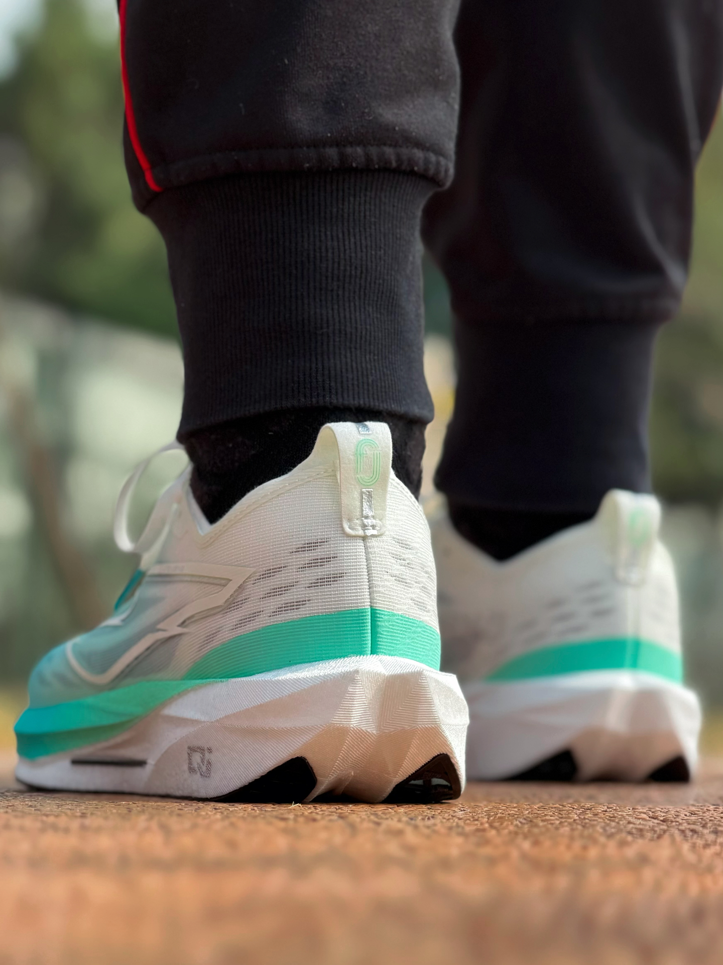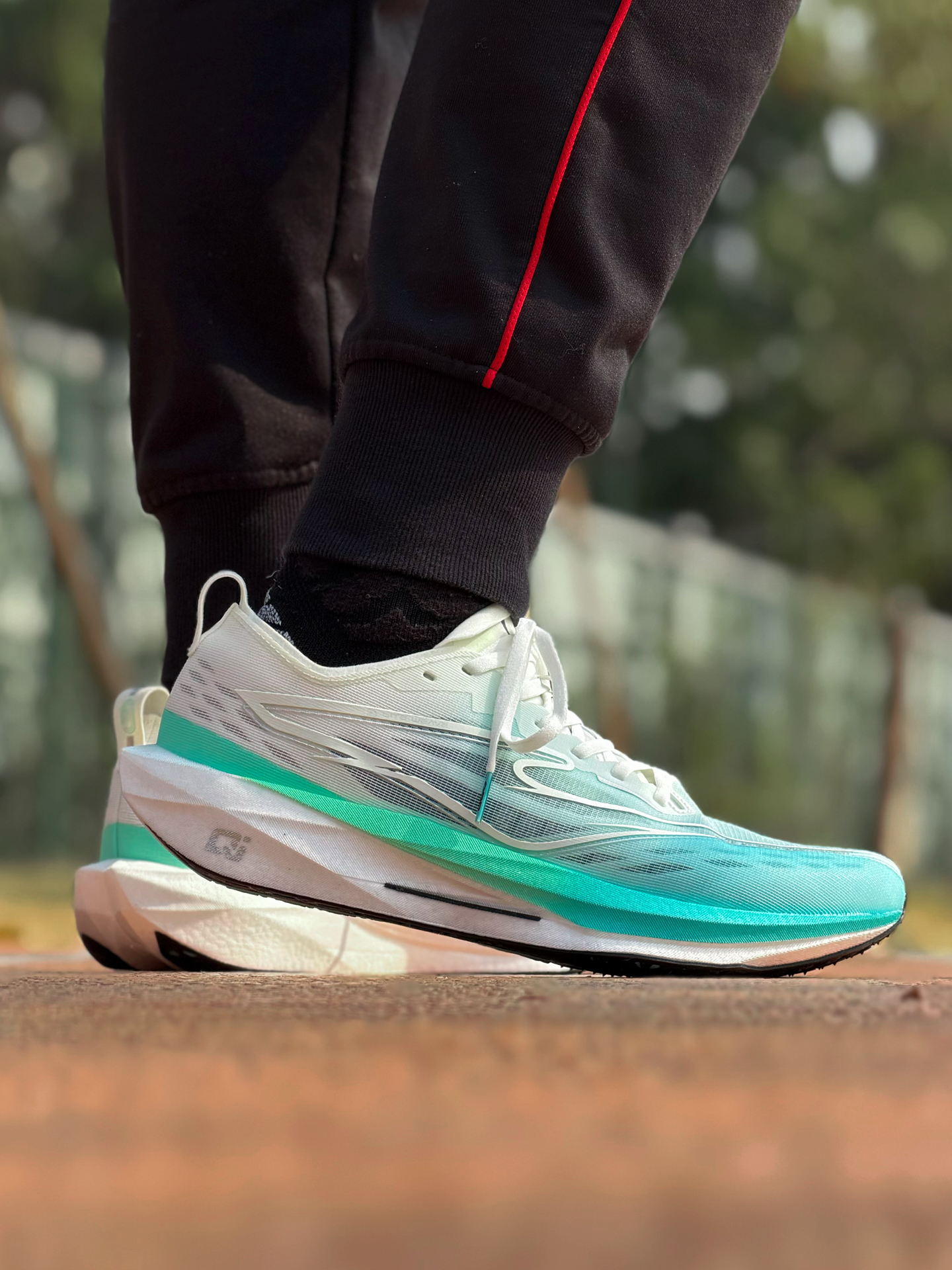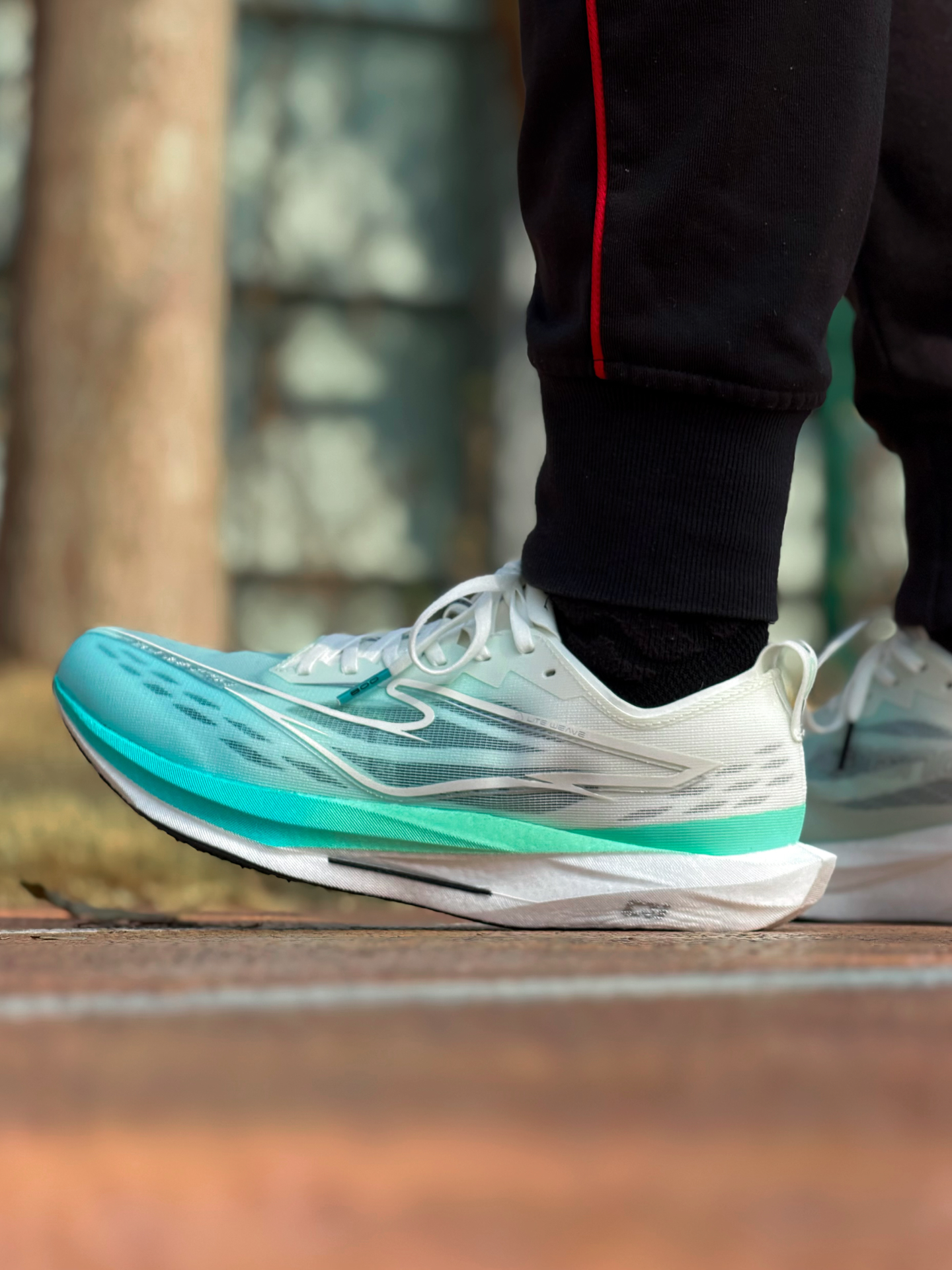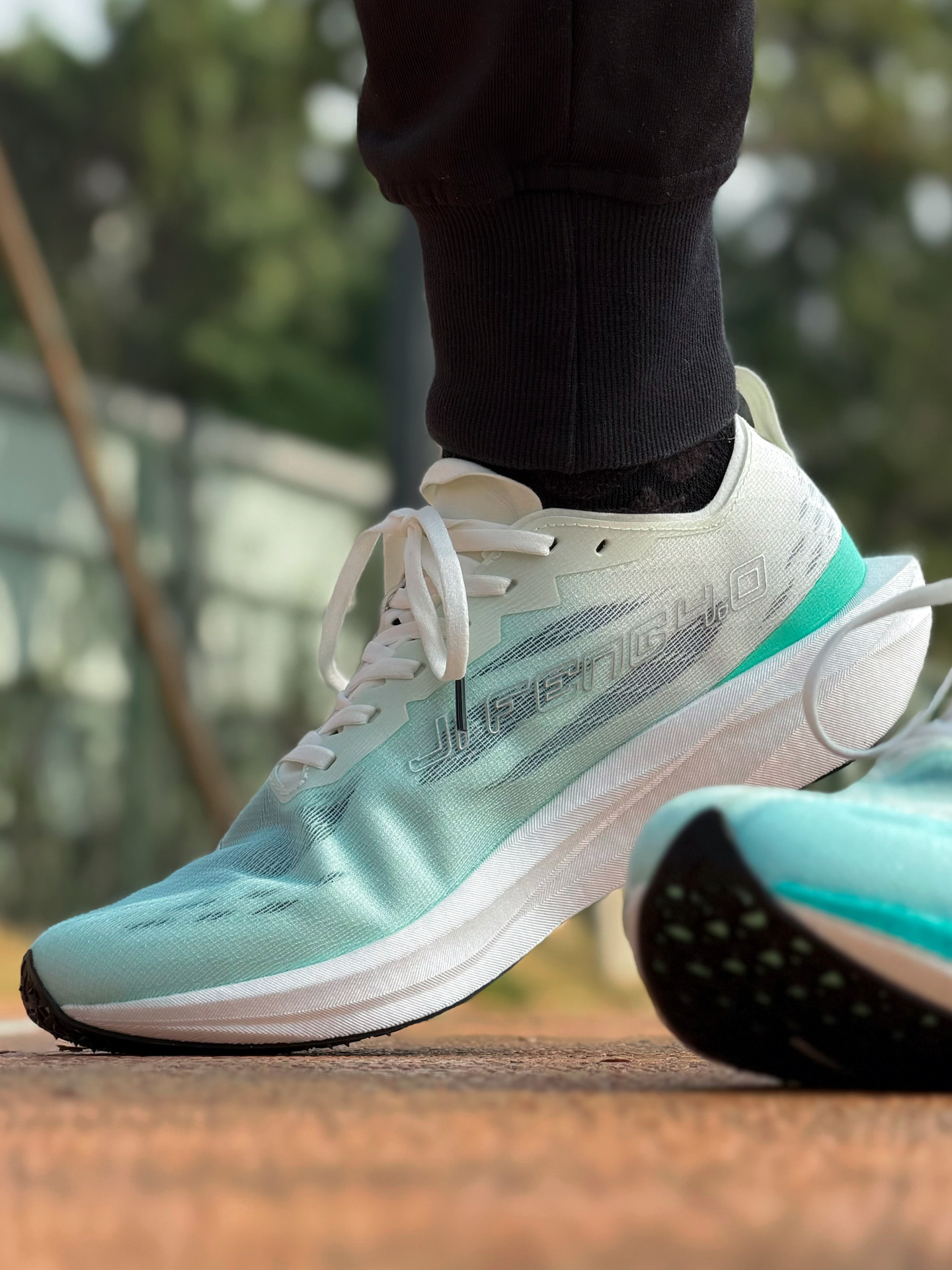 体考体测不让穿钉鞋 对于学生党来说本是一个坏消息 但好在有不少厂商 应对出了无钉跑鞋 今天出门来测试 鸿星尔克这双新出的极风4 依旧延续上一代 修长扁平薄底的场地竞训鞋造型 首发配色颇为清爽 中底切割线条立体感很不错 鞋面韧性强度不错 弯折舒适不卡脚 楦型偏瘦贴合包裹更好 但正码穿是刚刚好 中底炁科技虽然是薄底 但回弹出色 内置的玻纤版刚性不强 有推进力 更多起到抗扭支撑的作用 而最重要的 是底下...