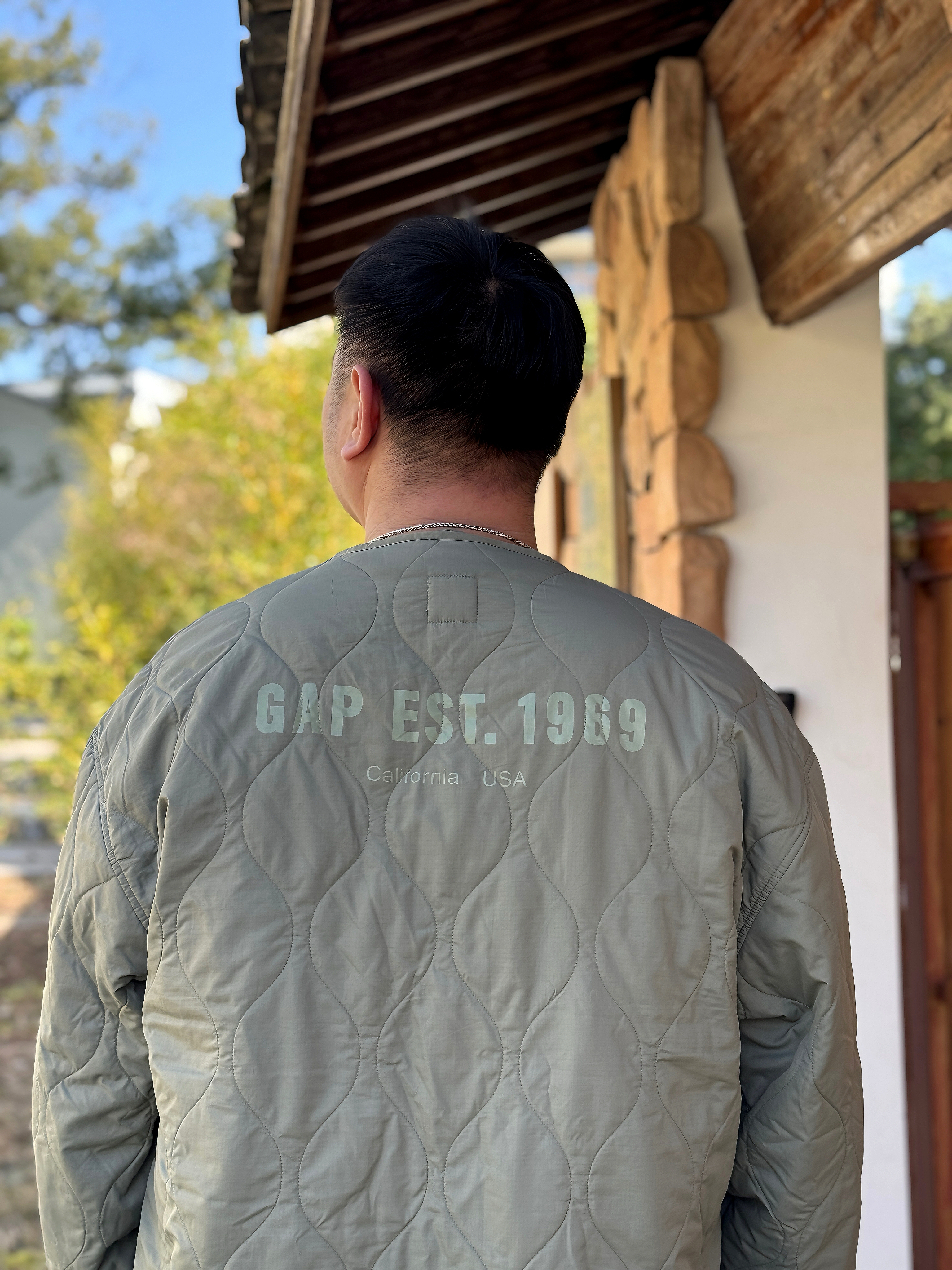 这件GAP棉服的复古质感真的太绝了!后背的”EST.1969”印花把美式复古氛围拉满,菱格绗缝设计既有层次感又显瘦,灰绿色调高级又百搭,完全是秋冬穿搭的氛围感神器~ 宽松无领的版型平时打球前热身穿也是刚刚好。 身高187,体重240➕ 这款买的3XL