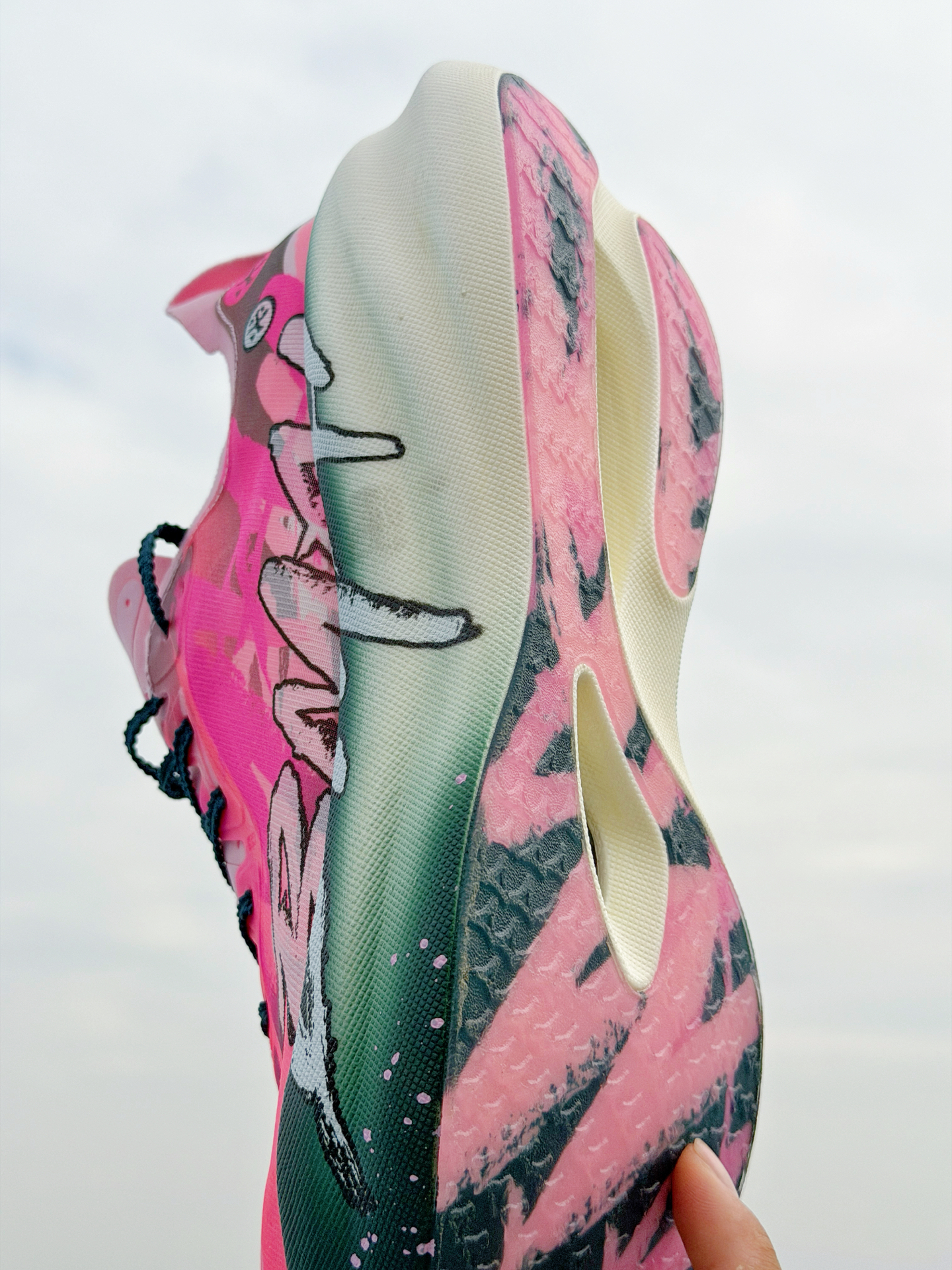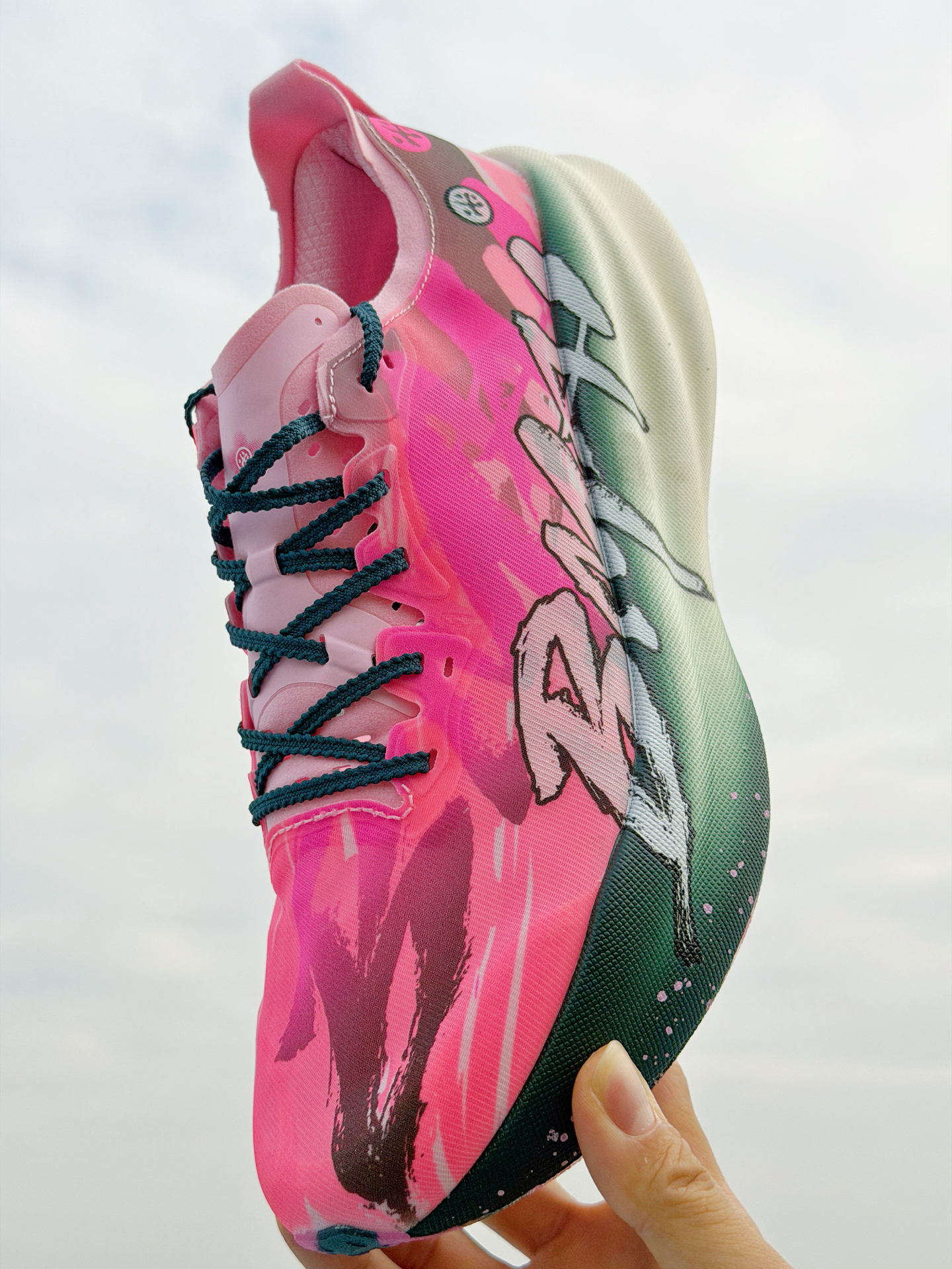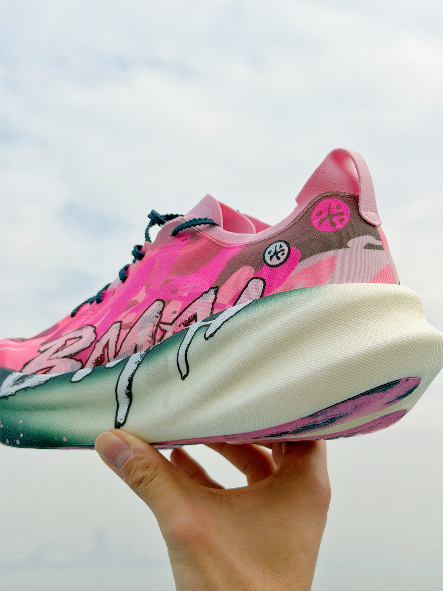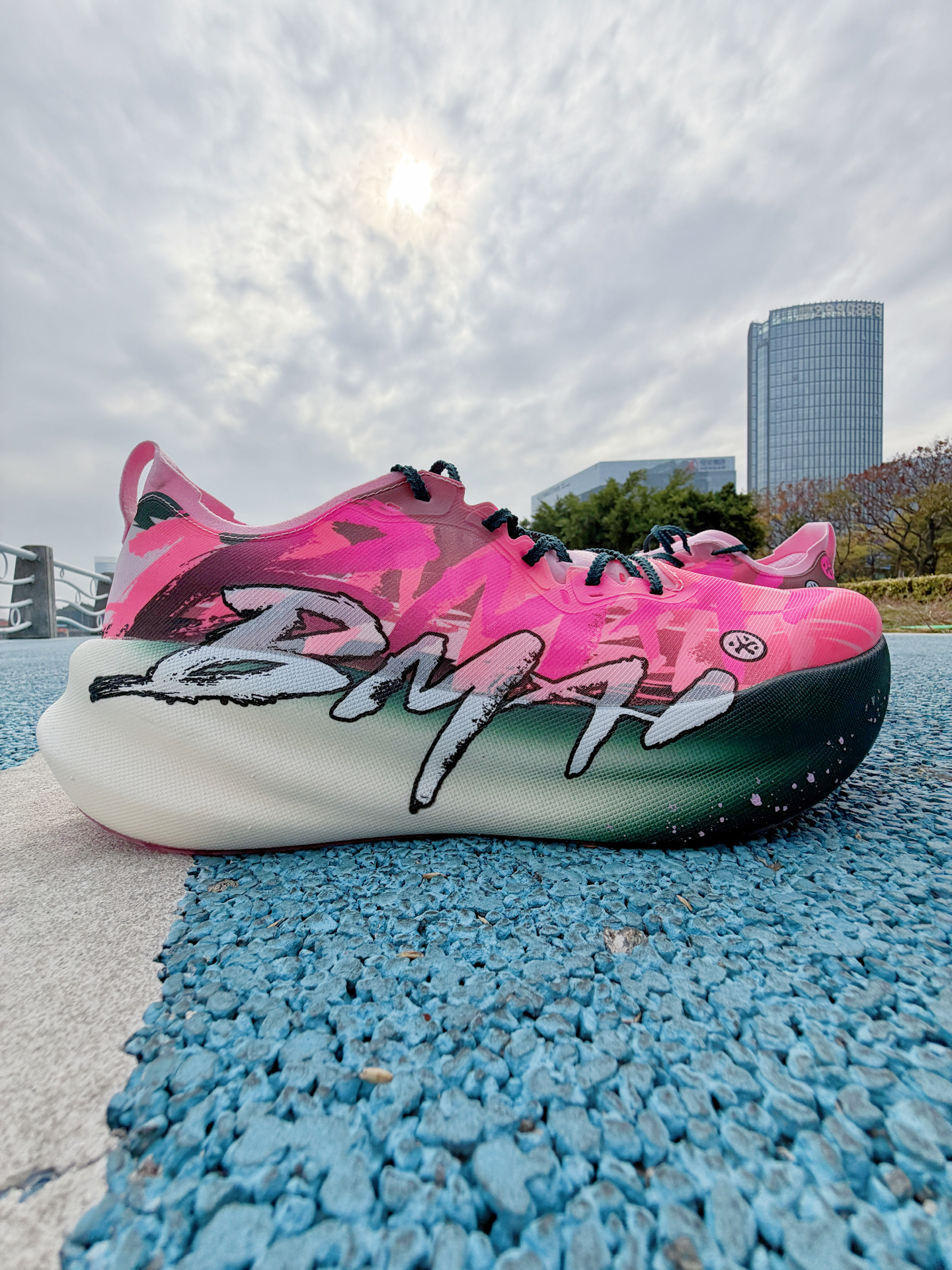 #跑鞋新品速报 BMAI必迈 惊碳3.0 Turbo桃夭粉 粉色色配的绿色的用生机盎然配色 加上粗旷且具有一点震慑力的英文logo 还是非常吸精
