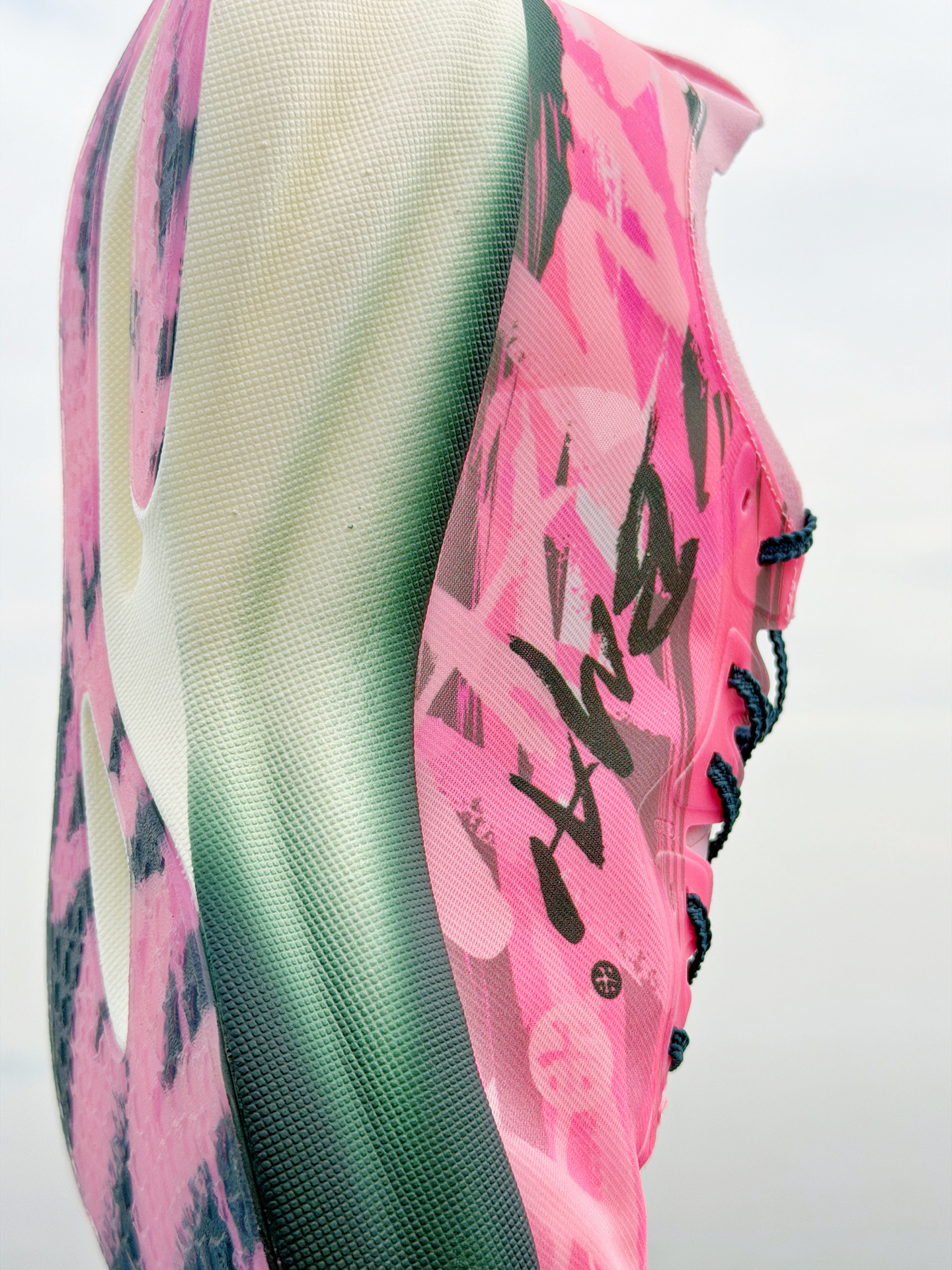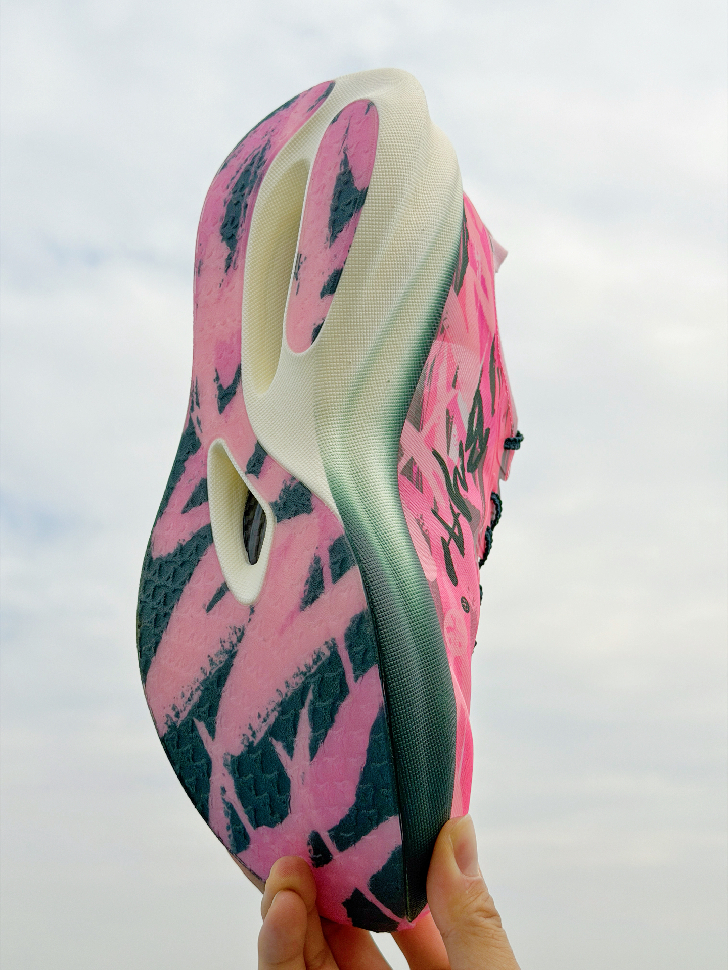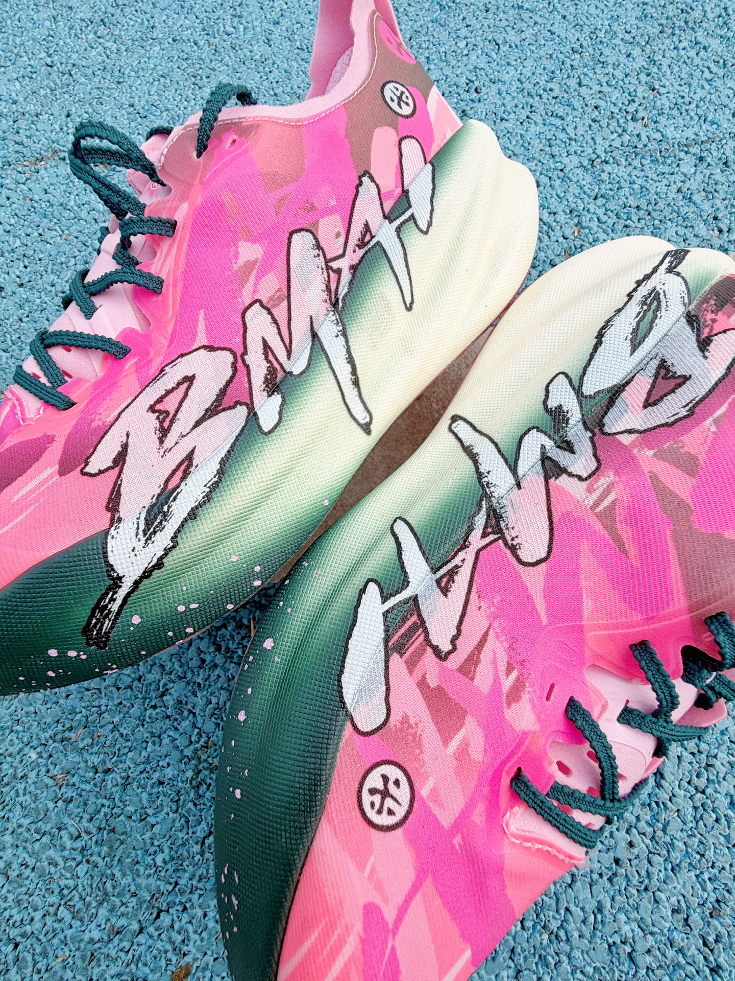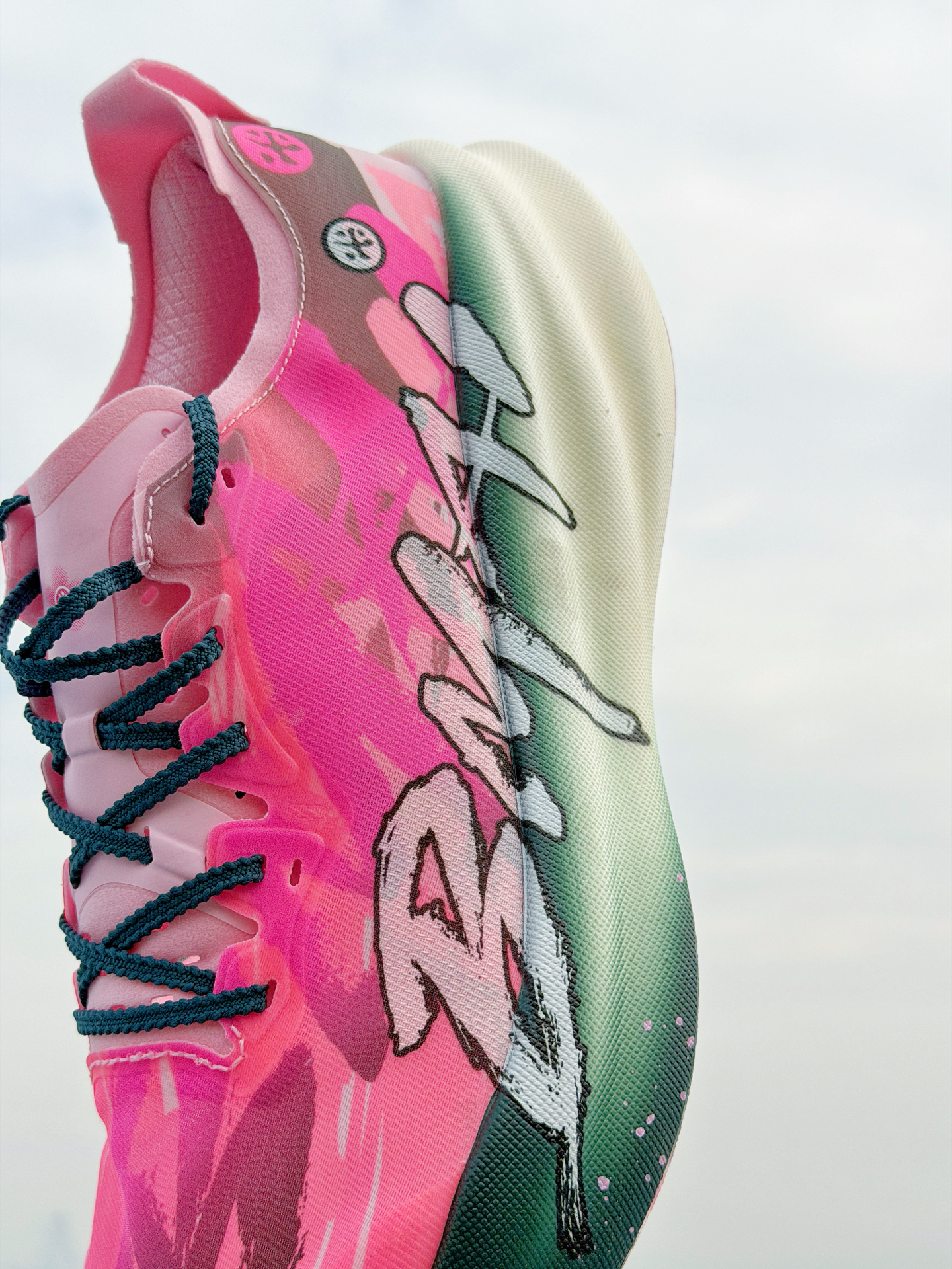 #跑鞋新品速报 BMAI必迈 惊碳3.0 Turbo桃夭粉 粉色色配的绿色的用生机盎然配色 加上粗旷且具有一点震慑力的英文logo 还是非常吸精