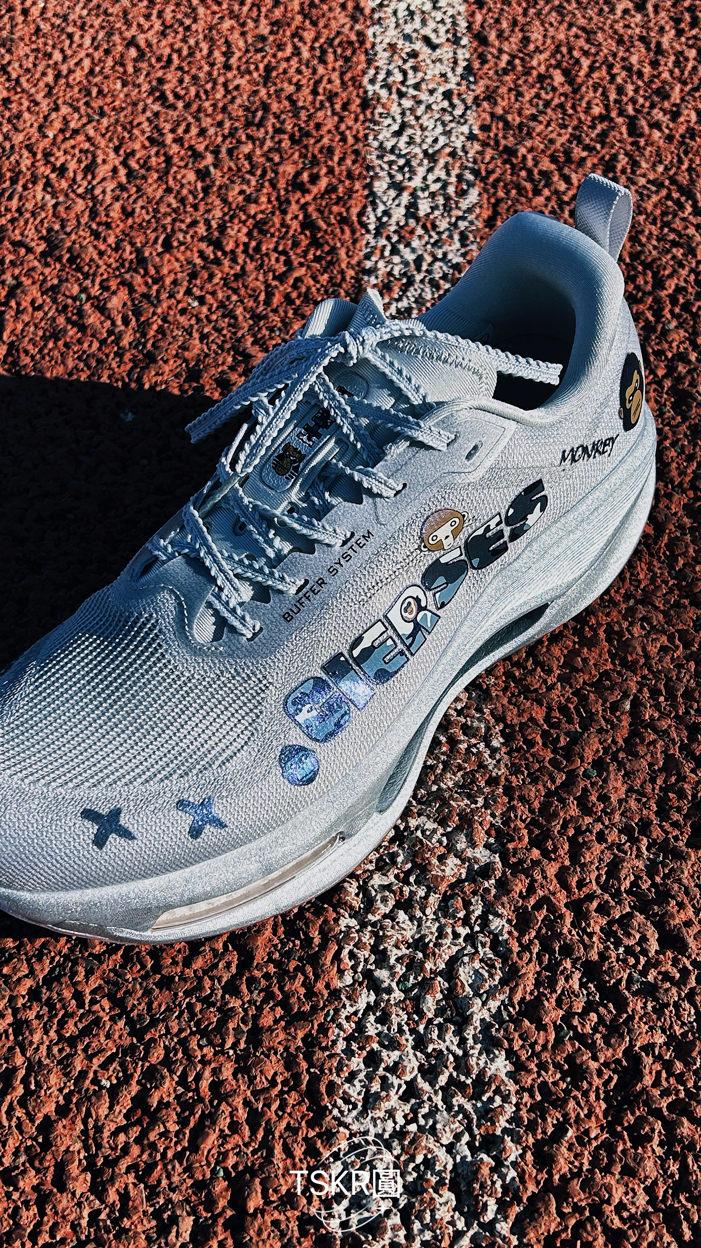 凯瑟氏马年CNY惊喜联名,一改往日跑鞋°纯色调的空白,这双猴界士运用异型V900碳板,双氮气气垫双密度,我想这次终极目标:为跑者的脚感而生吧! 首次银色系为主色调,与红色跑道的的每一次贴合,都觉得是朴素纯粹的,与镂空中底的V900 碳板组成的流线形,每一处联名的加持动漫,都是宣誓着这双鞋的不简单。 这次跑步蹬地,鞋面的梭织贾卡鞋面,对于脚部的包裹,抗撕裂能力提升不少,透气的同时稳定性一点不减; 跑...