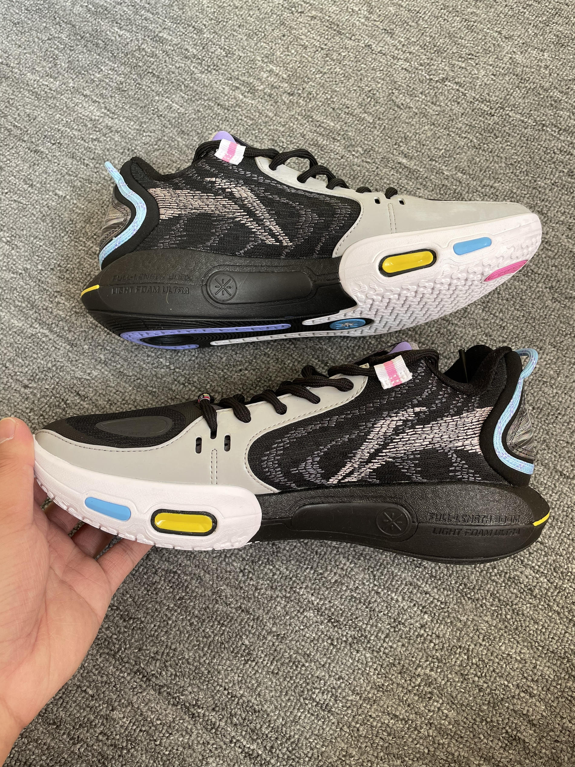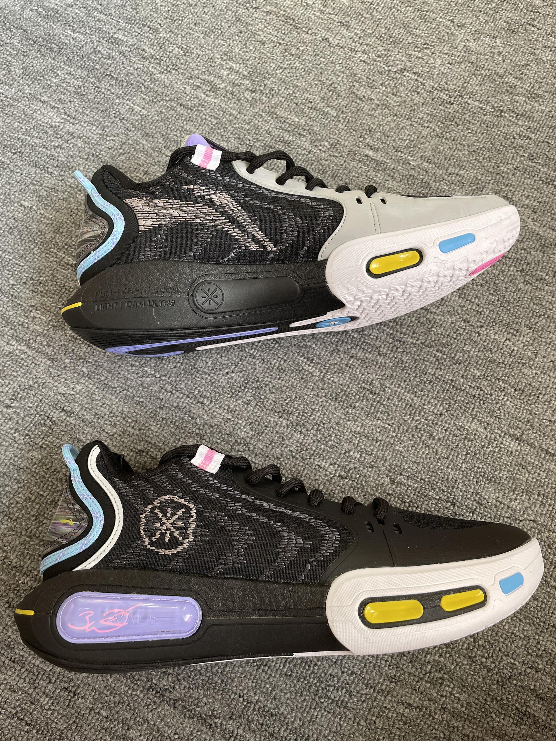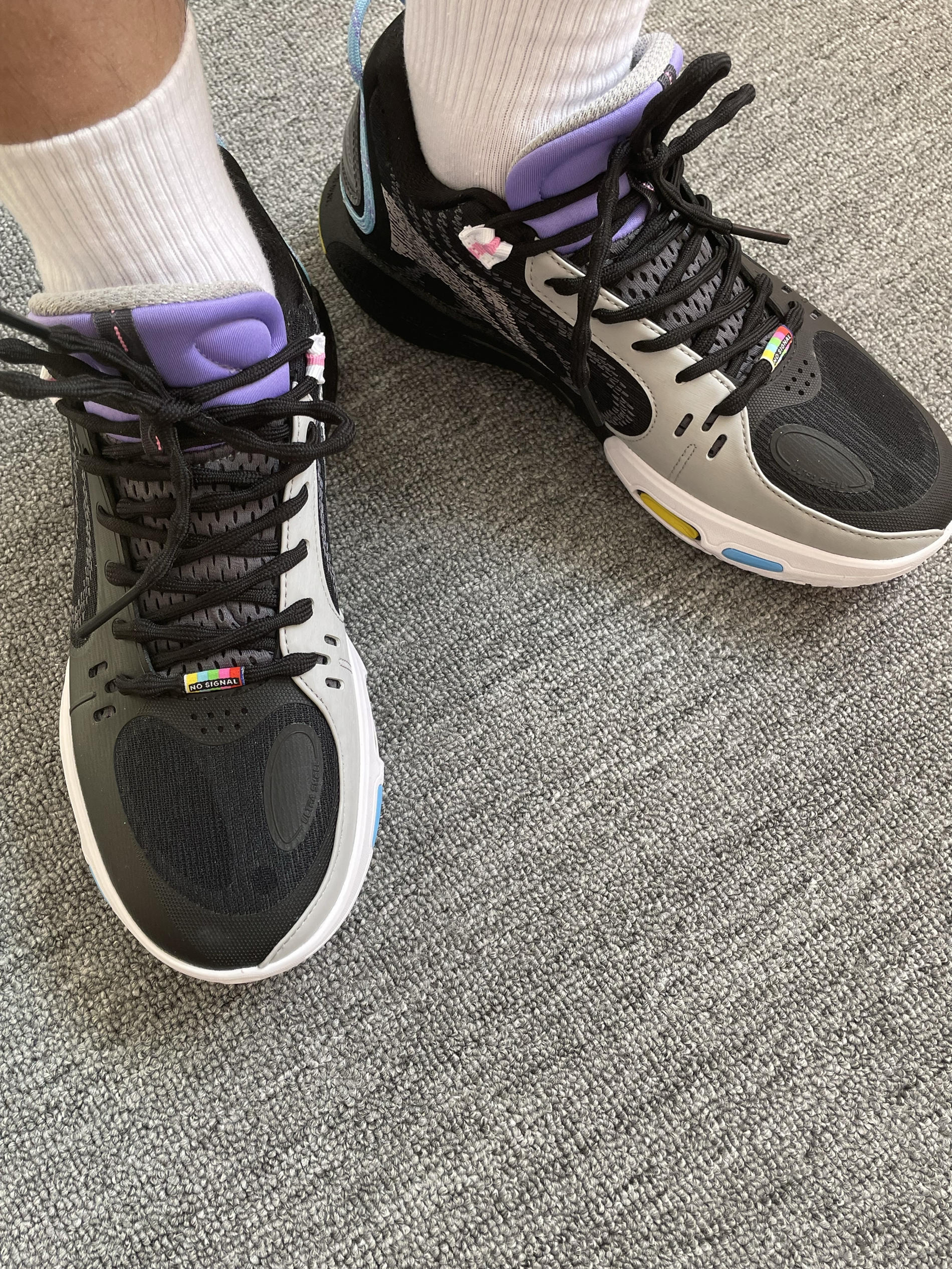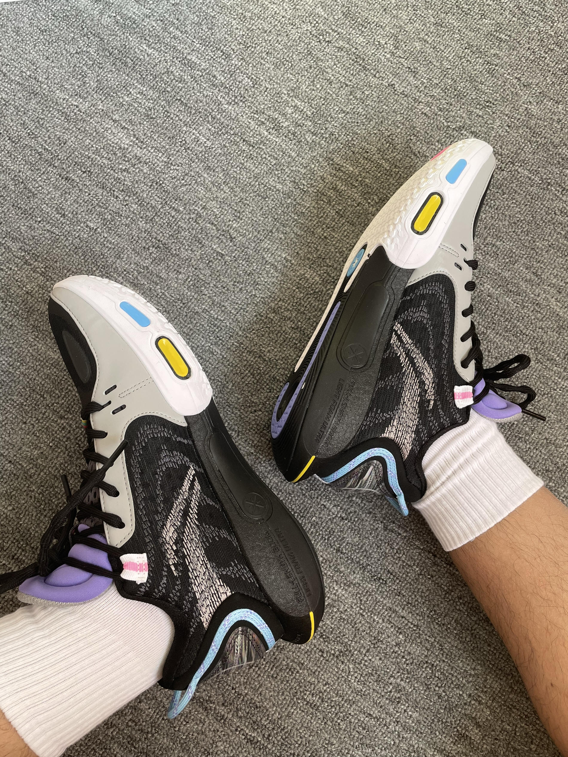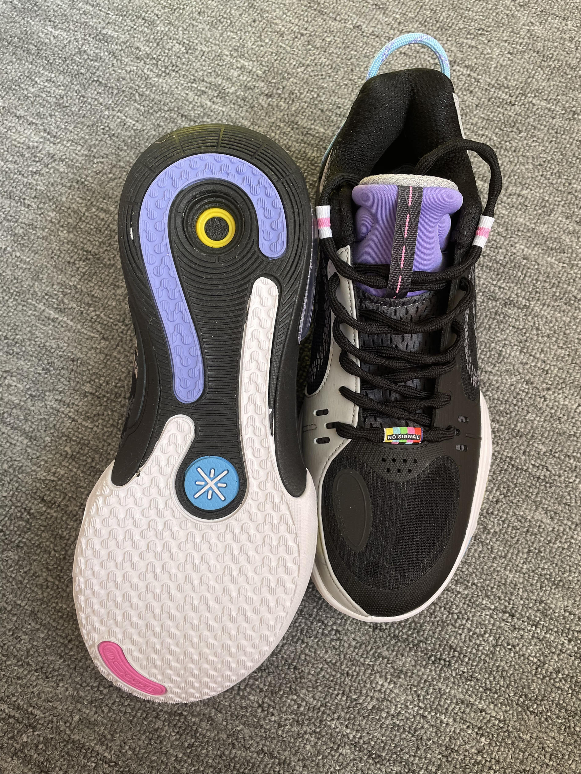 如果说白色款是清冷,那么这双“无眠”黑灰配色简直把实战鞋的细节美学发挥到了极致。最令人心动的是它那抹紫色的鞋舌,在深邃的底色中跳脱出来,配合鞋身多色彩的点缀,上脚瞬间的情绪价值直接拉满。👟紫色与黑灰的碰撞,让整双鞋在硬核实战之余,多了一份潮流的层次感。最惊喜的是脚后跟的反射设计,在球场灯光下忽隐忽现,路过镜子都忍不住想多看两眼,视觉冲击力极强。✨🌙 性能表现上一如既往地稳健,低帮设计赋予了脚踝极高...