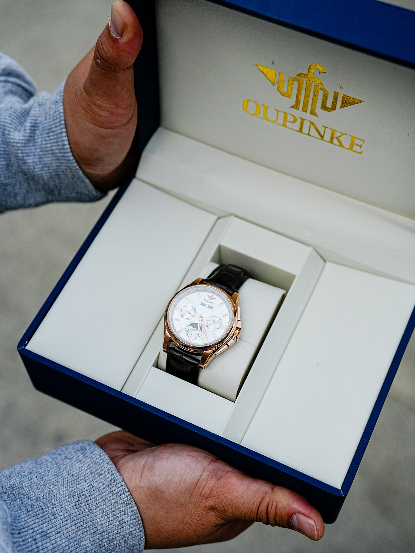 本篇笔记关联了OUPINKE/欧品客 时尚多功能双日历夜光机械男士腕表 P-G3189-MH 【礼盒装】玫白棕皮带 等商品,为用户提供真实的使用体验和购买参考。
