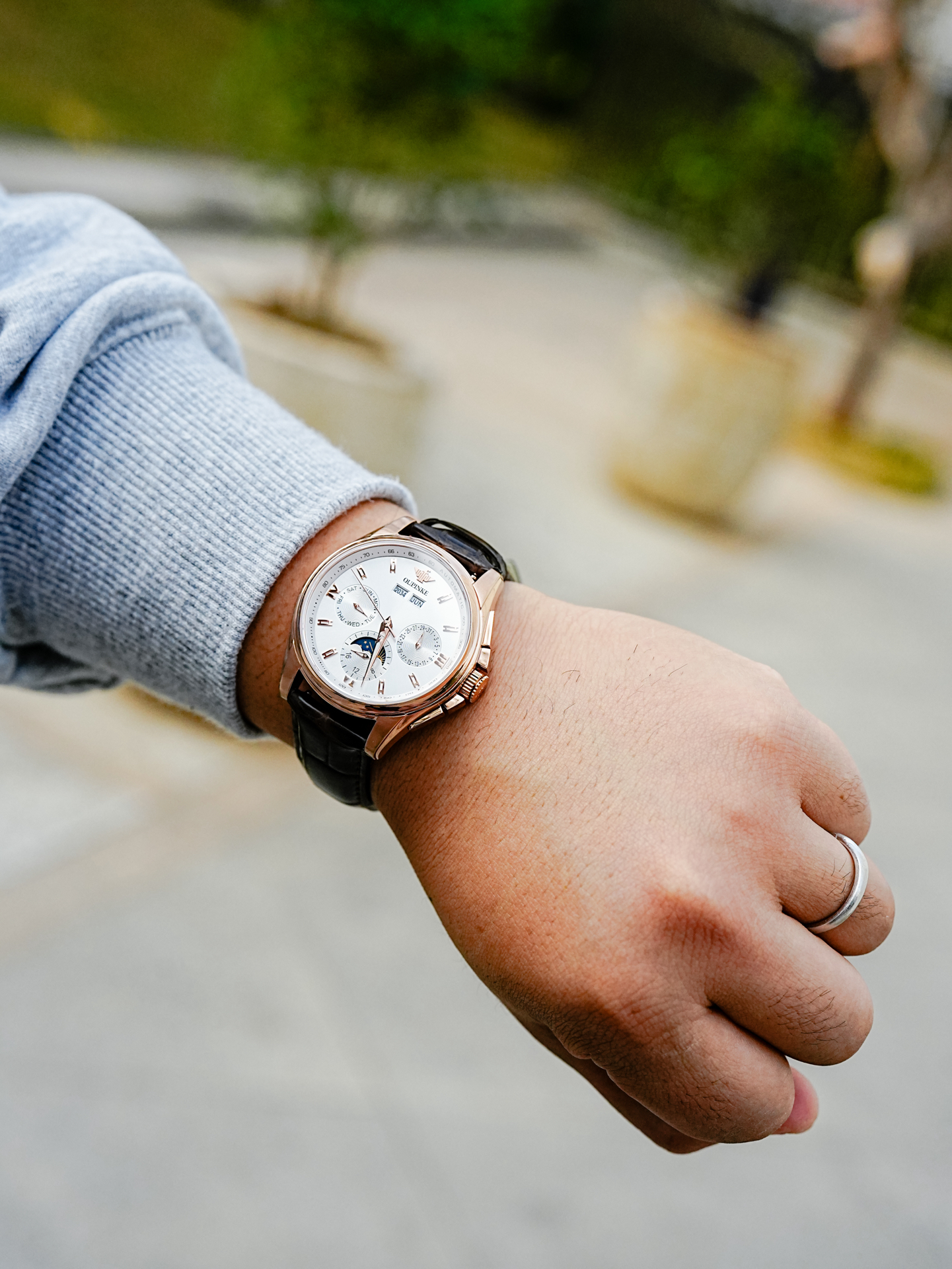 手表⌚️真的是男生出门 最简单但又最重要的配饰了 今天佩戴的是这个 #欧品客 柏拉蒙特系列的腕表 我自己挺喜欢这种高质感皮表带 佩戴舒服也好看 表盘可以看到内部飞轮 看起来挺相当精致 如果像我一样穿得比较简约 正好需要一个这样有辨识度的手表 马上就要农历新历了 可以给自己安排一个新手表了 #男生手表推荐 #约会配饰的穿搭法则 #时间尽头说爱你 #人生的第一块手表 #配饰的尽头是长期主义