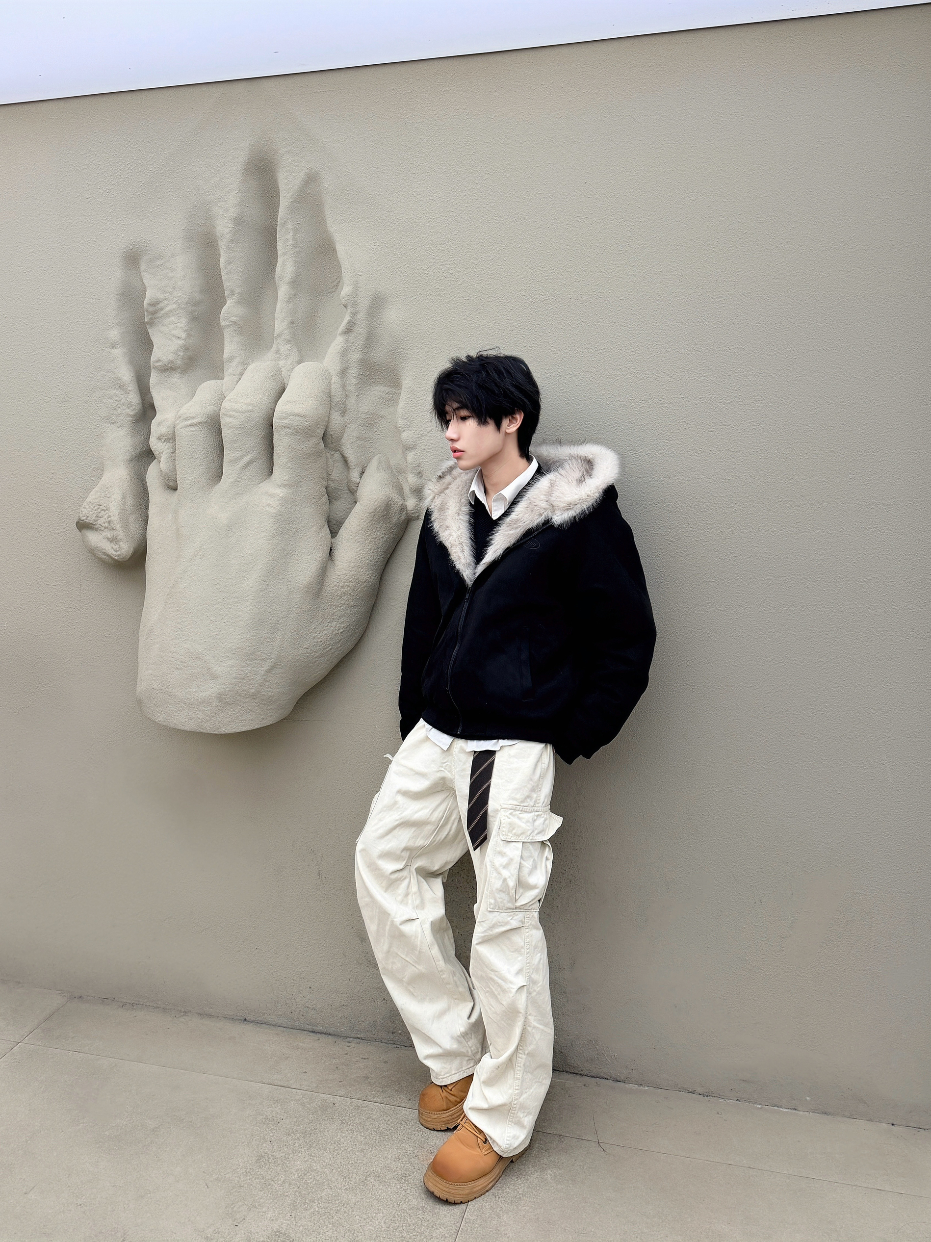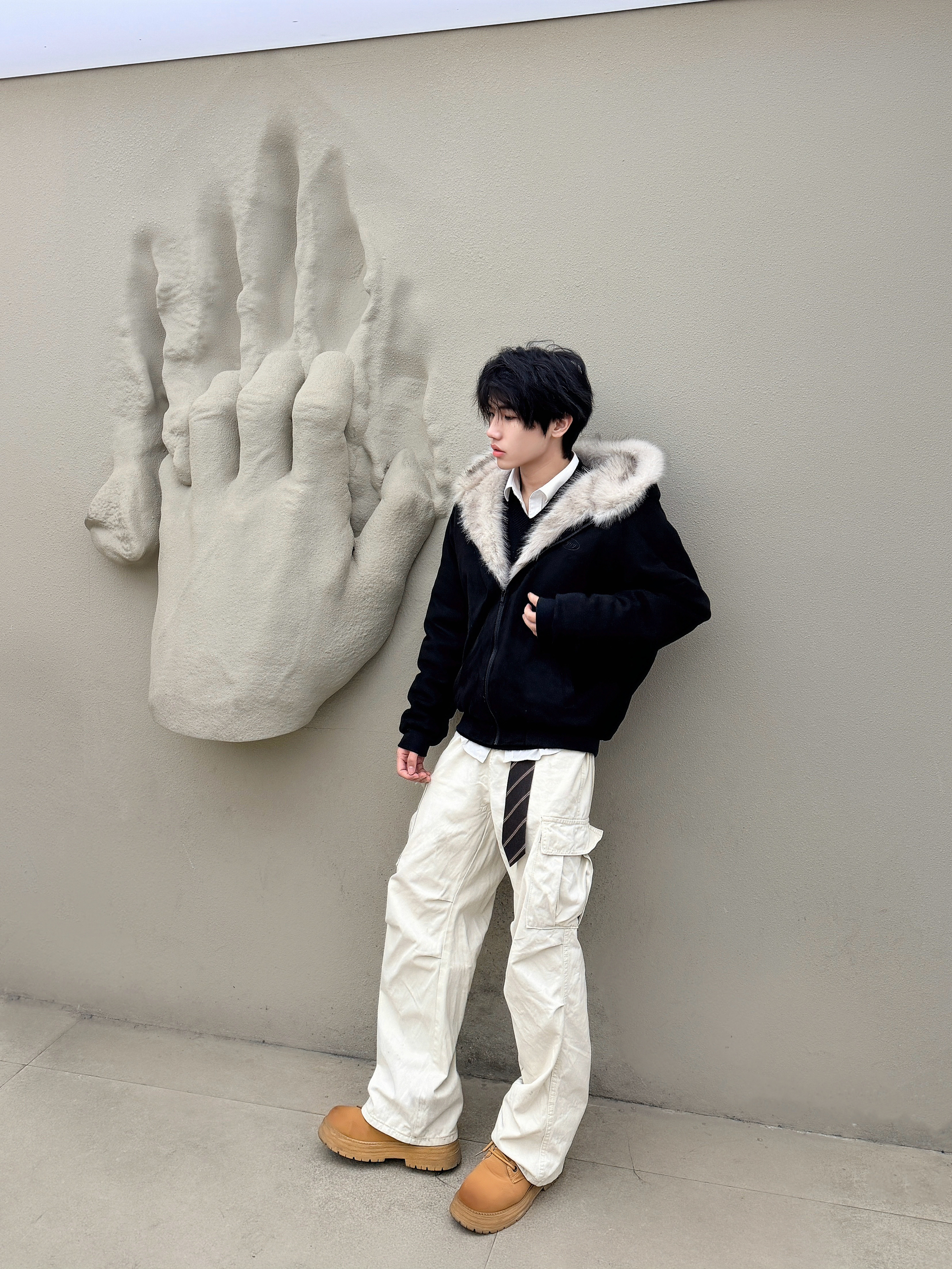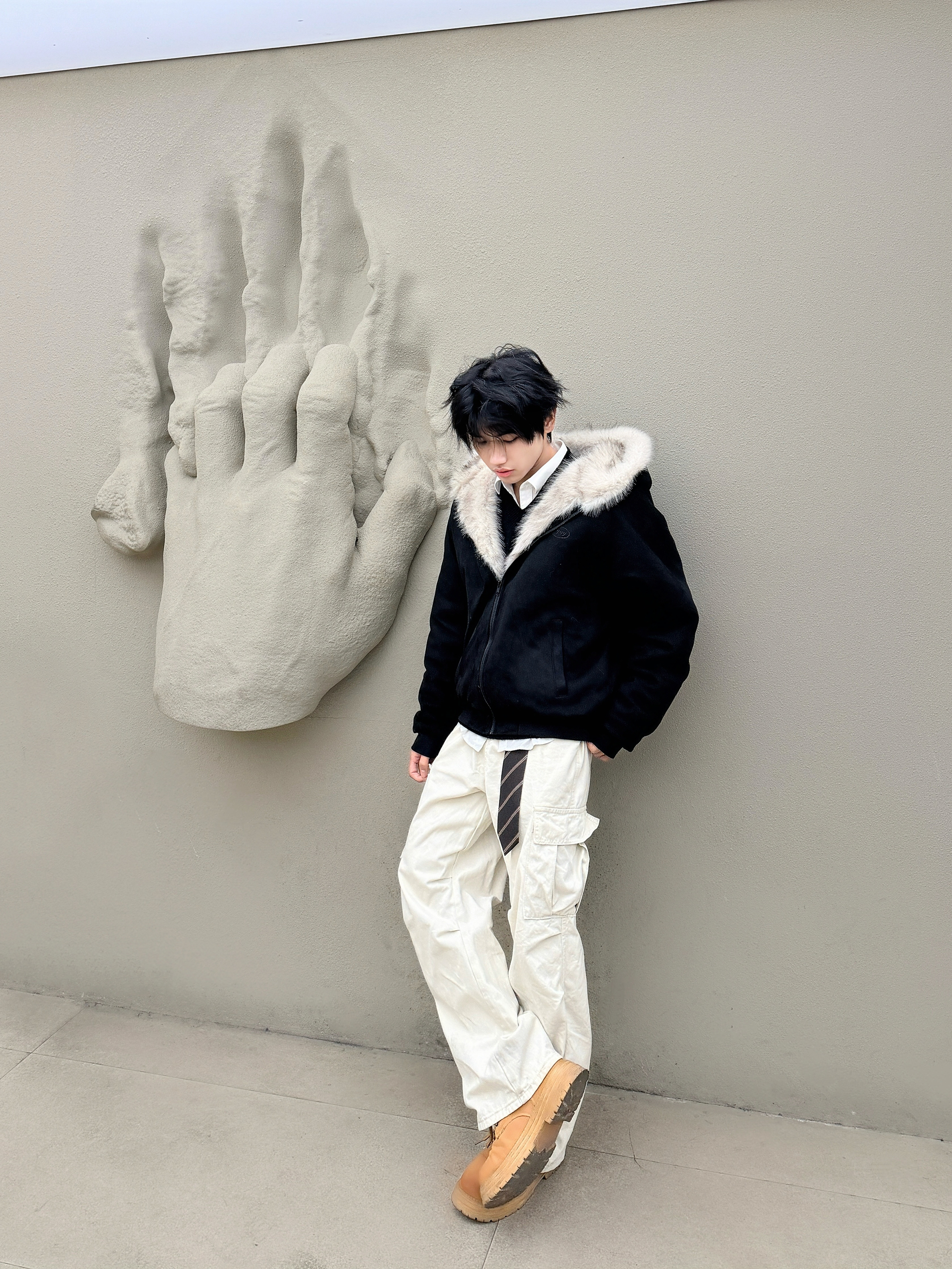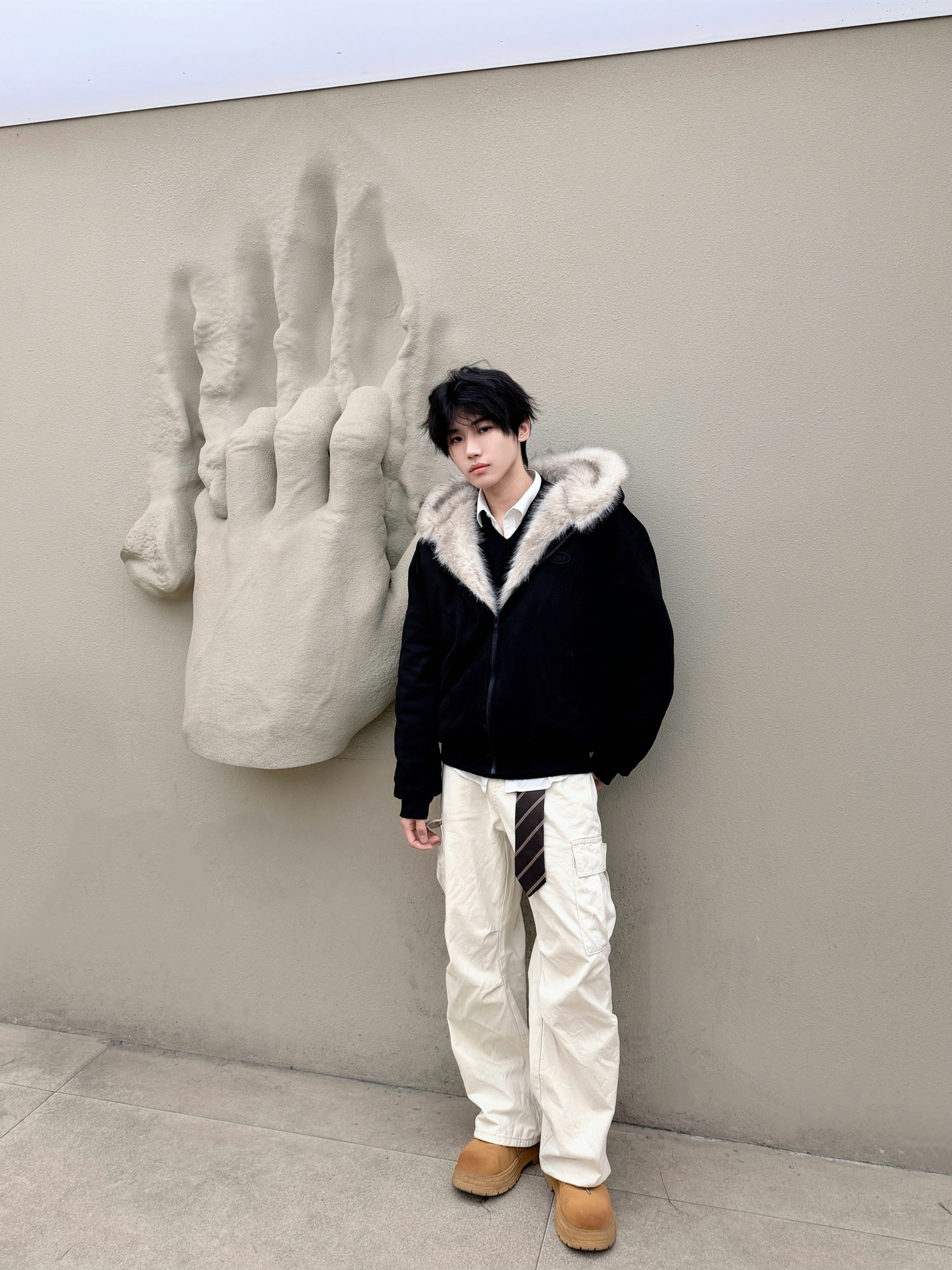 街头饱黑与白的碰撞 才是冬日酷感的硬通货 用毛领黑外套的厚重感压得住整体调性 内搭白衬衫叠针织衫的层次感 把学院风的细腻揉进街头潮范里 搭配米白工装裤的宽松廓形中和上半身的厚重 侧边领带装饰打破单调 焦糖色厚底鞋收尾✨ 让黑白主调多了点暖调质感 酷感里藏着不刻意的细节巧思 冬日街头的松弛潮感就这么拿捏👁️🗨️