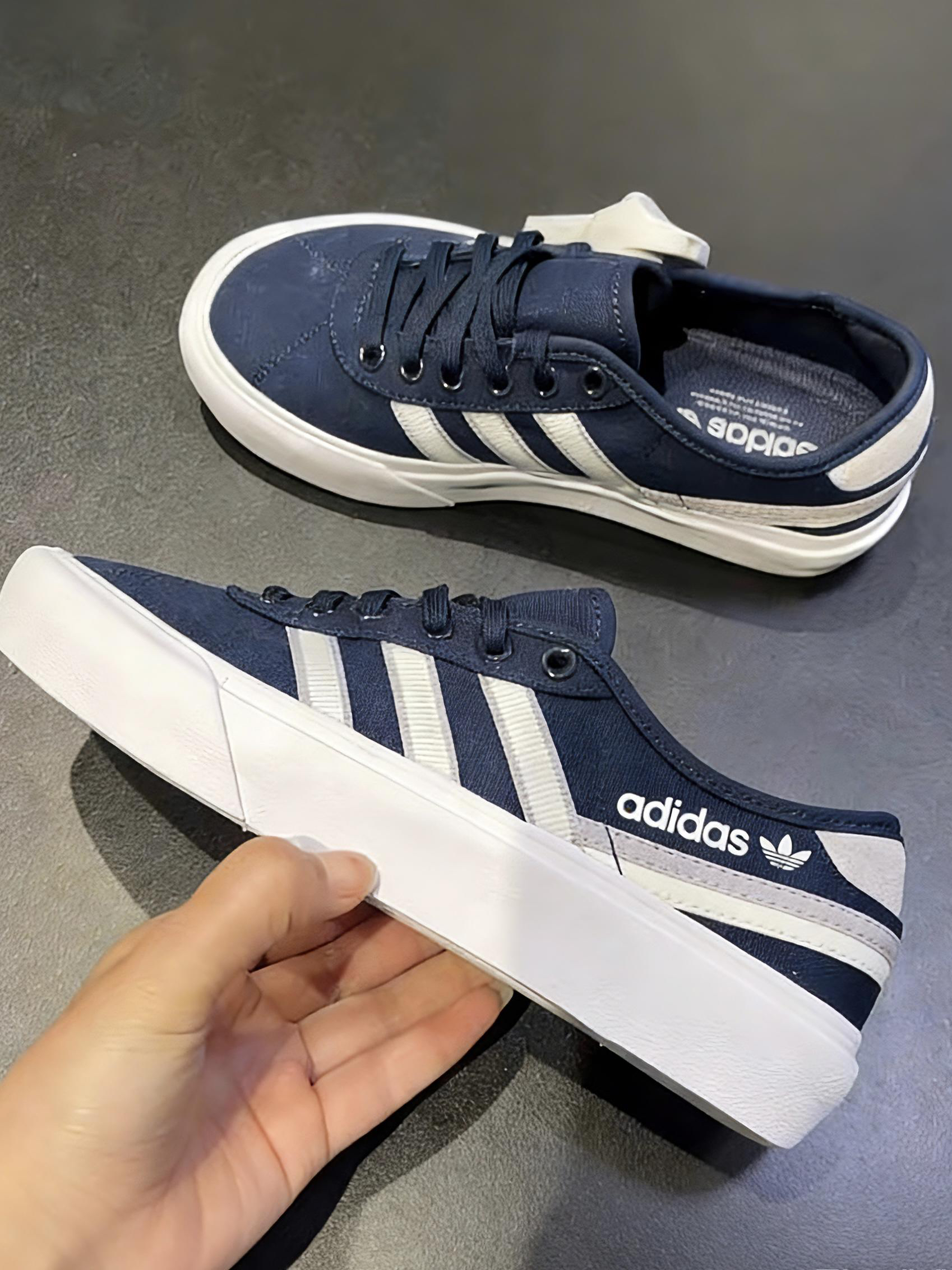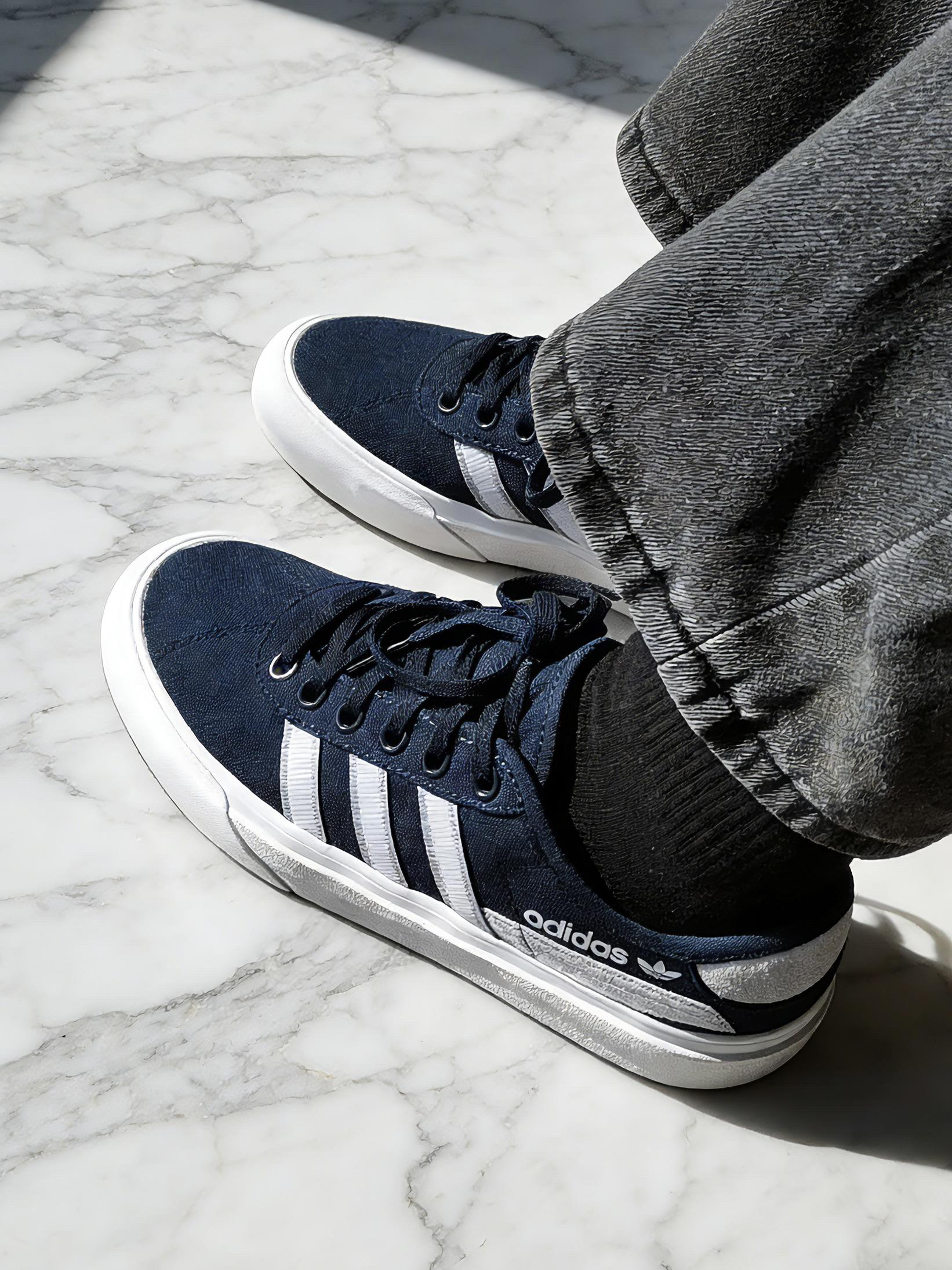 每到换季,望着满柜子的衣服鞋子却觉得“没鞋穿”——秋冬靴子太厚重,春夏鞋款又太单薄。直到我偶然穿上这双蓝白配色的adidas Delpala帆布鞋,发现它竟然完美衔接了我的春秋衣橱。 我的真实体验是: 1. 优点:帆布质感适中,不会过薄而显廉价,也不会过厚而闷热,春秋季穿正合适。蓝白配色极为清爽,能瞬间提亮深色系的风衣或卫衣,打破沉闷。脚感轻盈舒适,鞋底软硬适中,无论是搭配稍厚的长袜应对微凉天...
