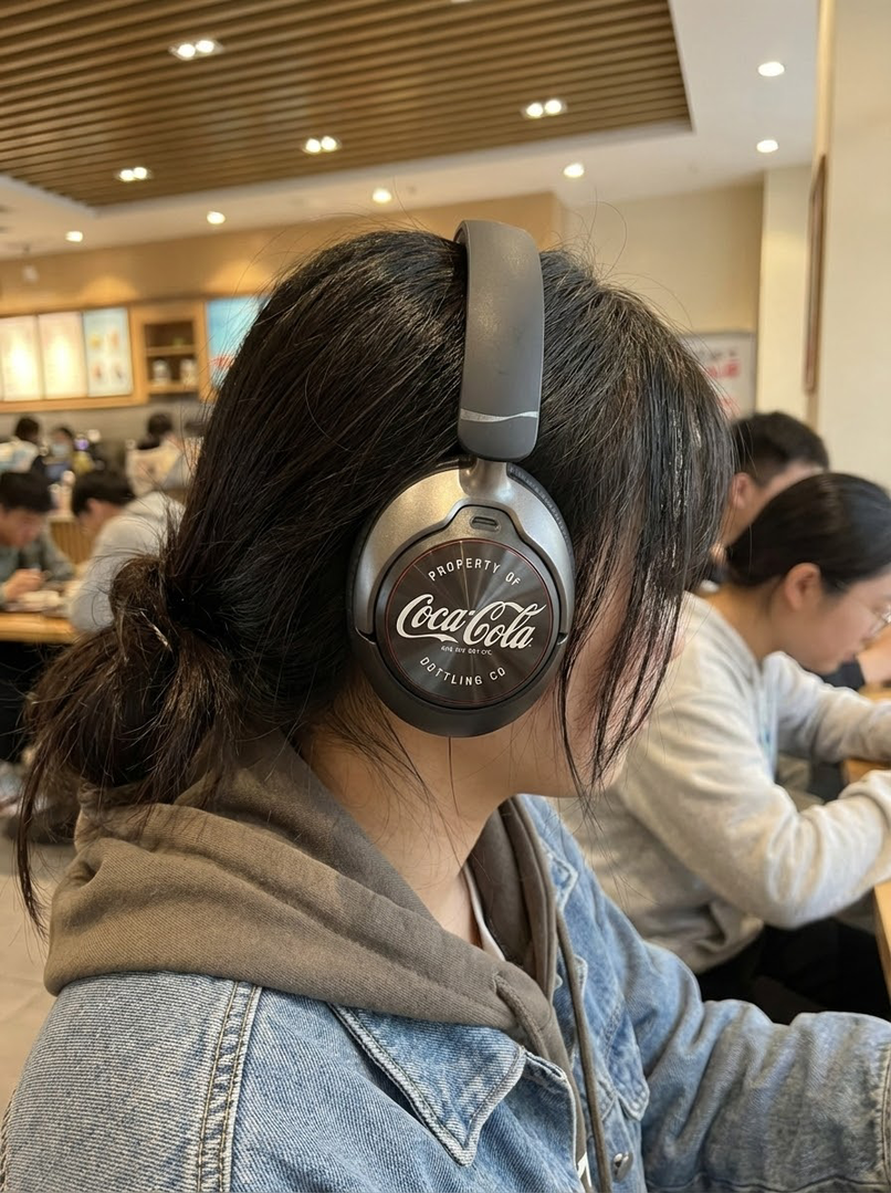 如果不是亲自试戴,我真没想到一款2开的可乐联名款头戴耳机能成为我日常穿搭的‘定调单品’ 不得不说这个黑色无糖可乐头戴真的很帅,我承认最初是被可口可乐的Logo吸引,谁叫我是可乐控 穿搭适配性很高,复古运动风真是万能搭,黑灰配色几乎不挑服装风格 但要注意:哑光面易沾指纹,需定期擦拭保持质感