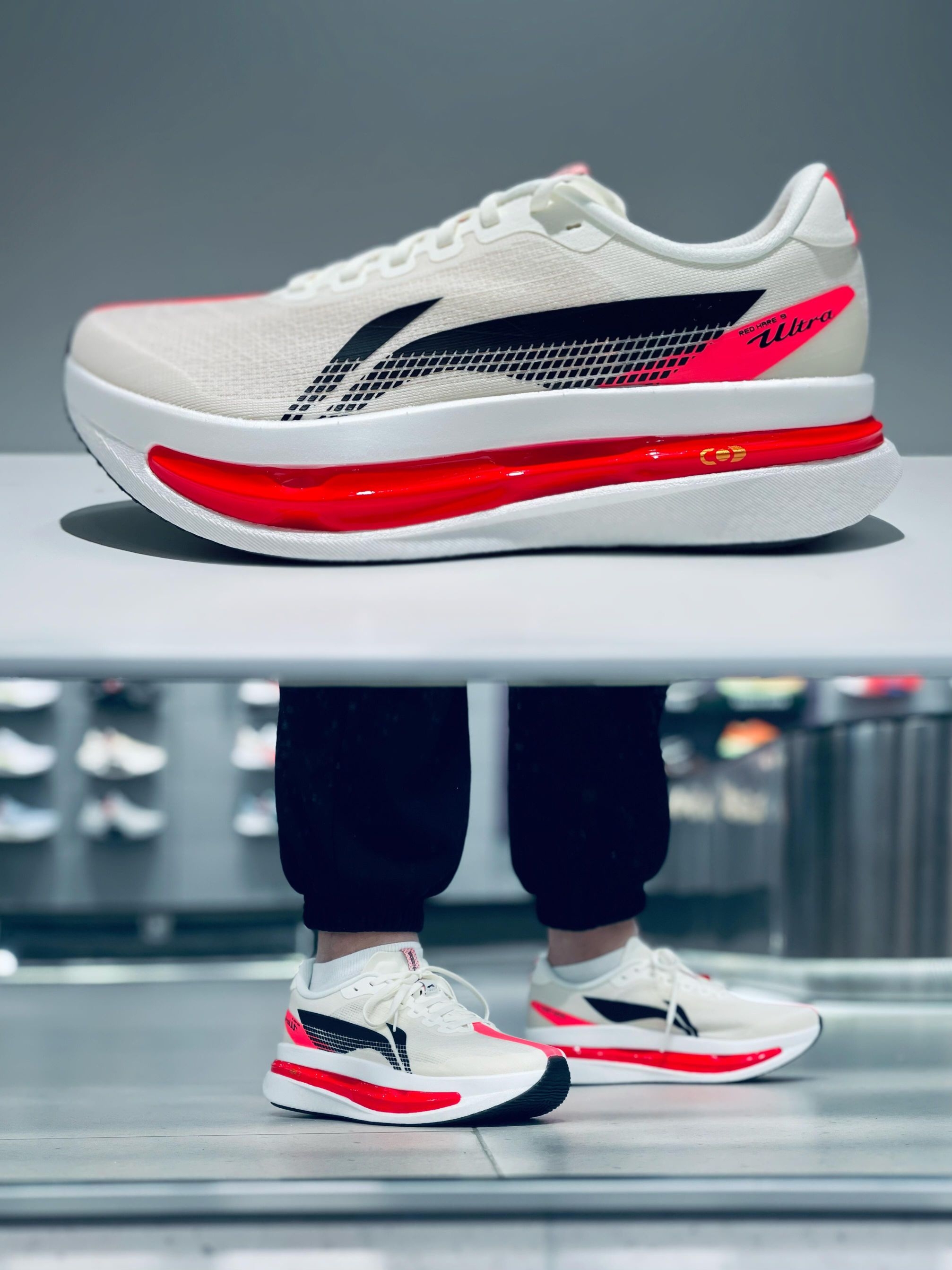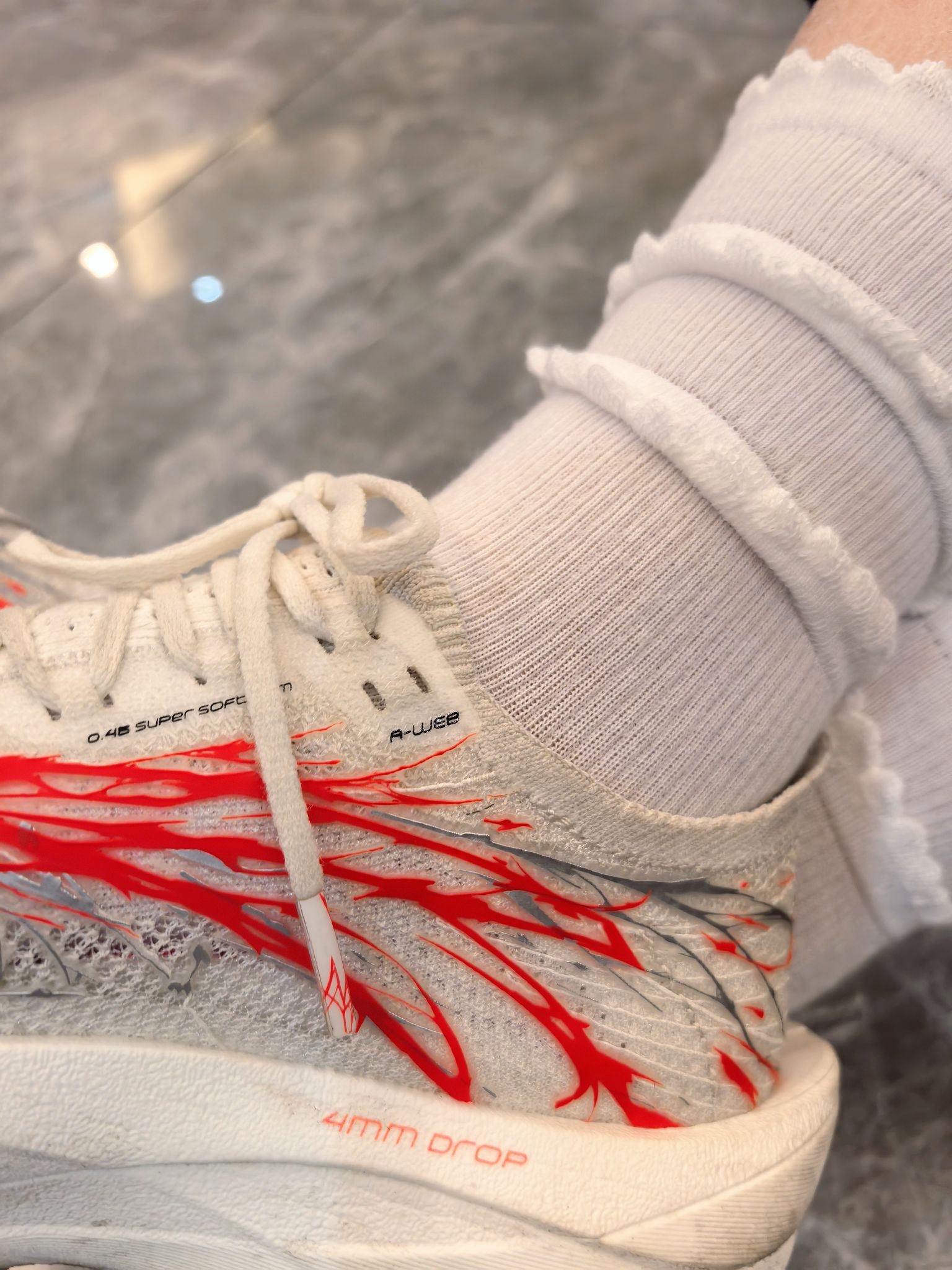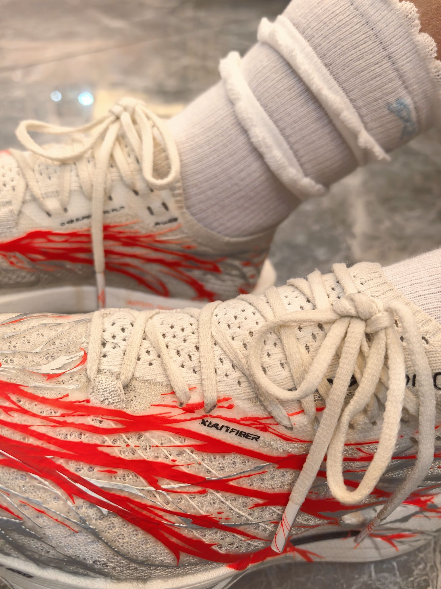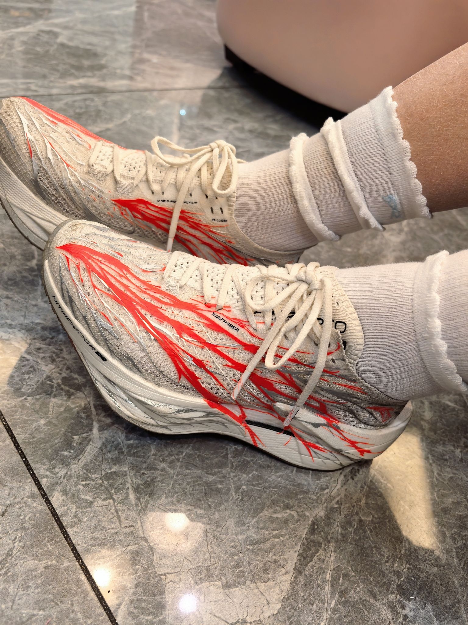 热烈的心跳红把纯色的白袜映衬得很有甜美氛围感! 感觉穿着顶碳不是去体育场运动,而是去参加聚派对! 安踏c20206pro助推力很好,跑步非常轻松,跑渣穿了之后,800米都满分了