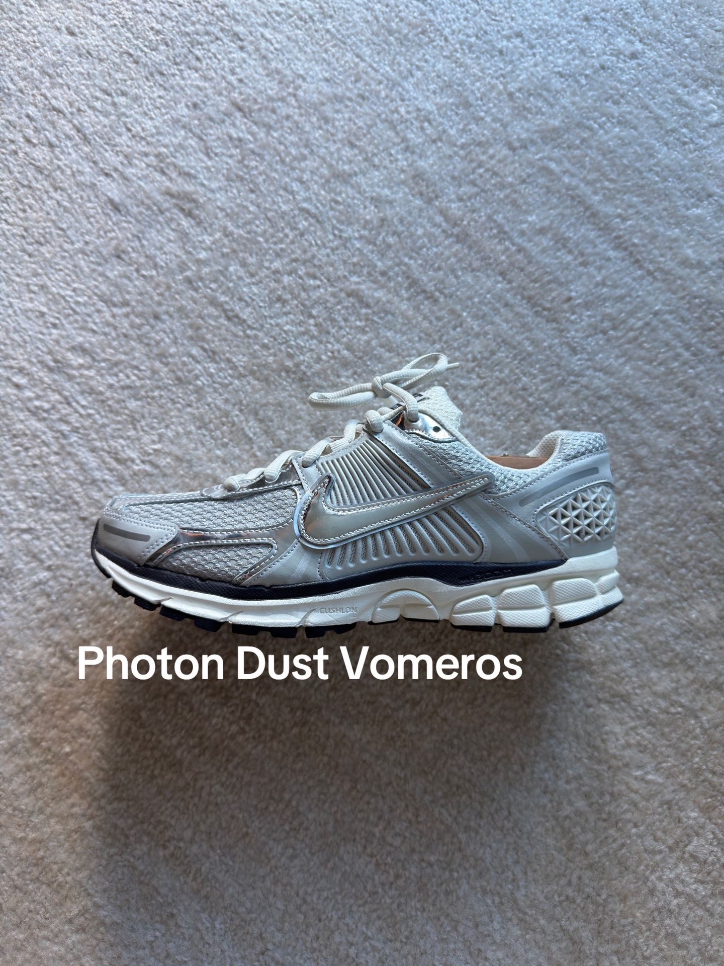 Solomon x MM6联名鞋:鞋身以白偏黑为主,撞色线条流利,是户外鞋型但上脚轻便,缓震效果好。搭配阔腿工装裤与白T简约干净,配大衣也很合适。 Nike Photon Dust Vomeros:金属质感的钩子复古感拉满,鞋面网面透气,有强烈的分层设计。搭配连帽卫衣和运动裤,美式复古风十足,春秋季节穿着适配度高,夏天搭配短裤也很合适。