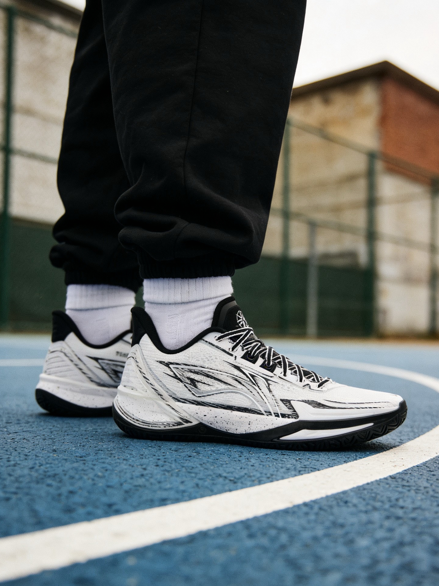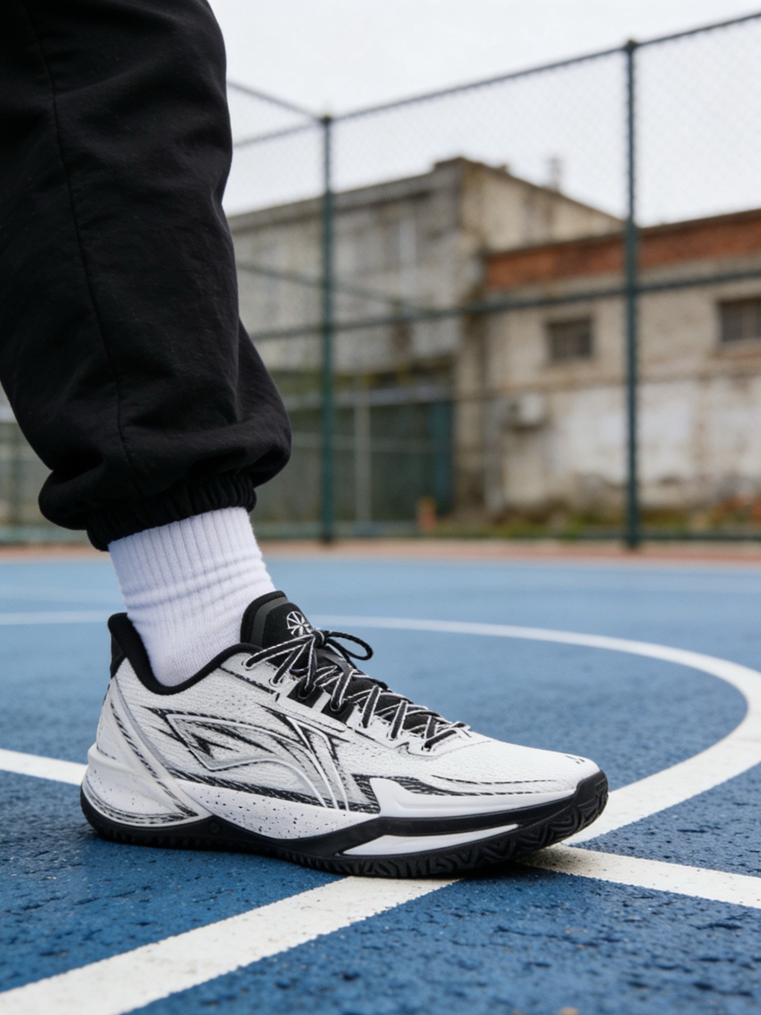 低帮设计让脚踝的灵活性直接拉满,动态鞋带口系紧后,包裹感是那种贴脚但不压脚的舒服度,鞋楦微调后前掌空间很友好,宽脚的我穿正常码也不挤;中底重心比老款更低,贴地感超棒,场地反馈特别清晰,做各种突破动作都很跟脚。