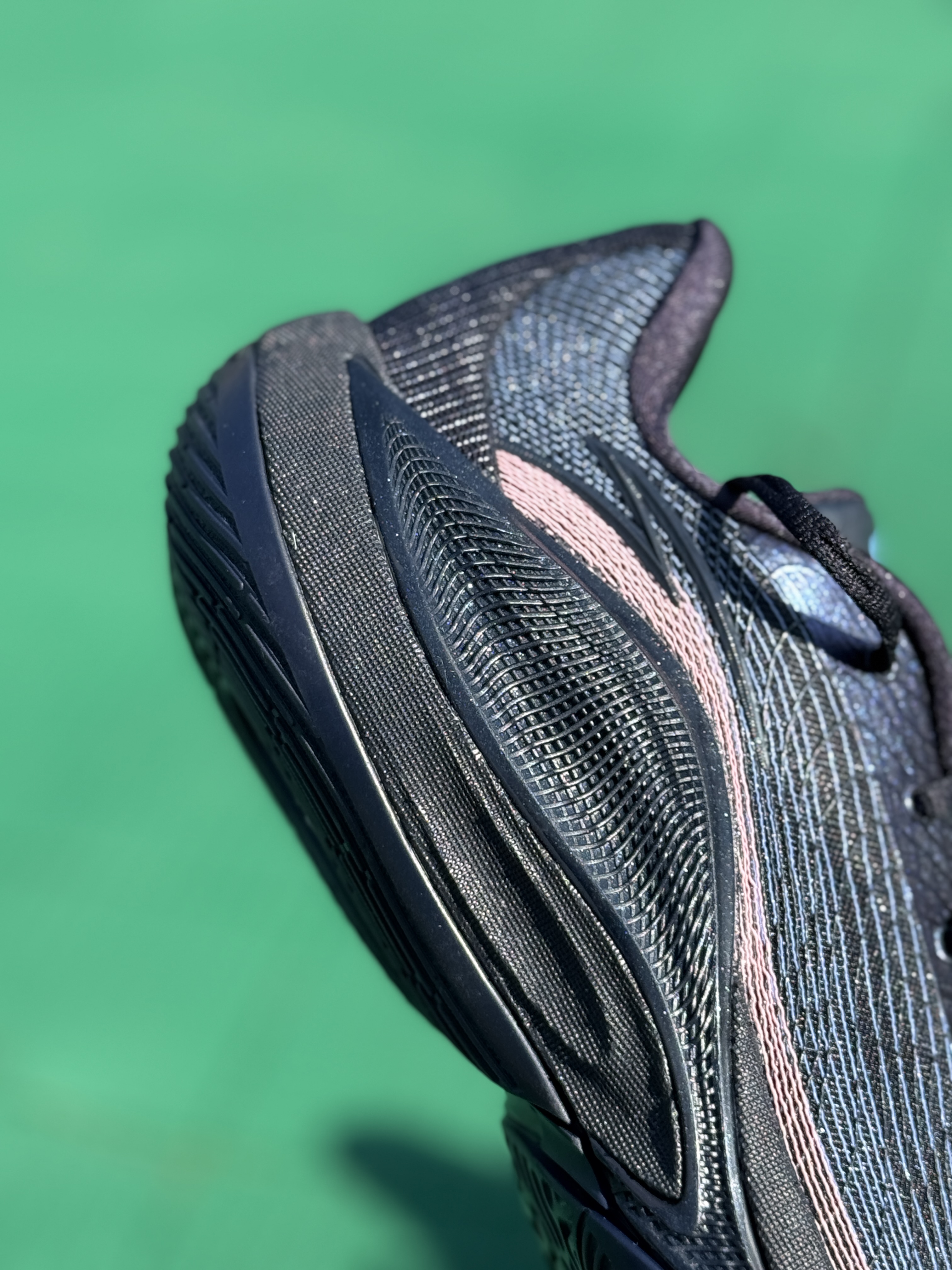 先谈感受后聊鞋 这双安踏三分雨3low上脚的第一感觉就是贴合,非常的贴合。我属于宽脚高脚背,但是我穿脱很轻松,而且贴合度很高。 中底搭载了全掌氮科技,缓震极限很高,我240➕的体重起跳落地也没觉得震脚,特别是前掌非常的软弹。采用异形TPU从外侧一直延生至后跟,在加强强度的同时也增加了鞋子的辨识度。 鞋面采用“弦”编织科技,透气性很好,同时通过热熔压胶加固提升了支...
