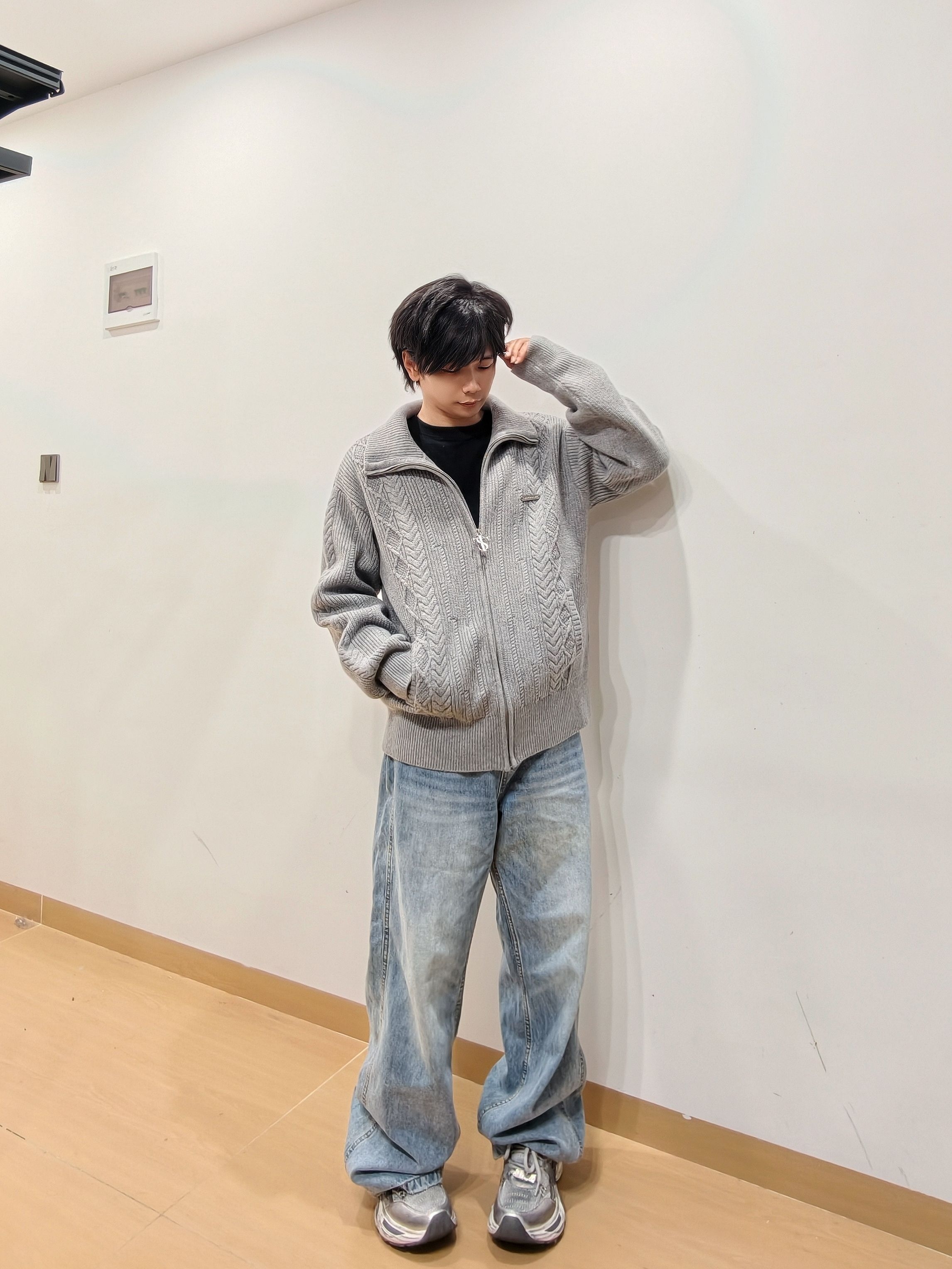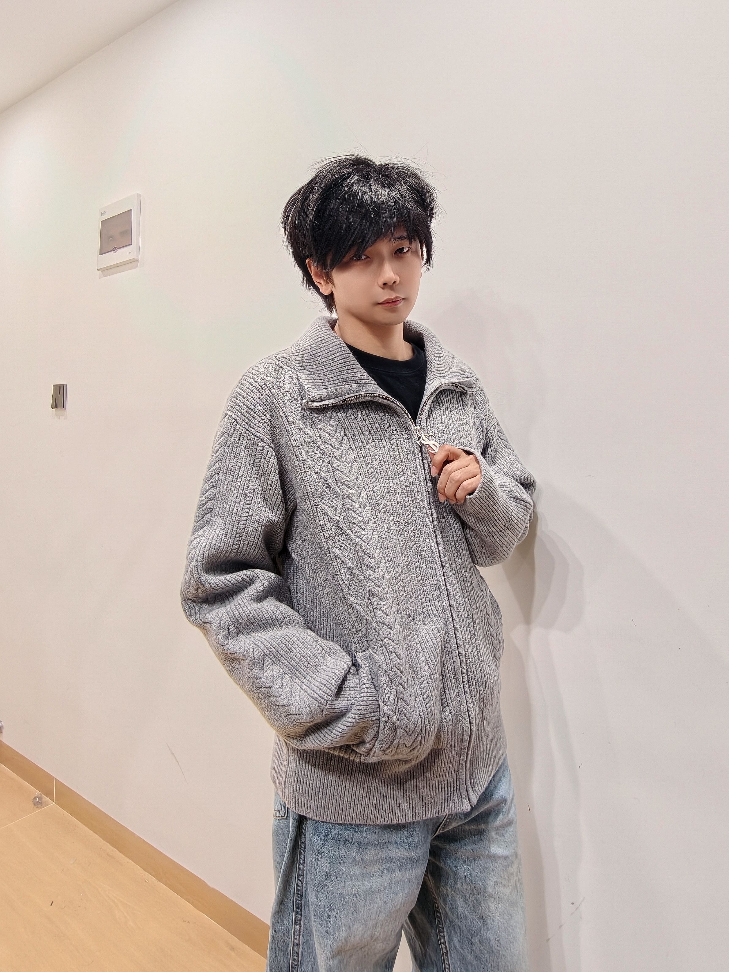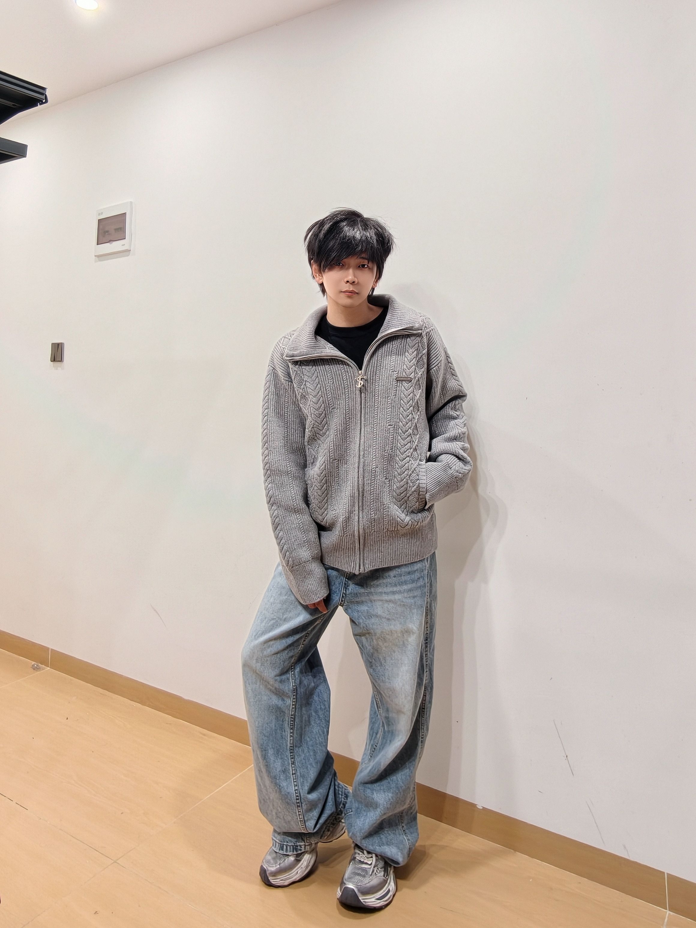 灰色毛衣复古感拉满 拉链开衫的设计有层次我很喜欢 配个牛仔裤老爹鞋帅帅的