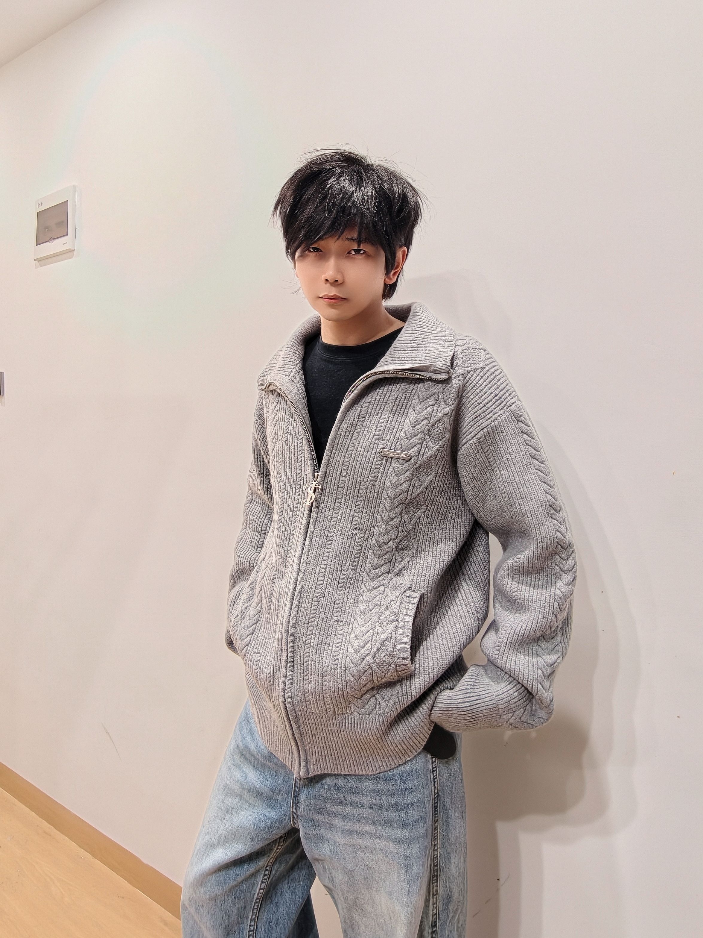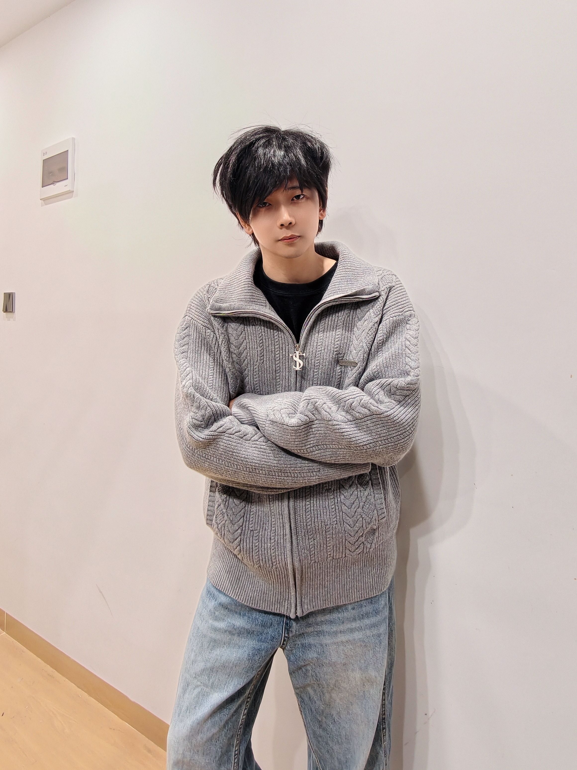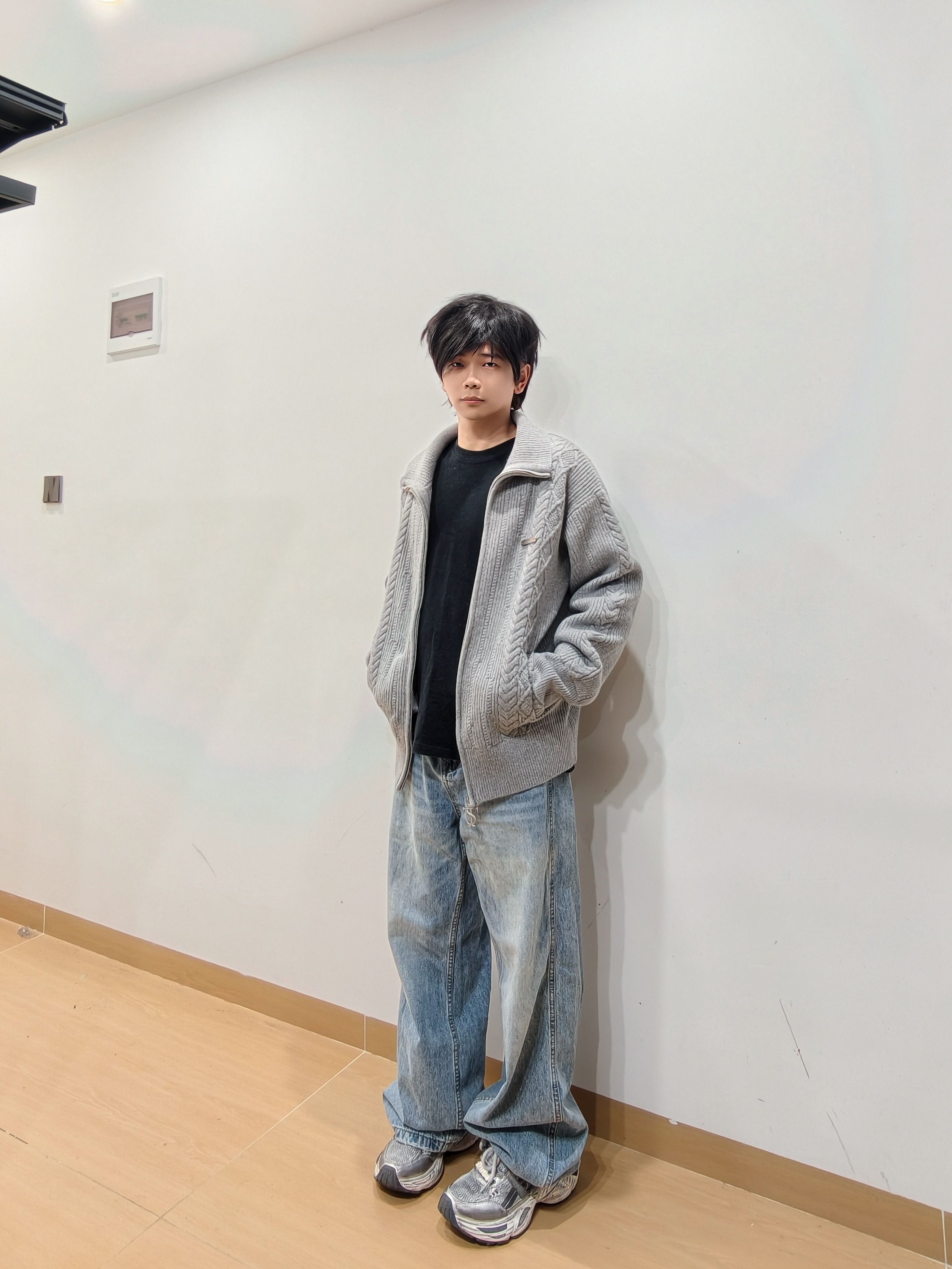灰色毛衣复古感拉满 拉链开衫的设计有层次我很喜欢 配个牛仔裤老爹鞋帅帅的