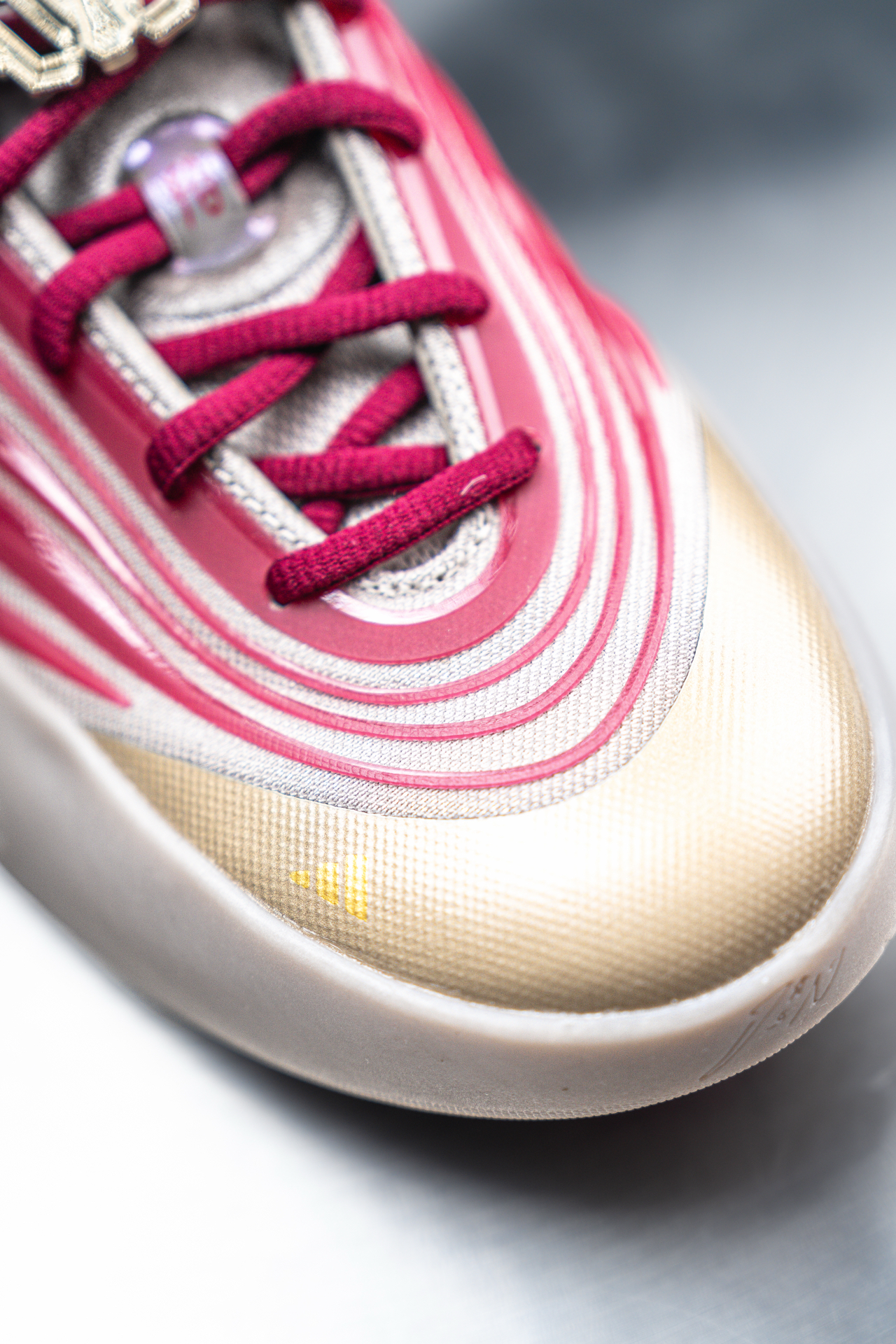 adidas这波马年限定确实挺懂玩家心思的,利拉德10代这双粉金渐变,算是Dame 10系列里让人眼前一亮的配色了。 作为后卫鞋,它的薄底设计是实打实的优势:前掌贴地感很强,启动不拖沓,适合我这种喜欢突破变向的风格;后掌缓震属于适中水平,日常打球够用,但体重偏大的朋友可能会觉得偏硬。 细节上确实能看出限定的用心: • 绒面鞋帮+红色内衬,触感和视觉都比普通版更有质感 • TPU渐变线条...