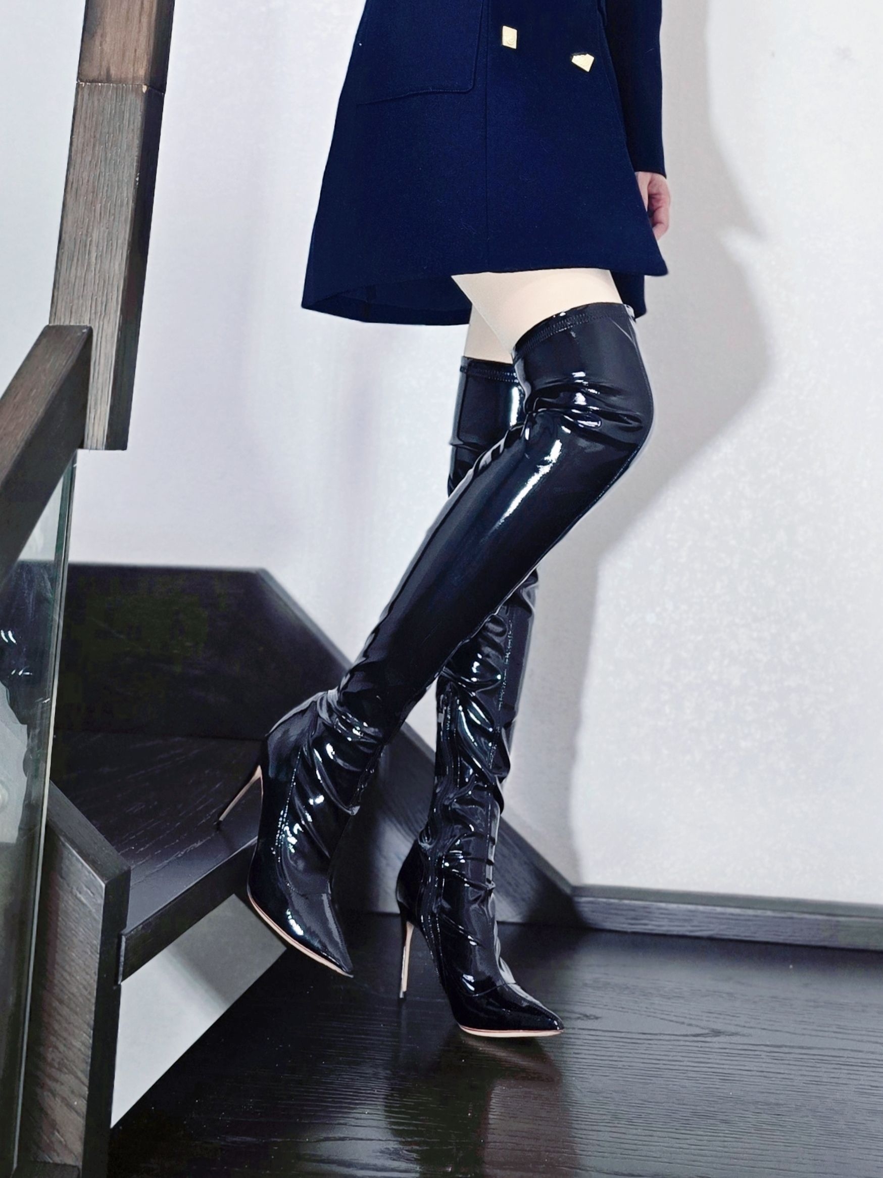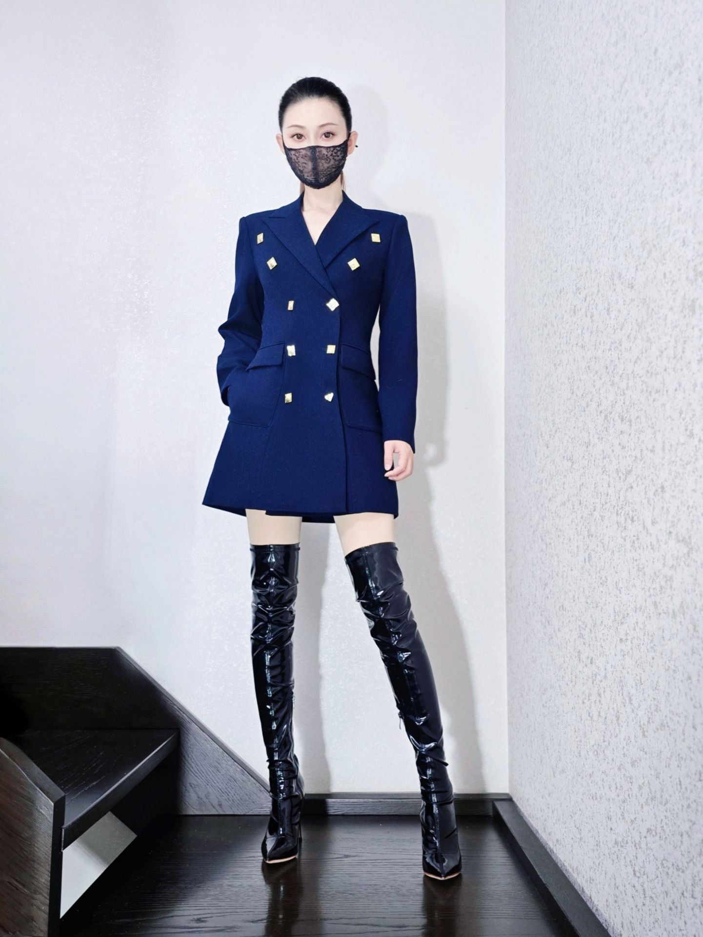 今天穿搭用短款西装裙配漆皮过膝长靴,妥妥滴“物理增高”公式啊!这么一搭就是气场全开,T台180大长腿既视感一下就出来啦!双排金扣设计提升精致度,高腰线剪裁优化比例,过膝靴紧裹腿部,视觉无限拉长,整体干练摩登,显高显瘦一步到位啦!不过要注意的是,这种长靴不太适合小腿粗的姐妹,会放大缺点哦!腿粗的最好选择大靴筒的!